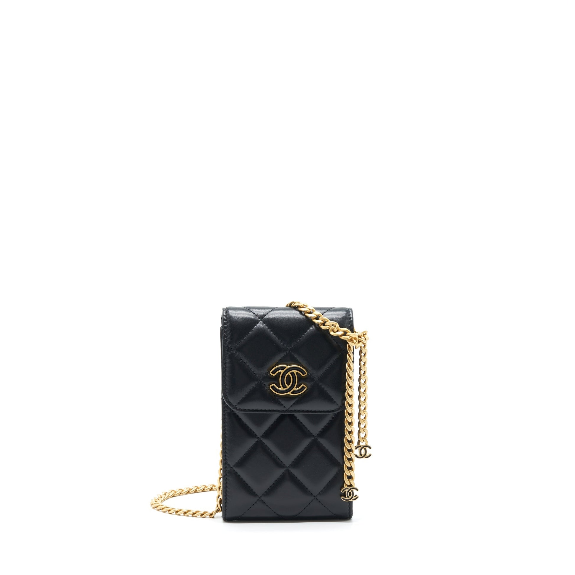 Chanel 22P Vertical Mini Flap Bag Lambskin Black With Enamel Buckle Brushed GHW