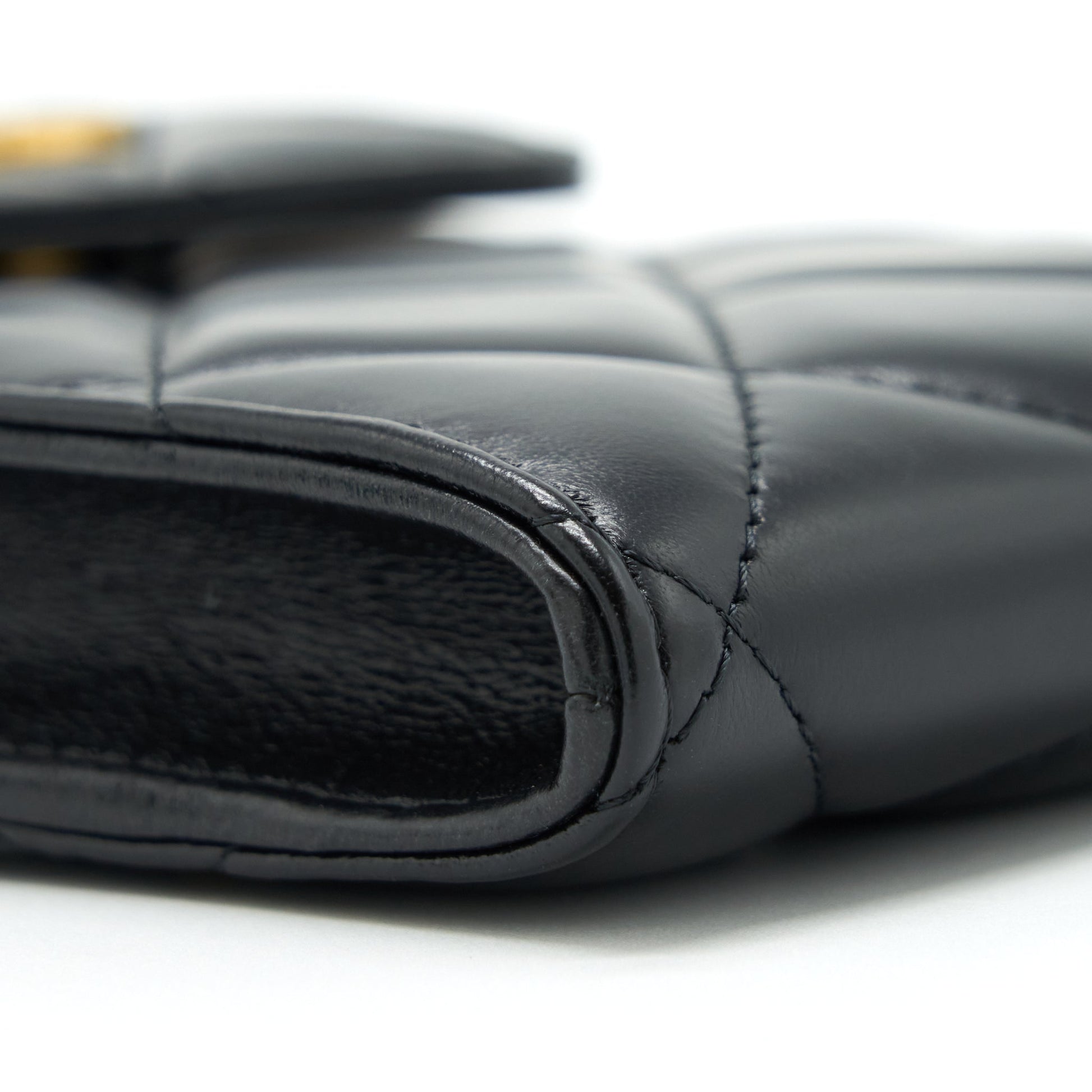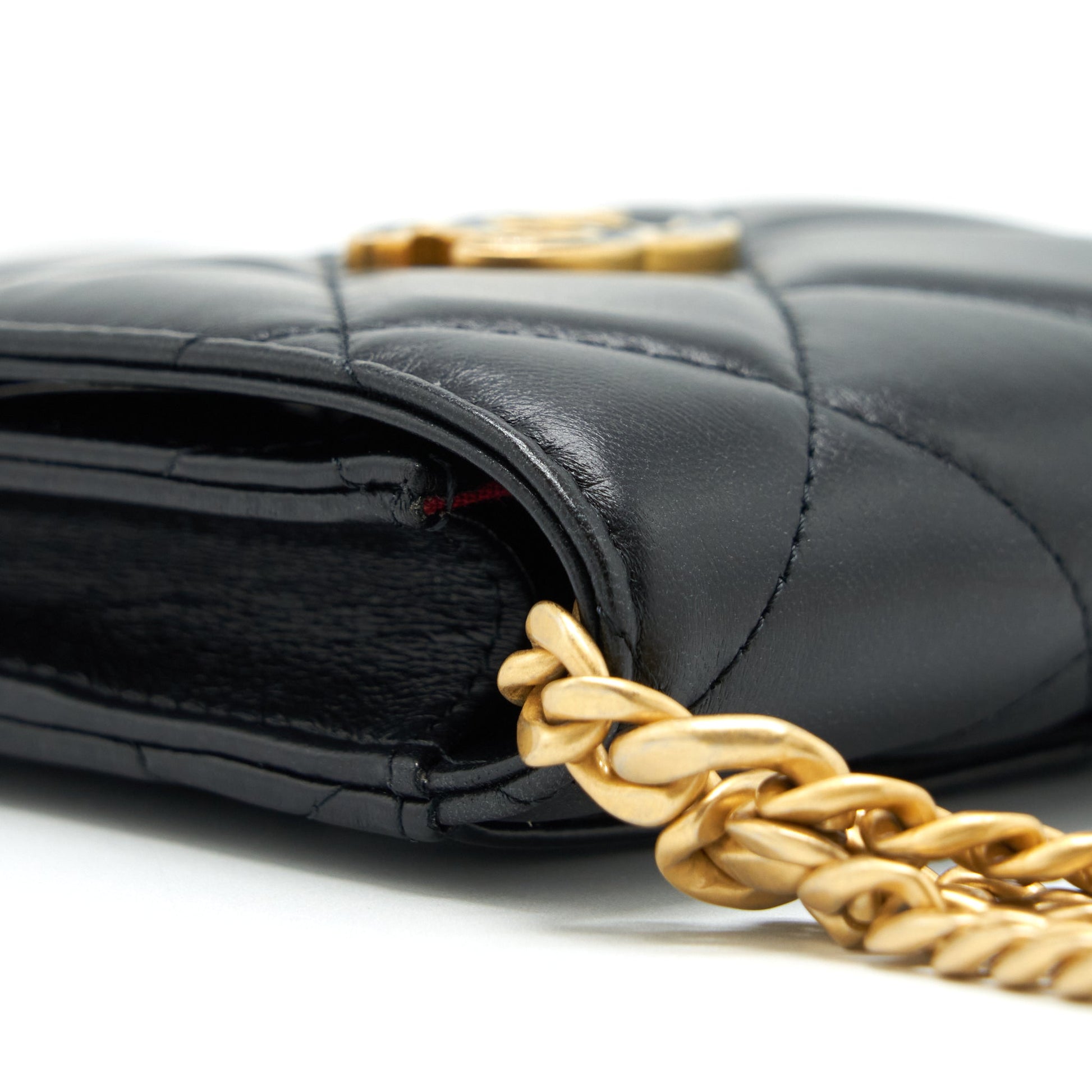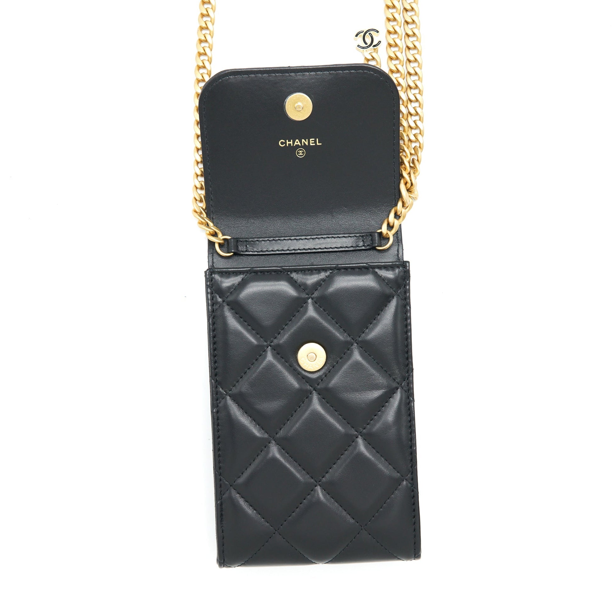 Chanel 22P Vertical Mini Flap Phone Case Lambskin Black With Enamel And Gold Hardware