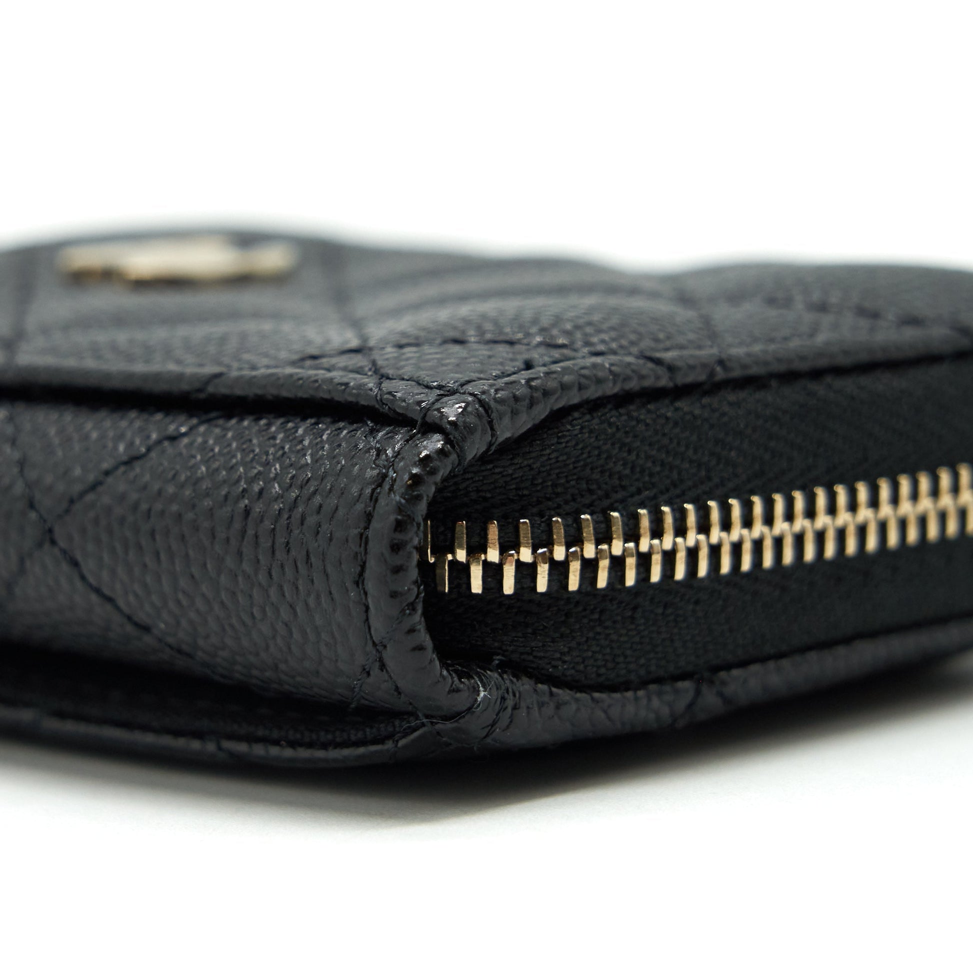 Chanel 22P Zip Card Holder Caviar Black LGHW