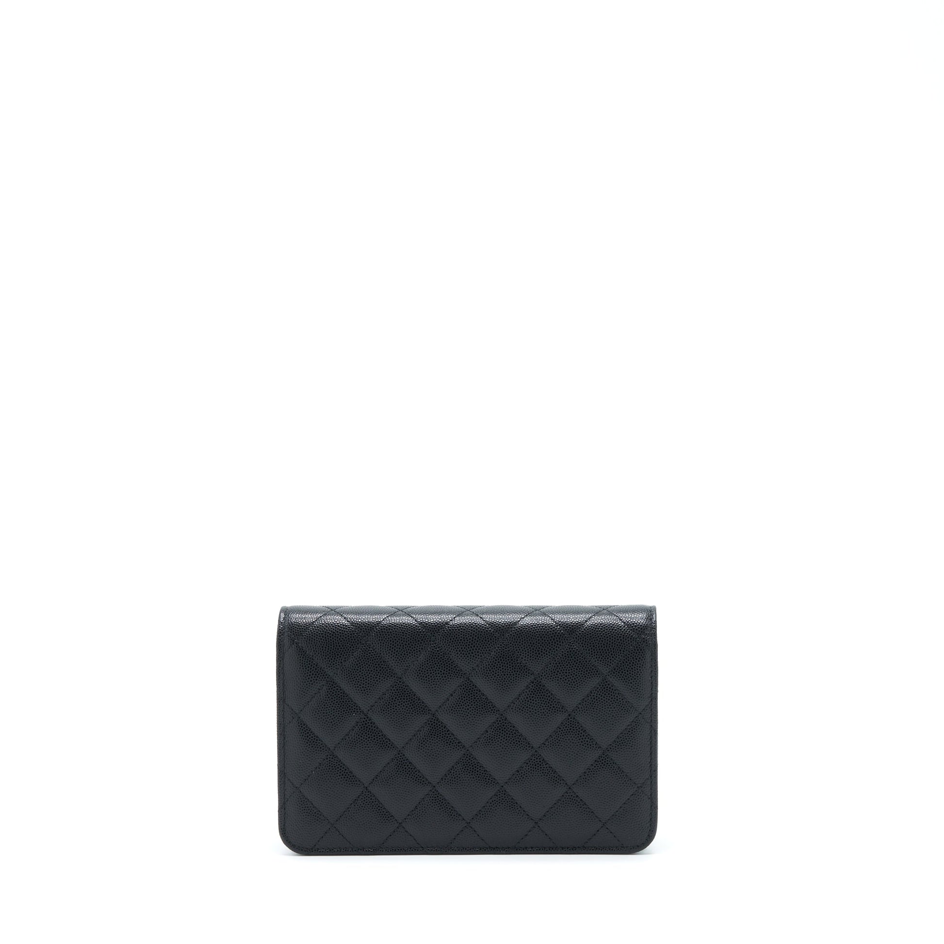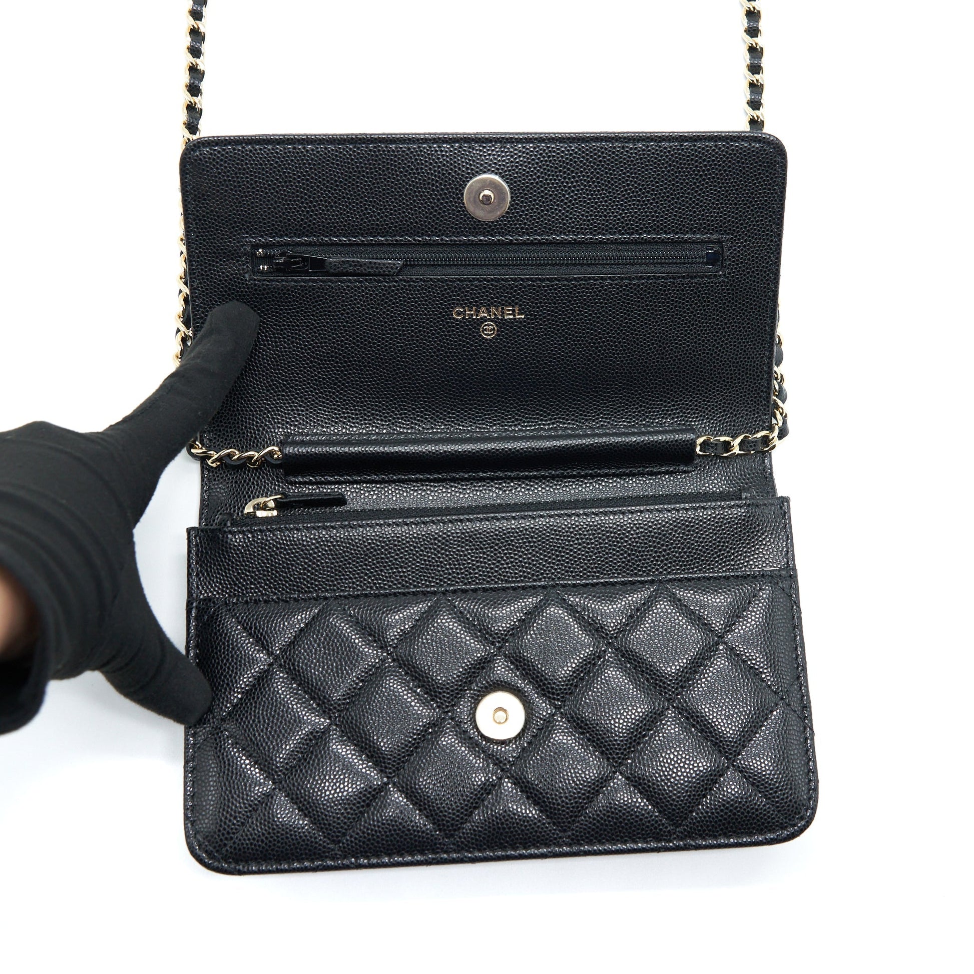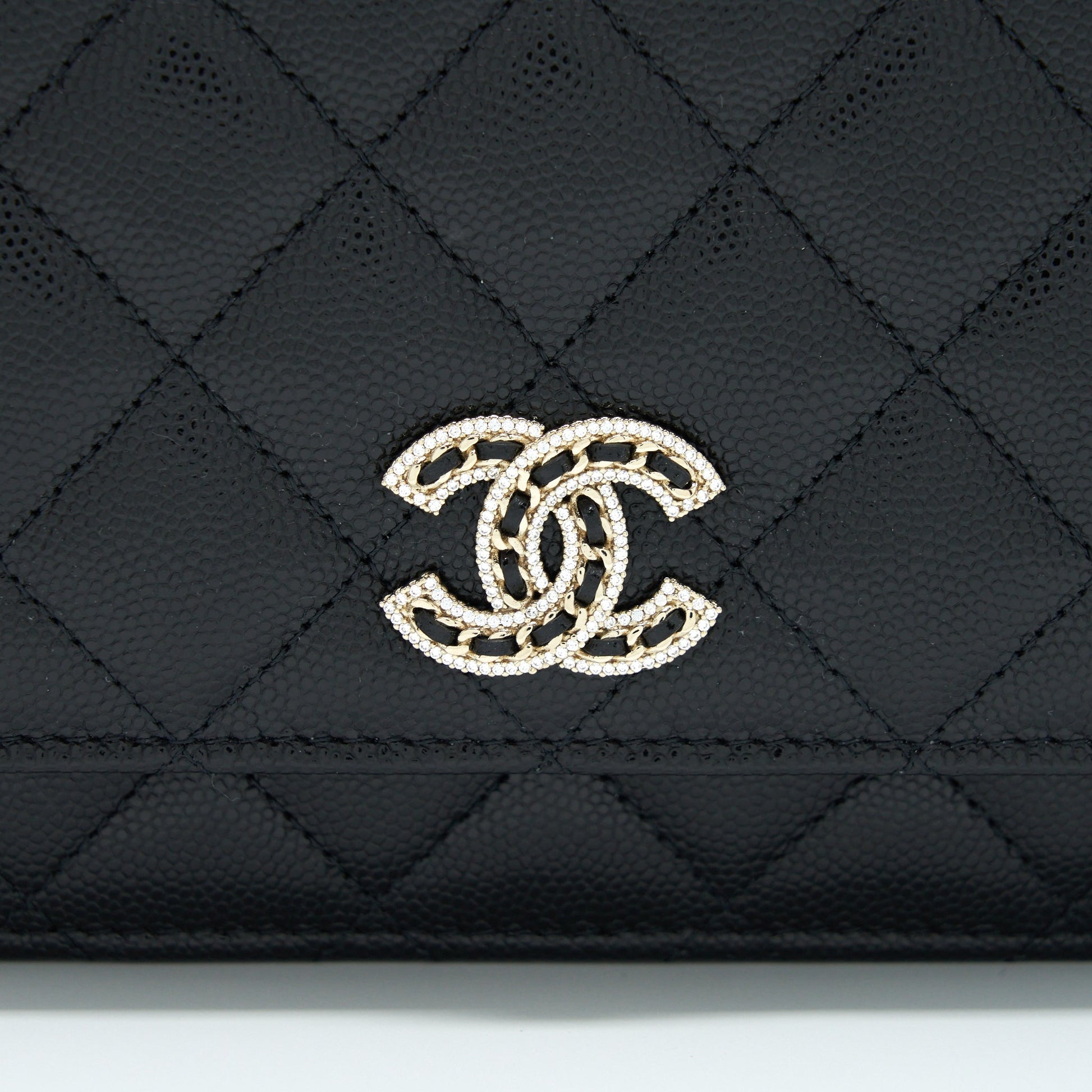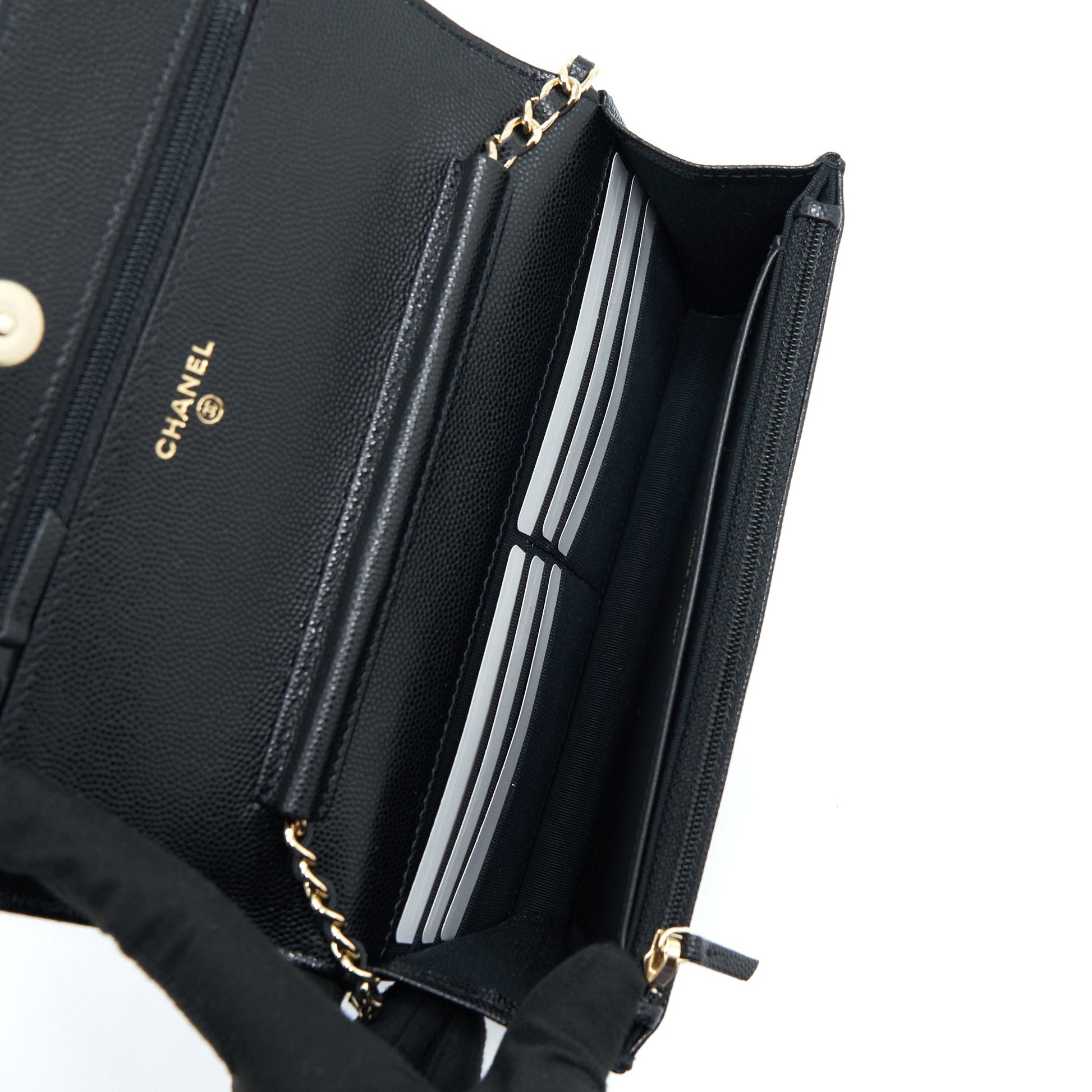 Chanel 22S Detailed CC Logo Wallet On Chain Caviar Black LGHW (Microchip)