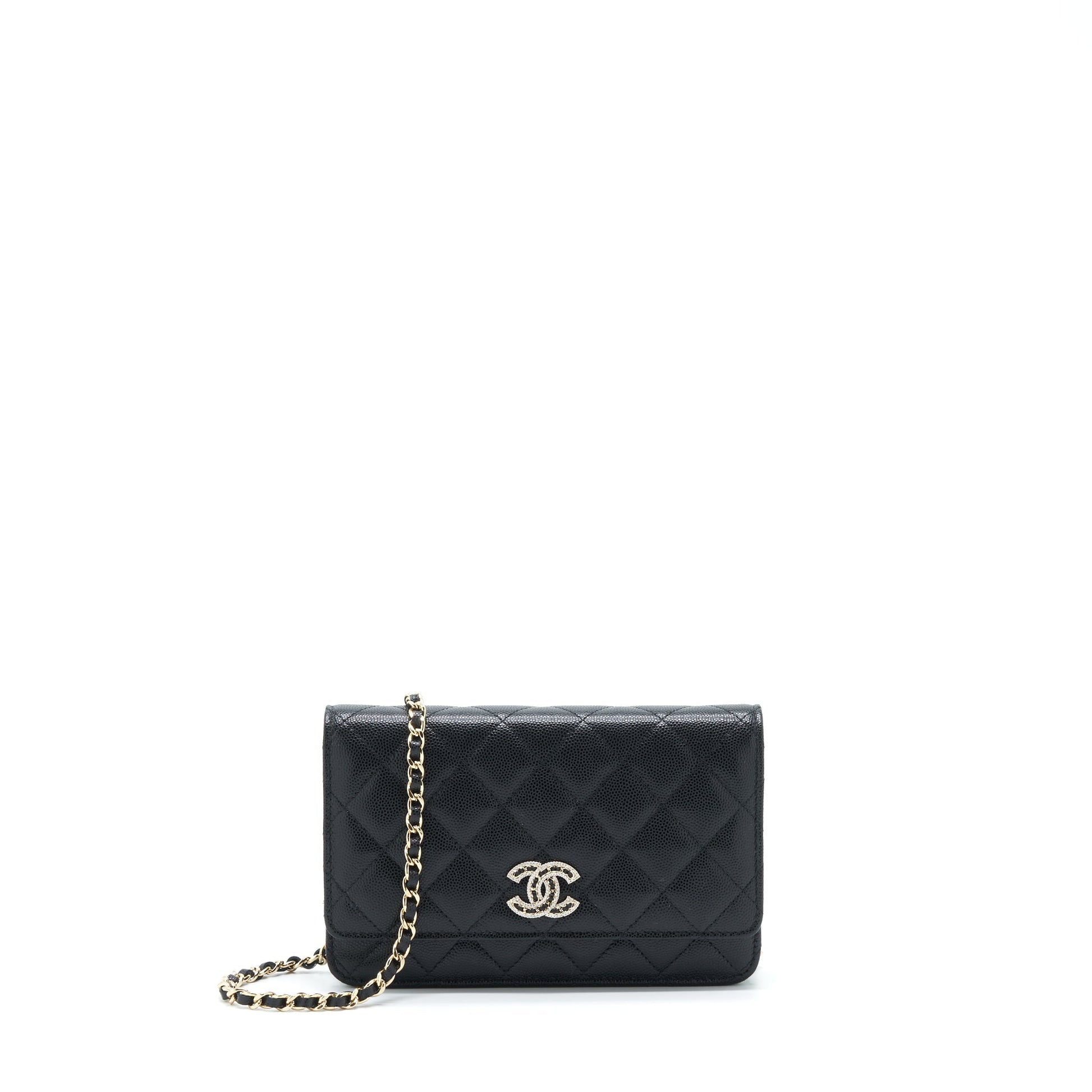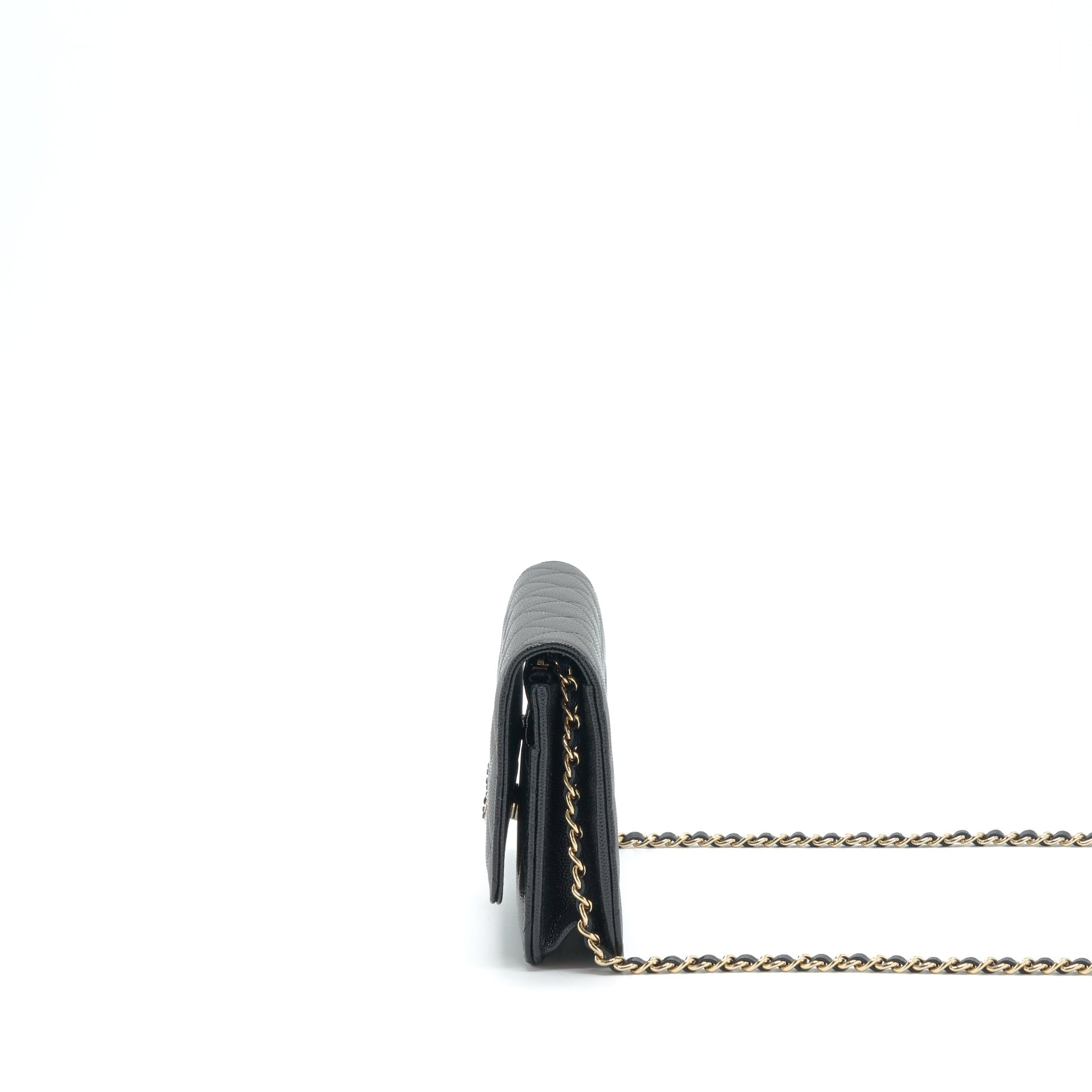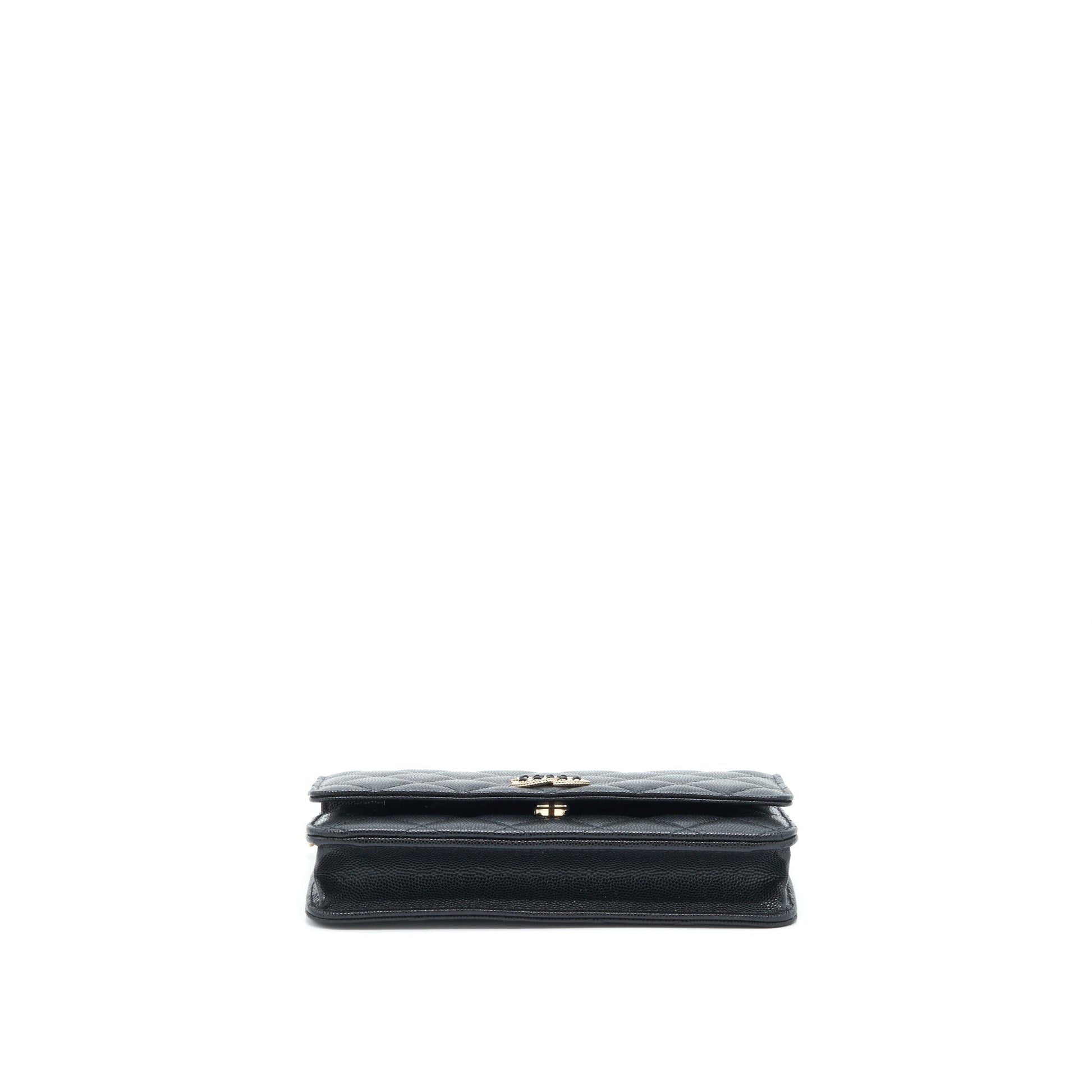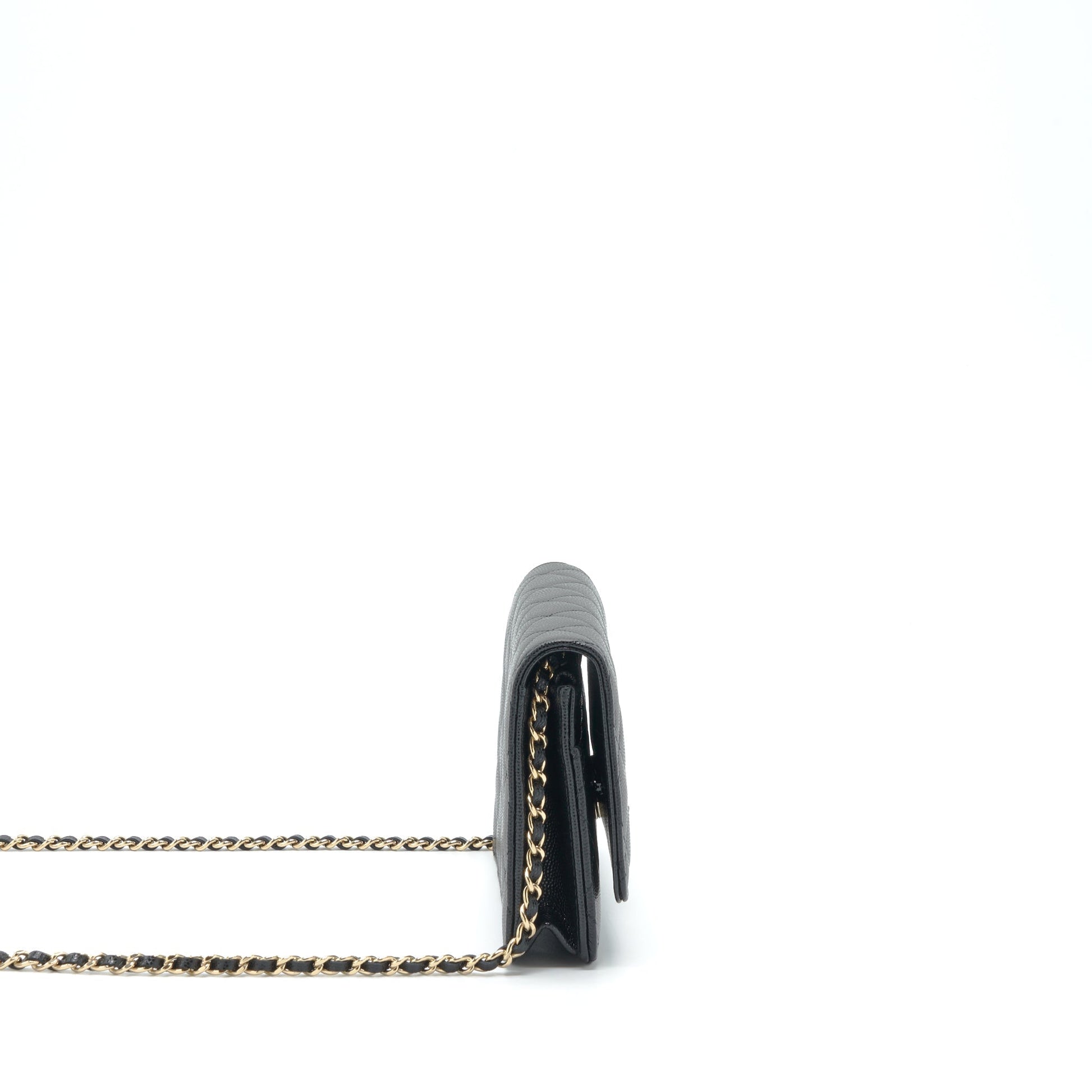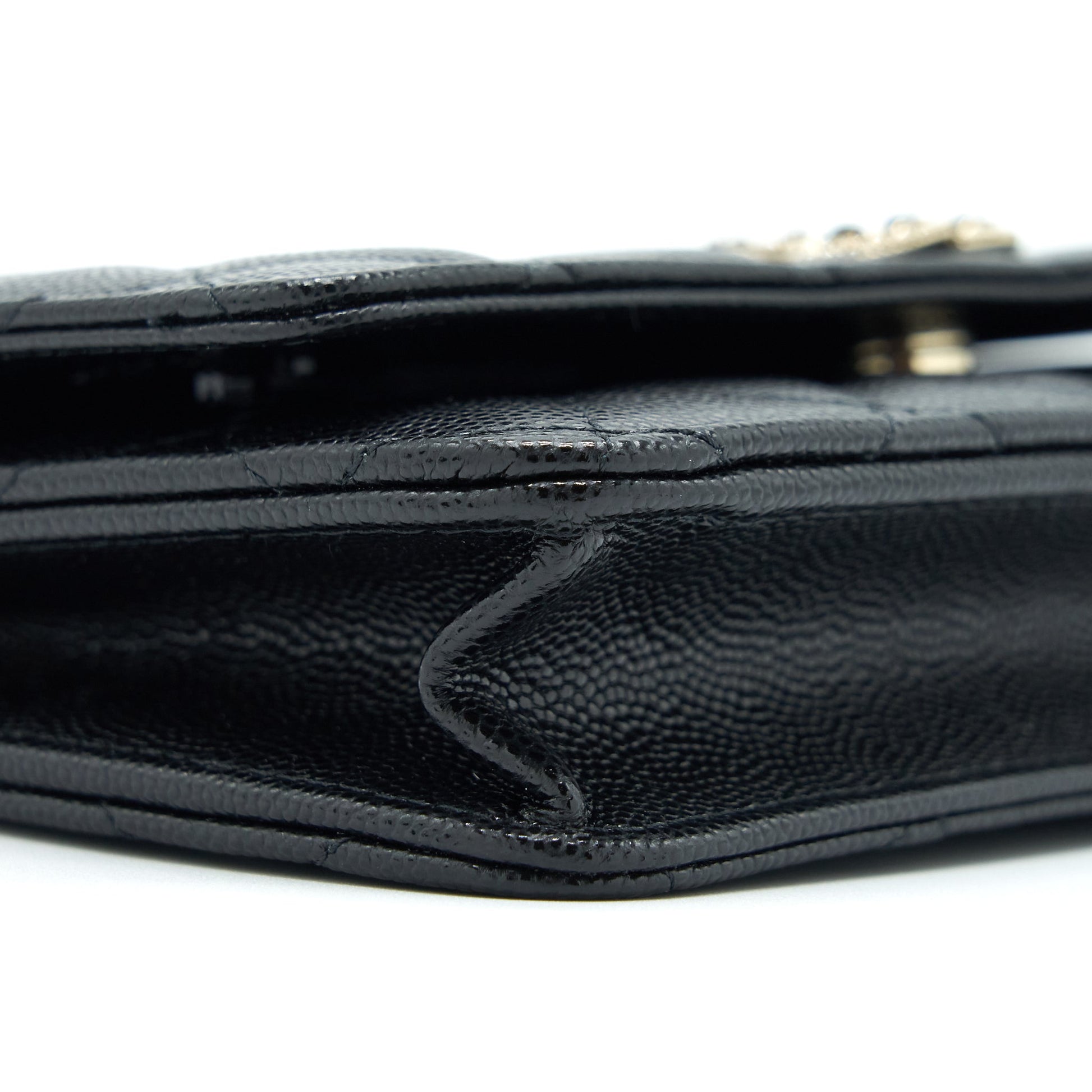 Chanel 22S Detailed CC Logo Wallet On Chain Caviar Black LGHW (Microchip)
