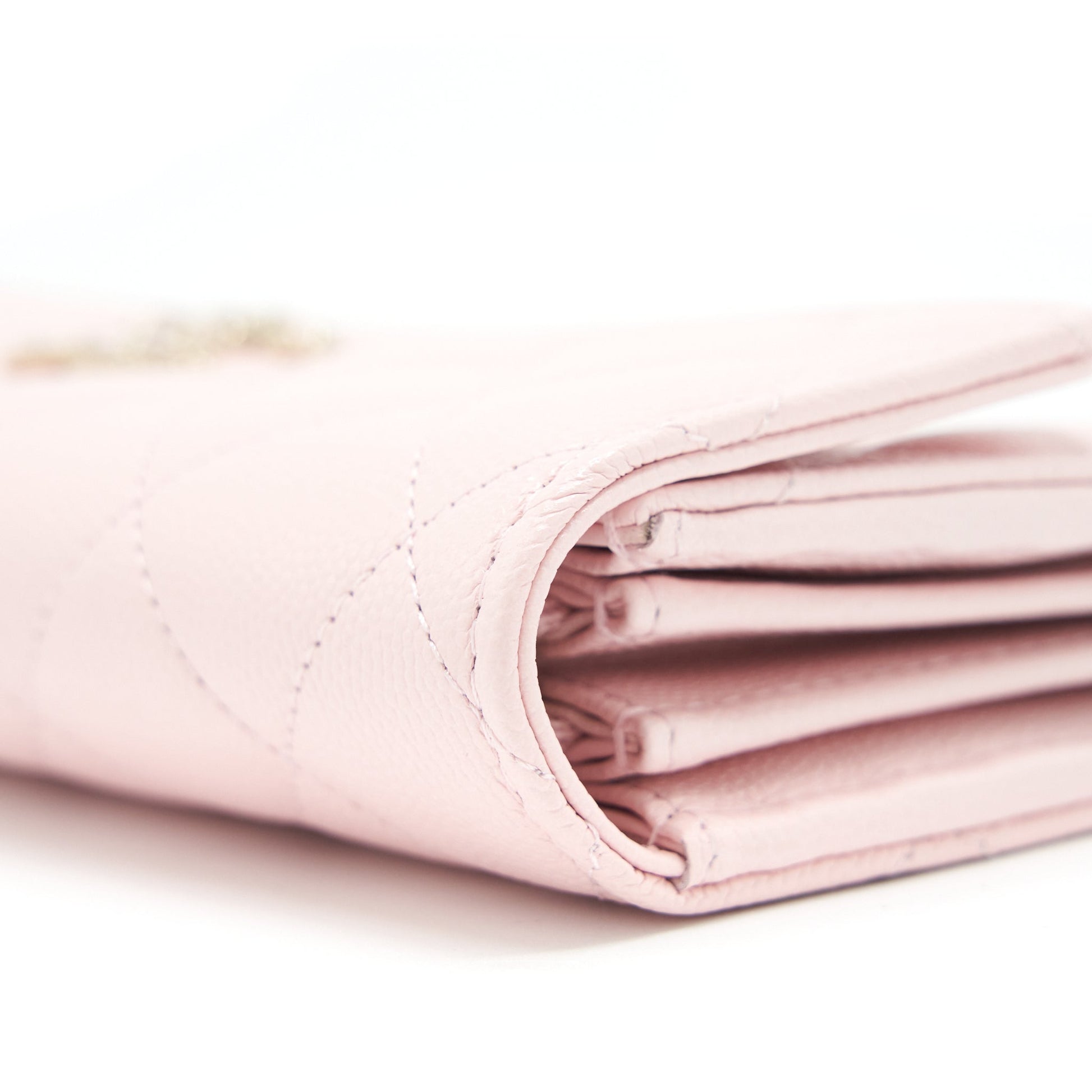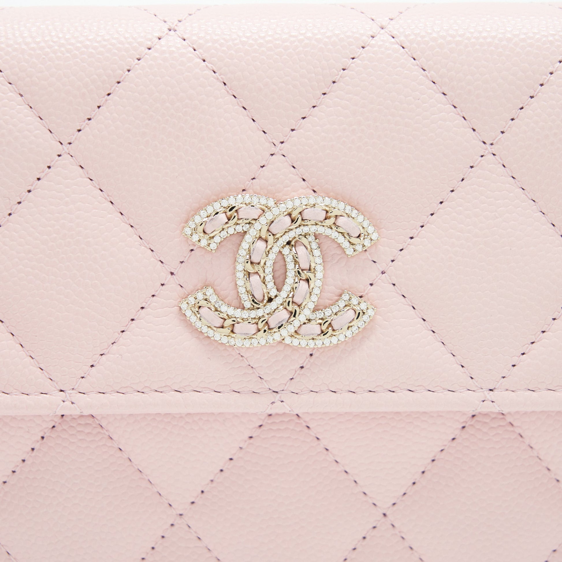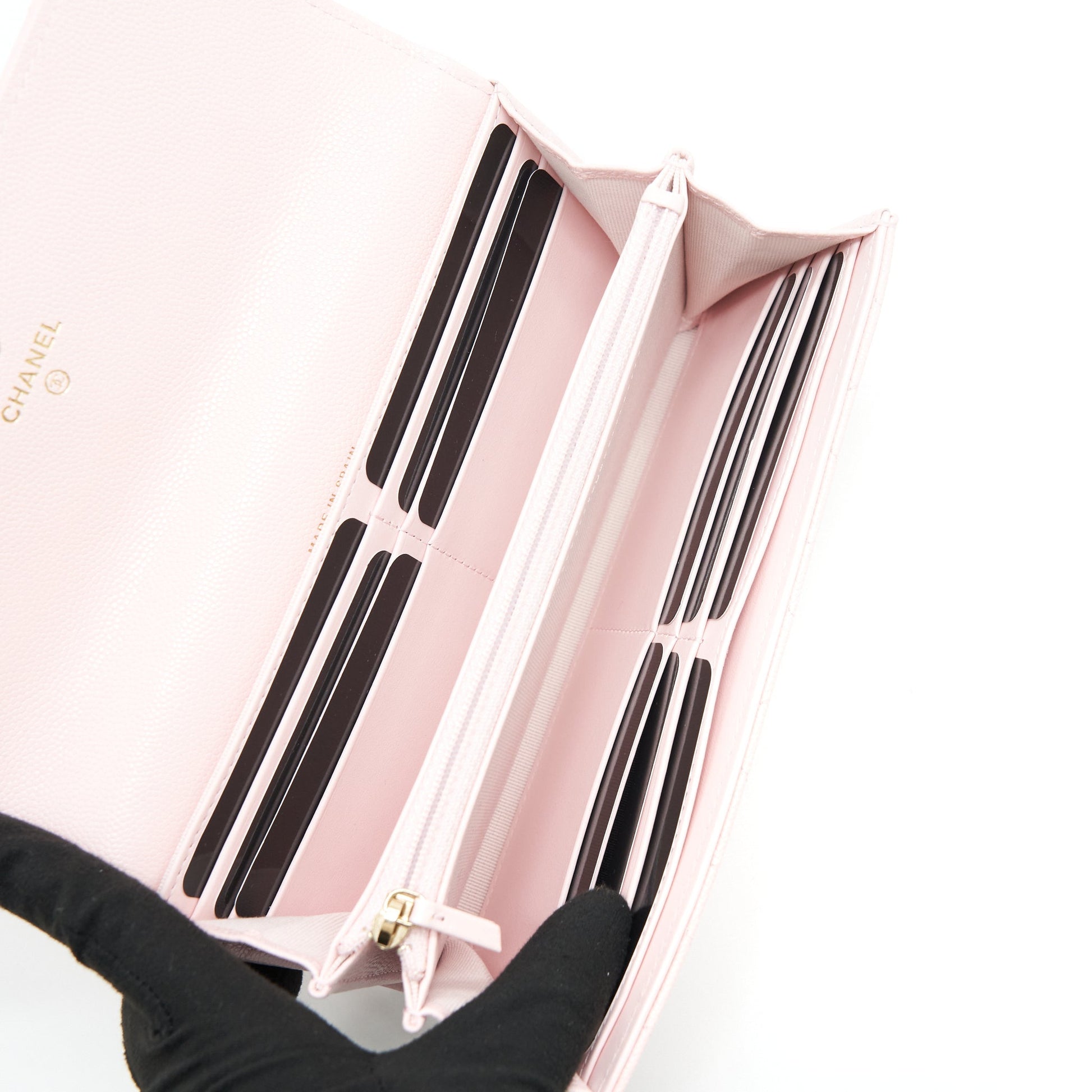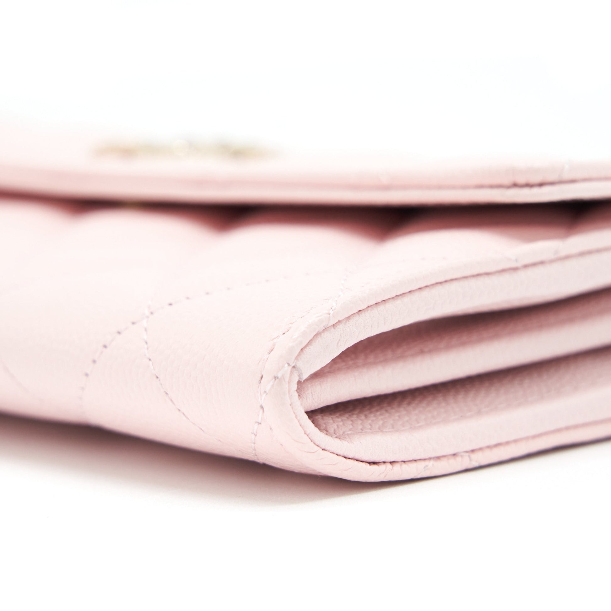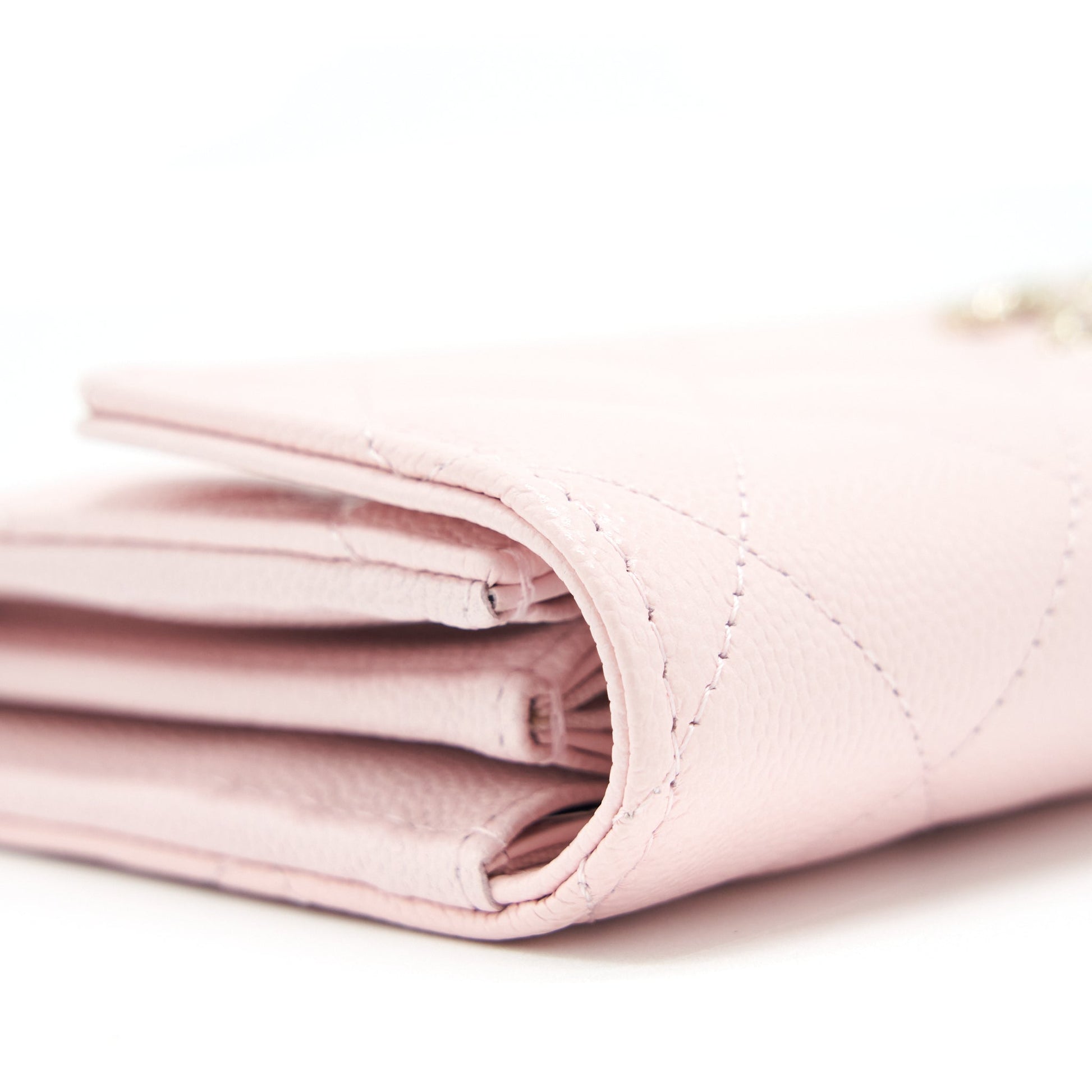 Chanel 22S detailed logo flap long wallet caviar light pink with LGHW