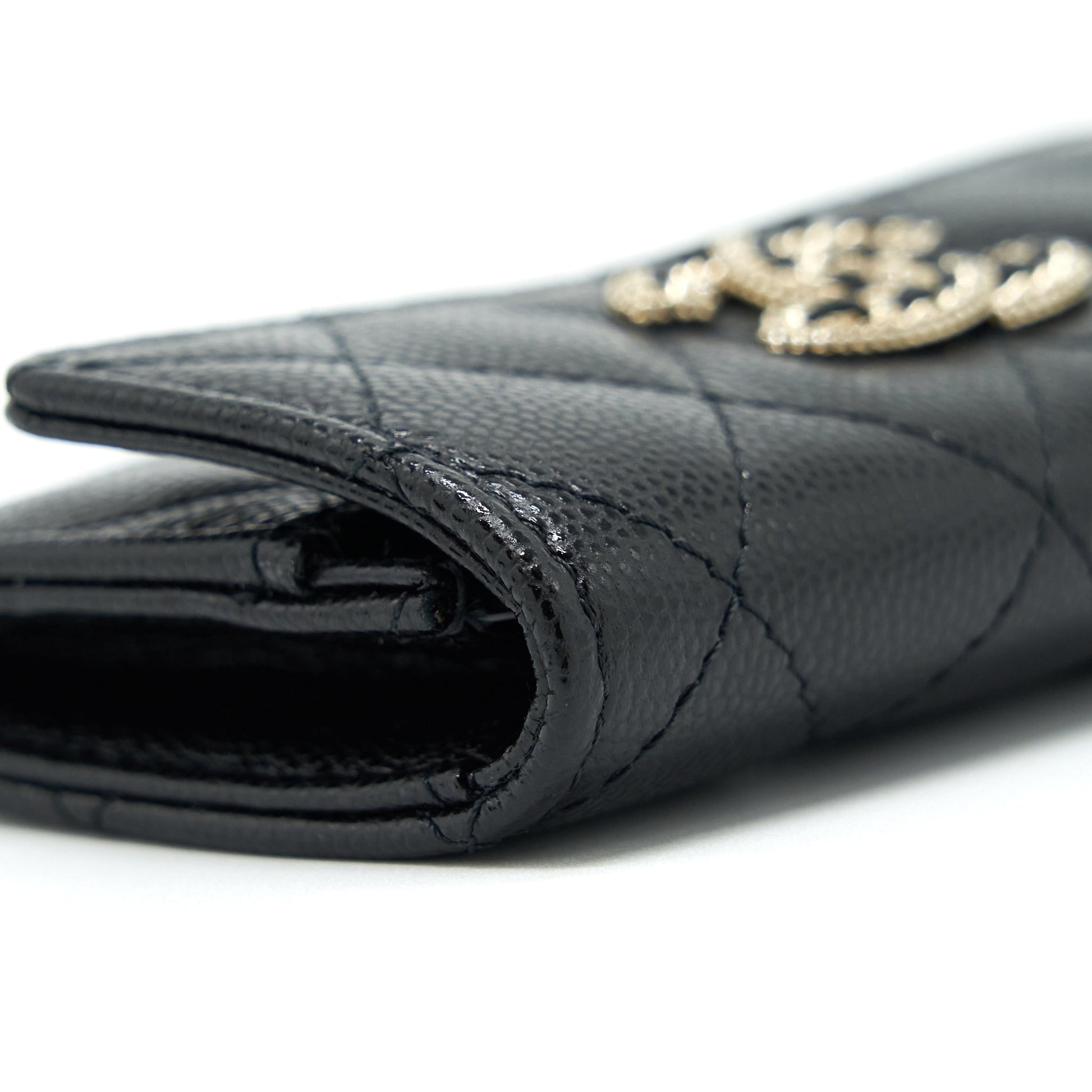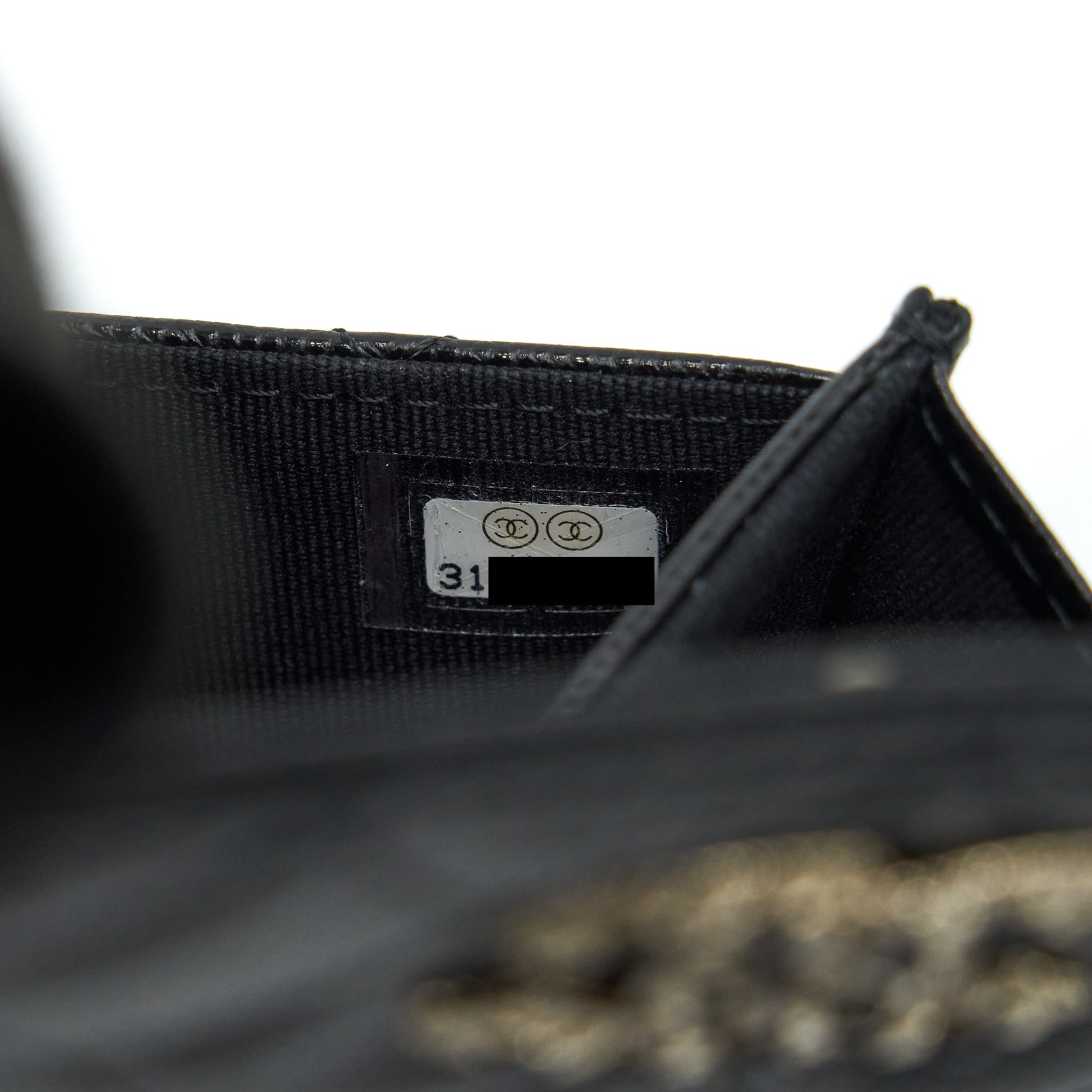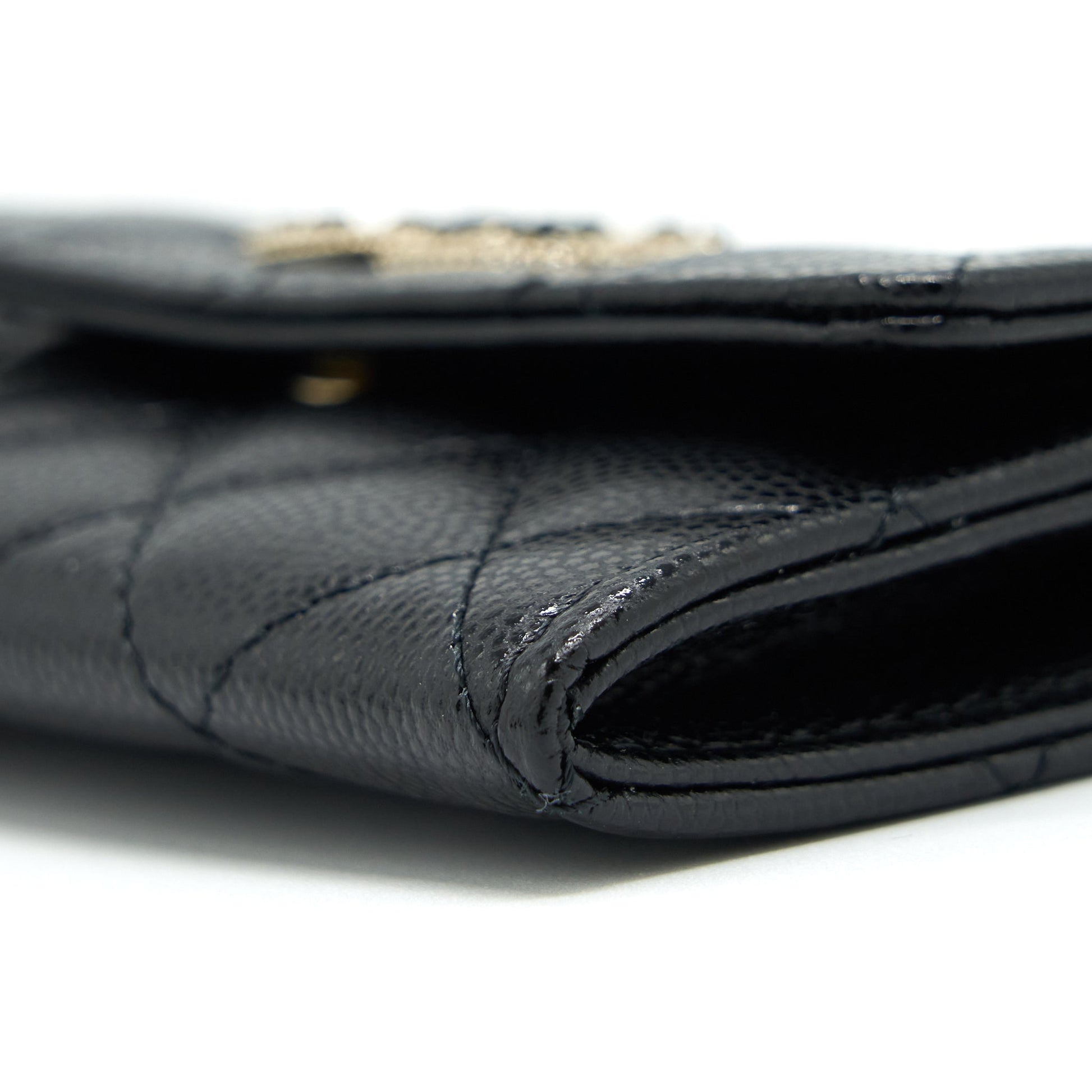 Chanel 22S Detailed Logo Mini Flap Card Holder Caviar Black LGHW