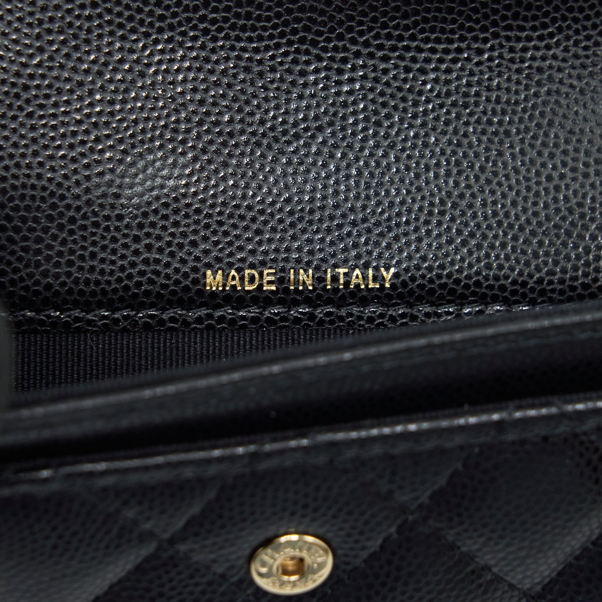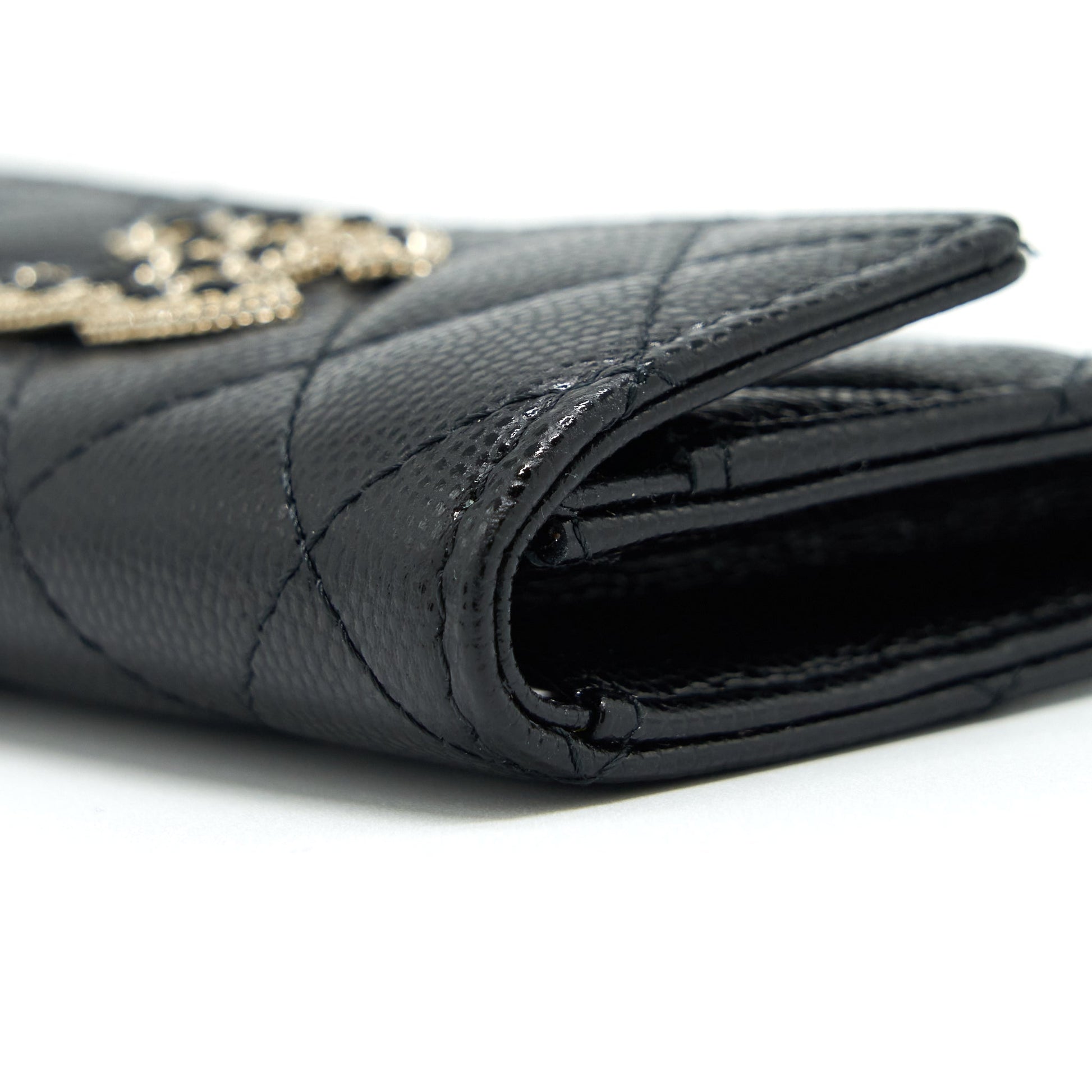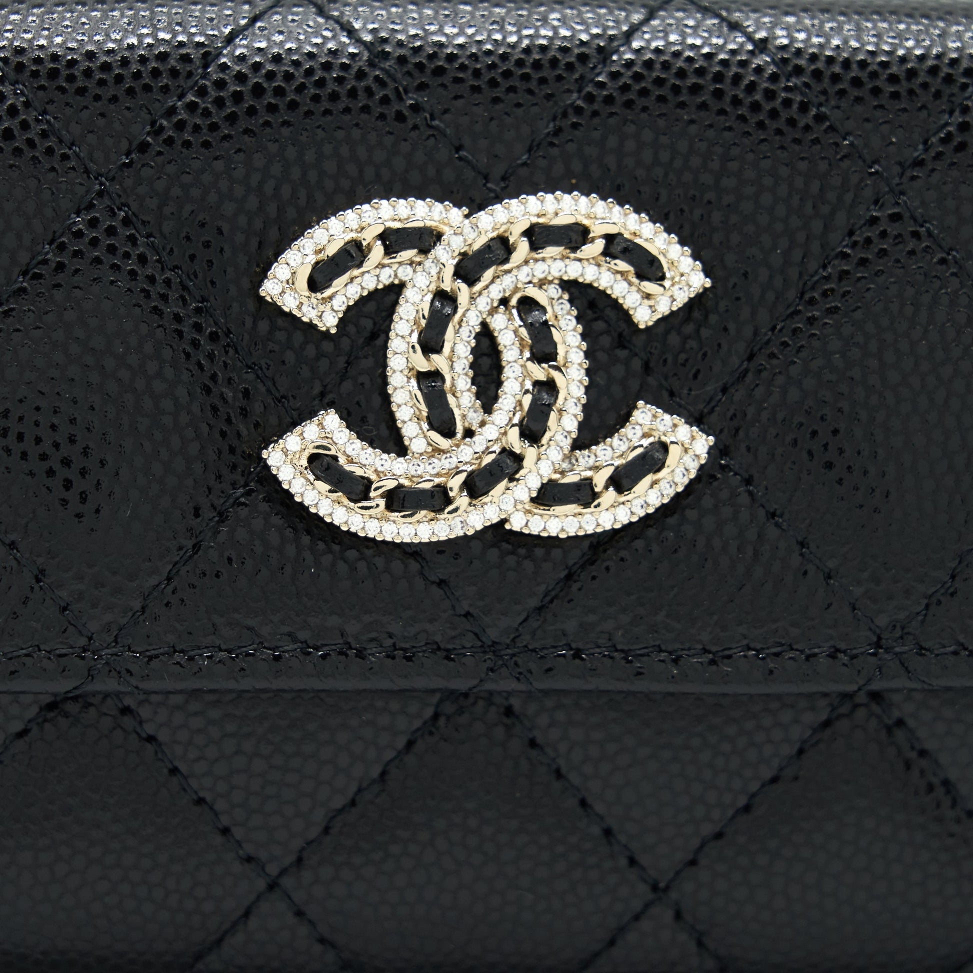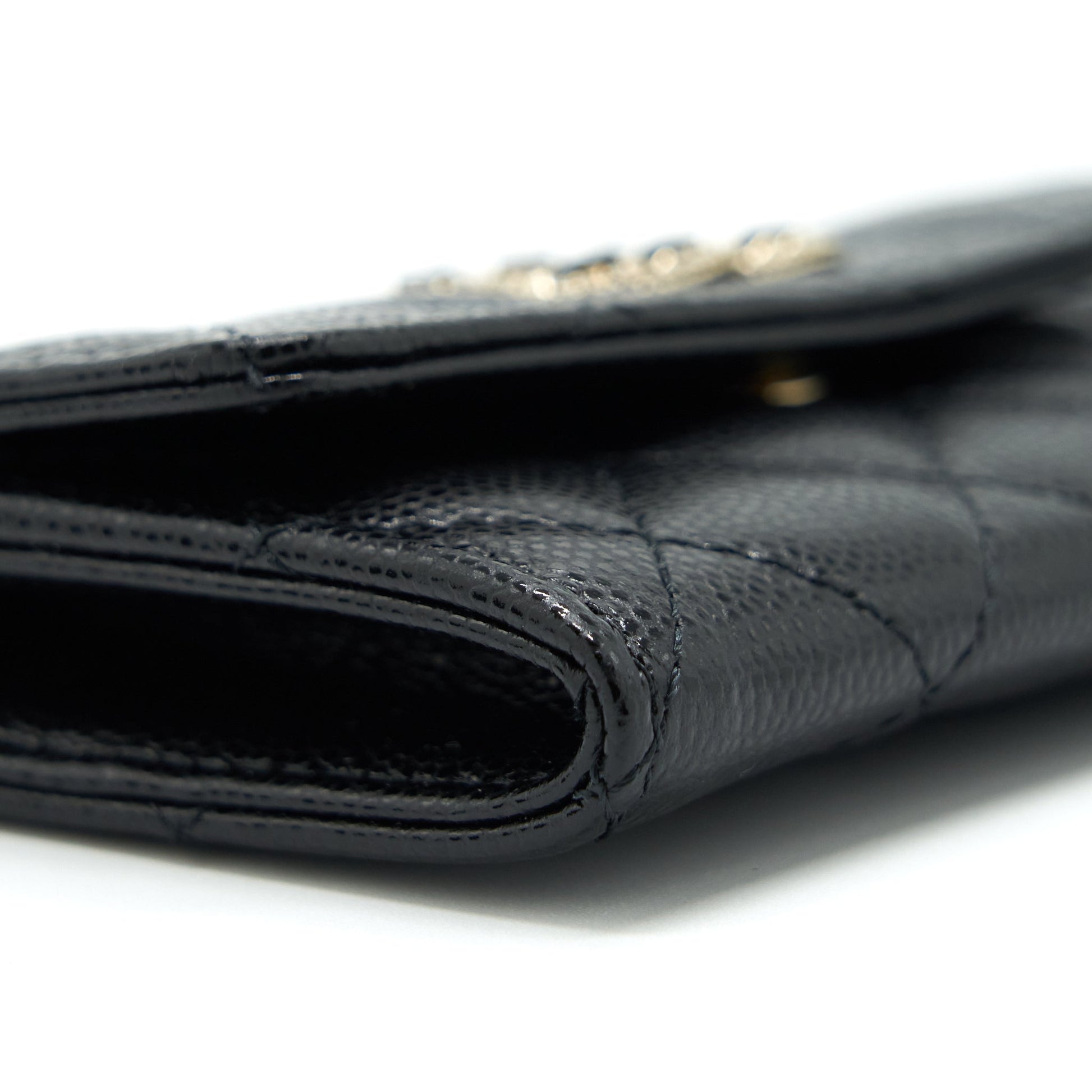 Chanel 22S Detailed Logo Mini Flap Card Holder Caviar Black LGHW