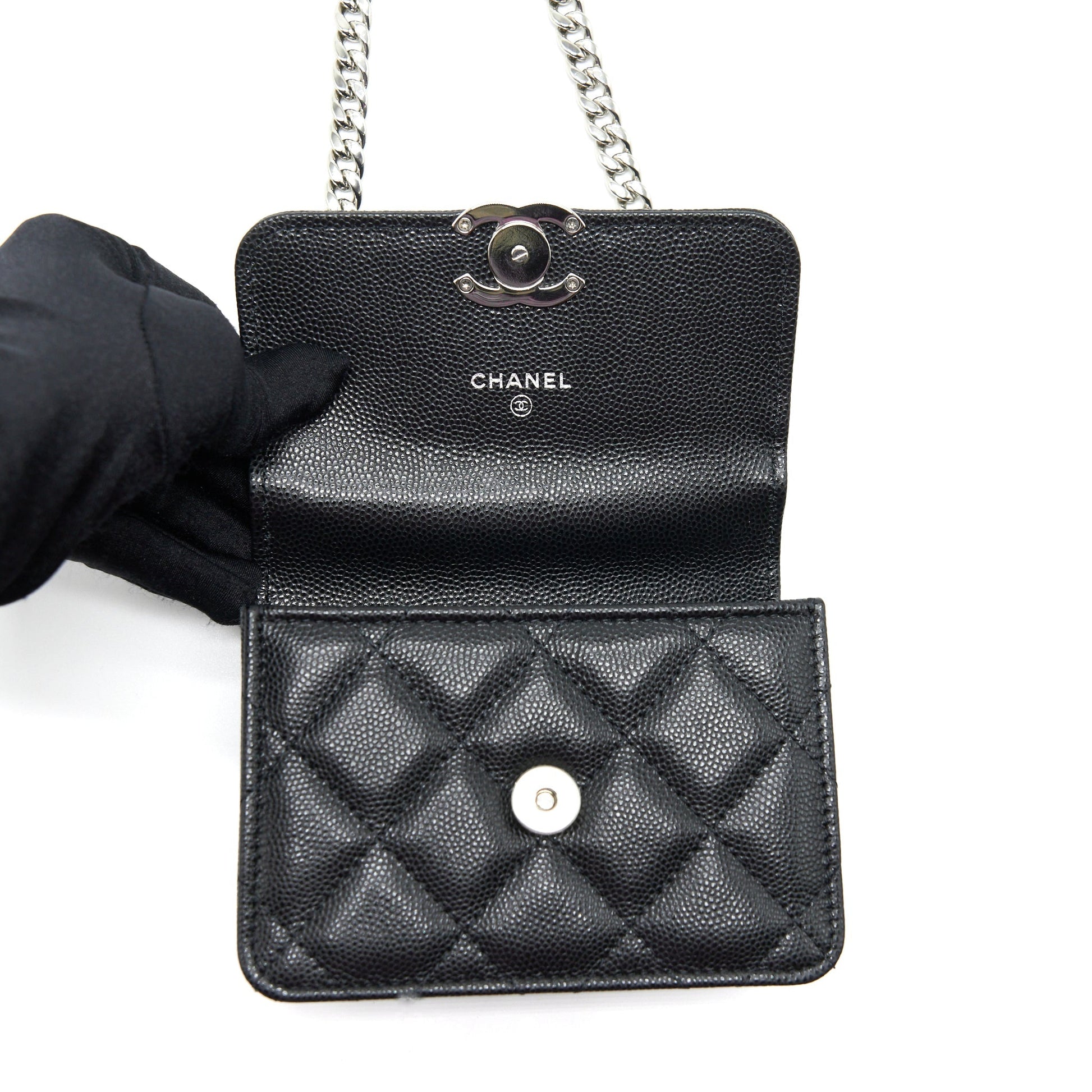 Chanel 22S Giant Chain Top Handle Mini Flap Bag Caviar Black SHW