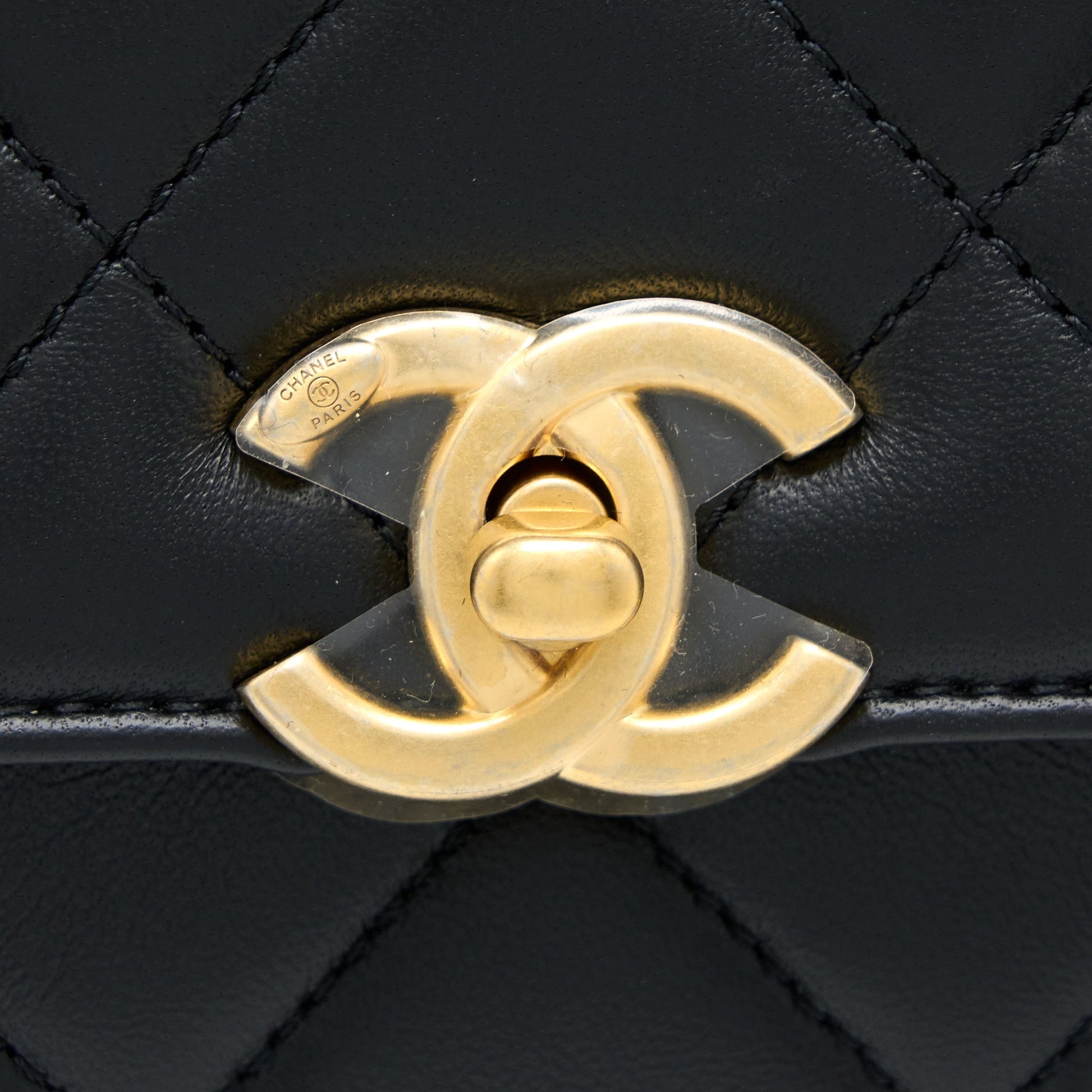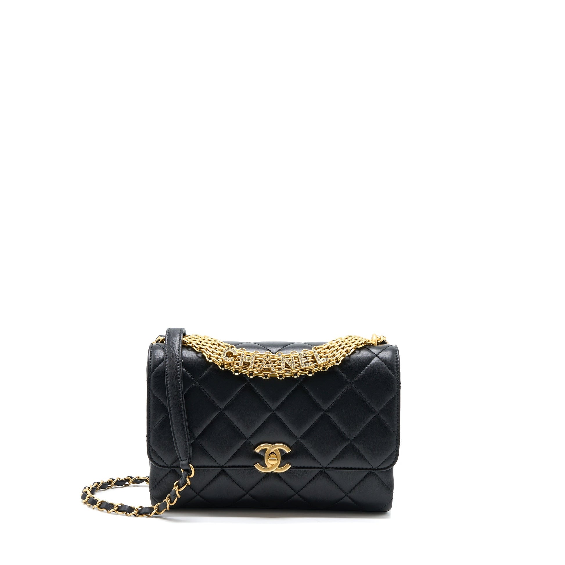 Chanel 22S Letter/Crystal Handle Flap Bag Lambskin Black Brushed GHW(Microchip)