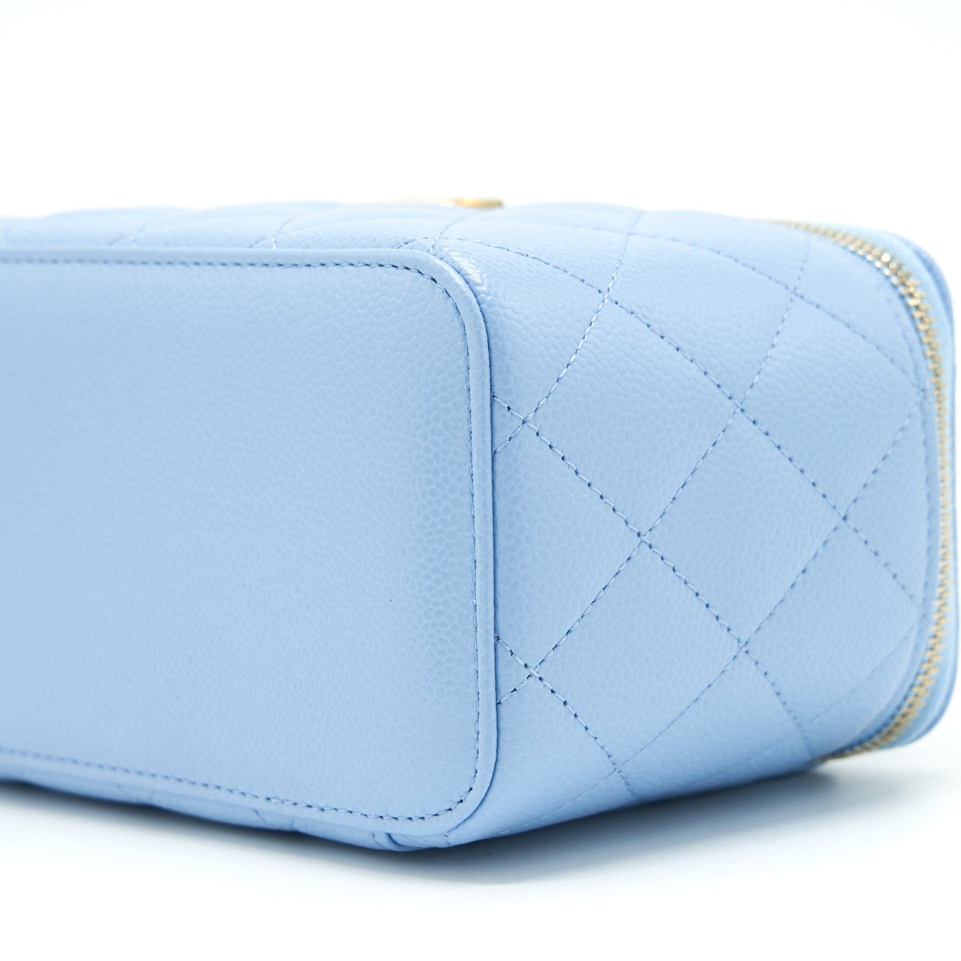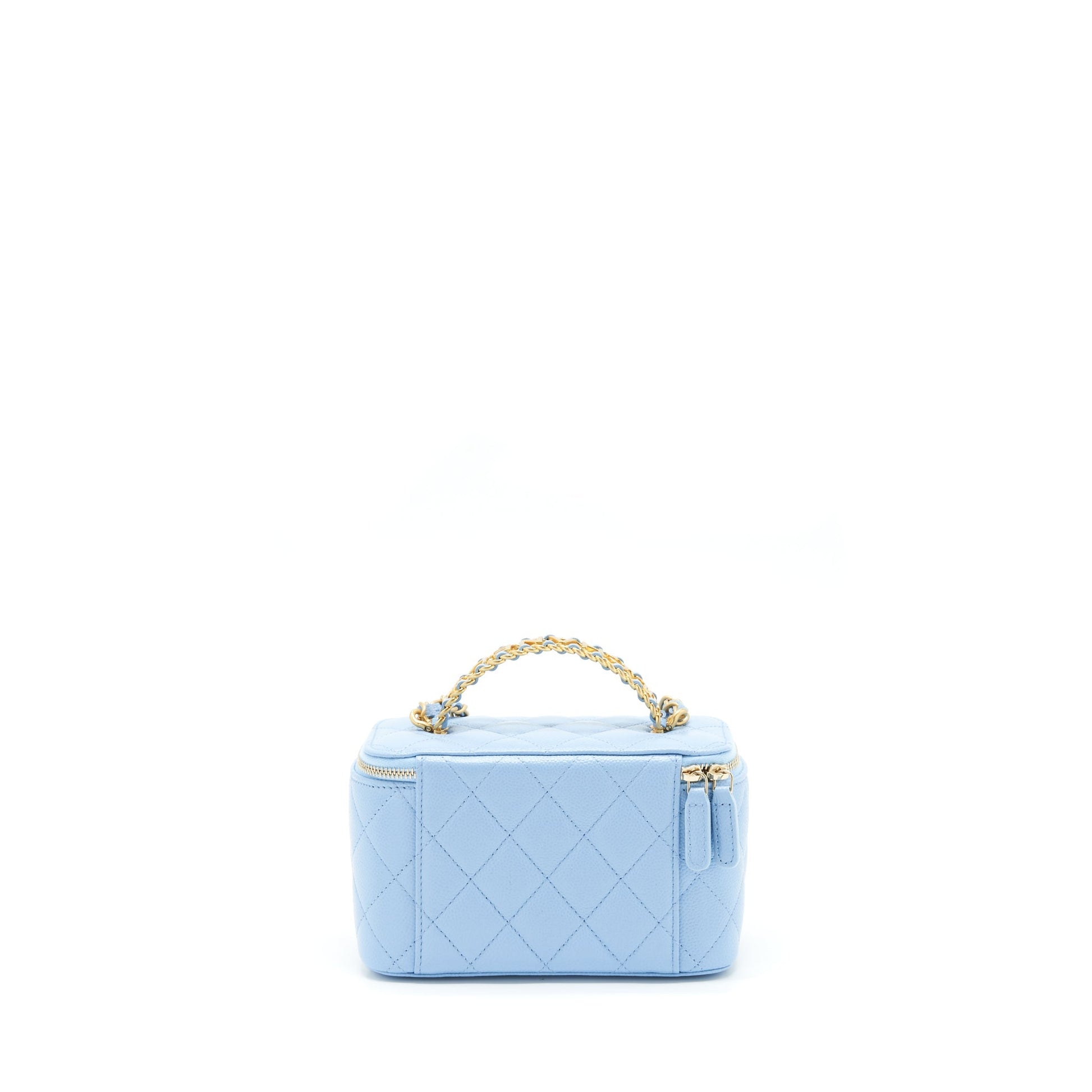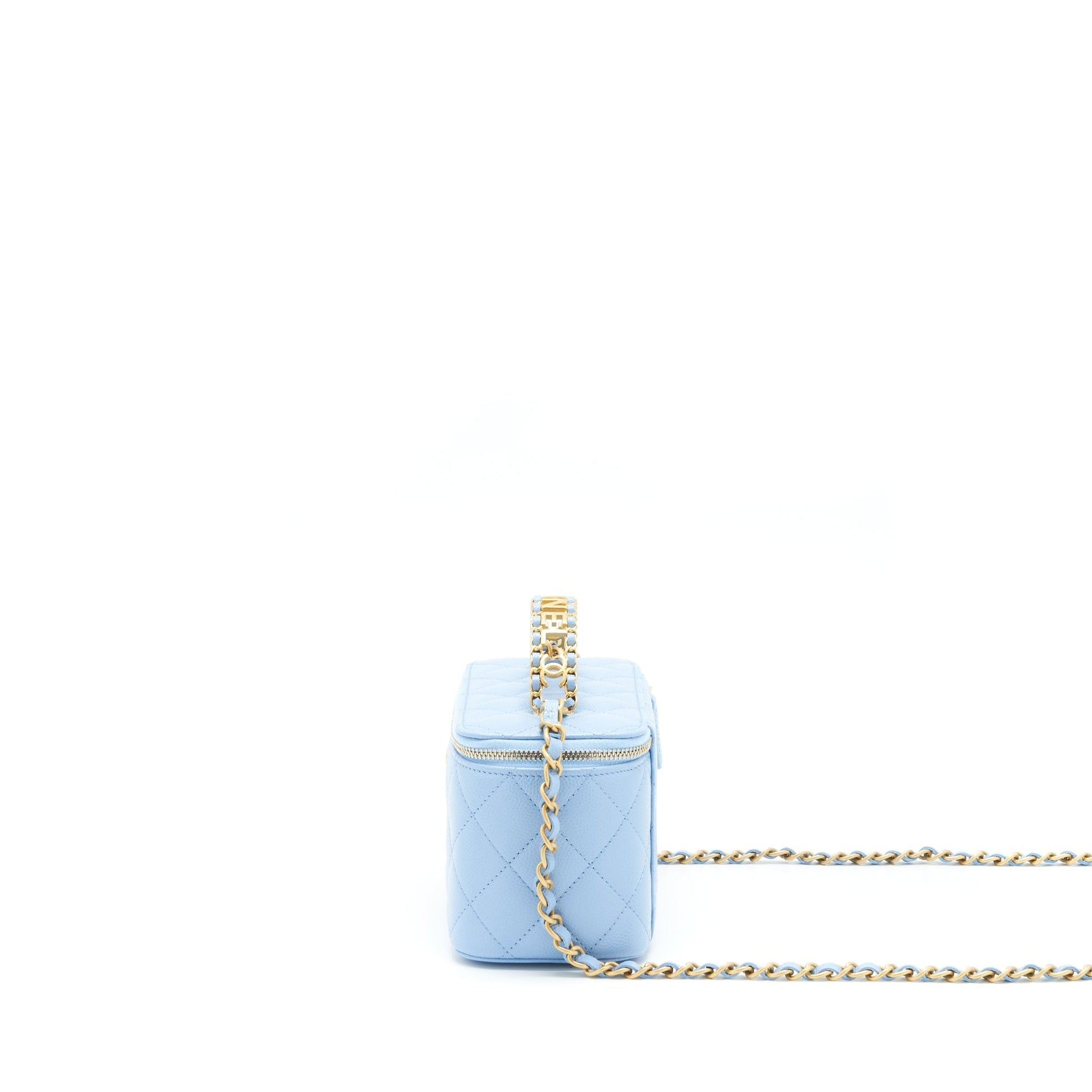 Chanel 22S Letter Logo Top Handle Long Vanity With Chain Caviar Light Blue GHW