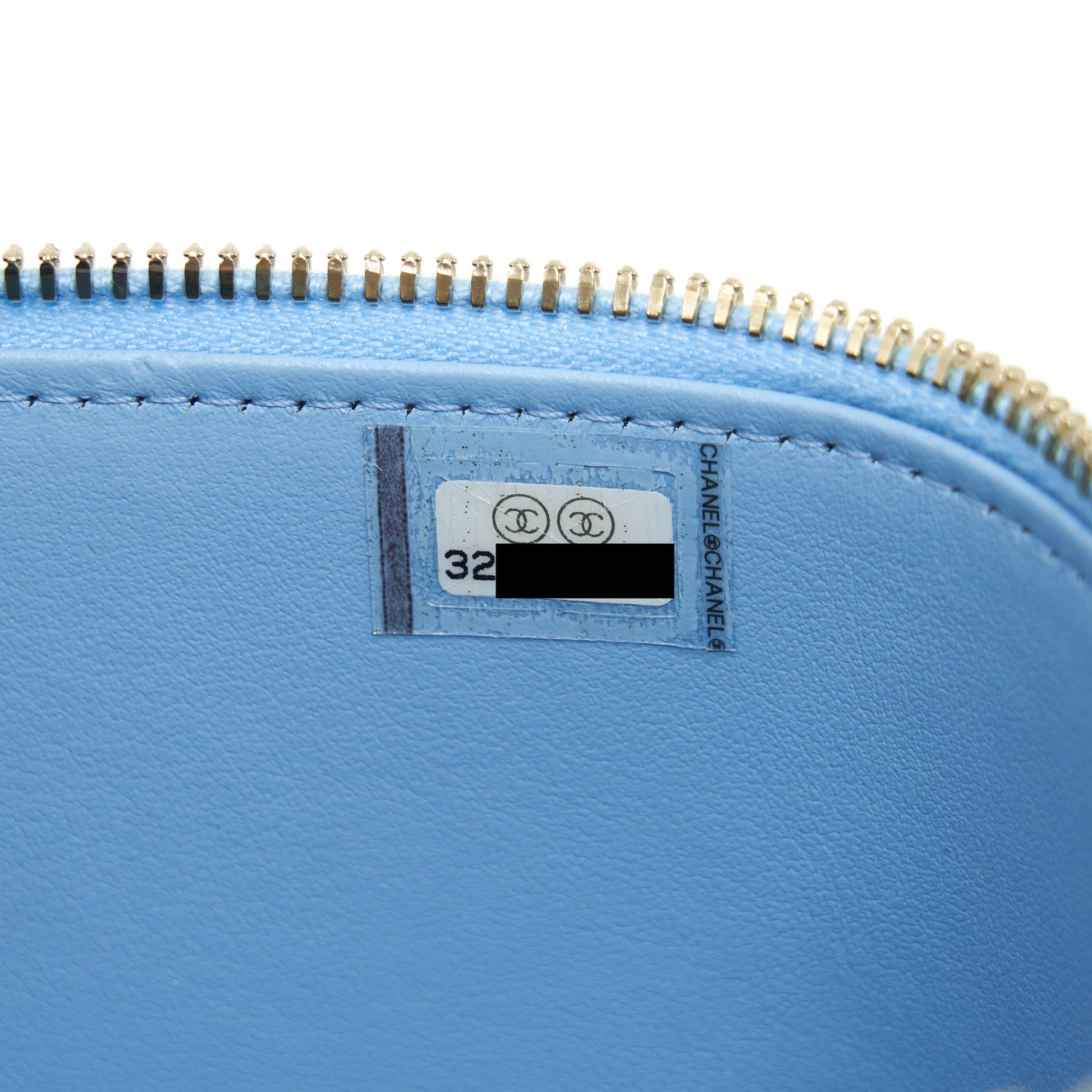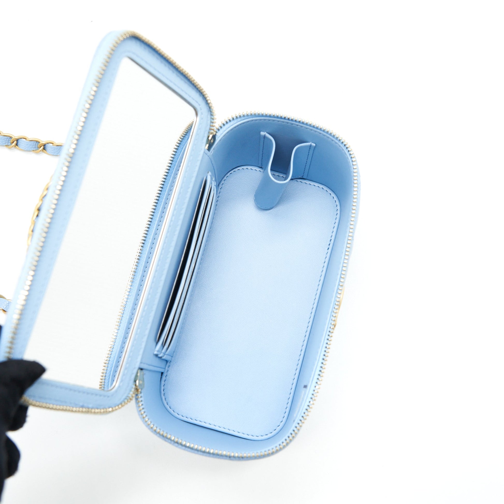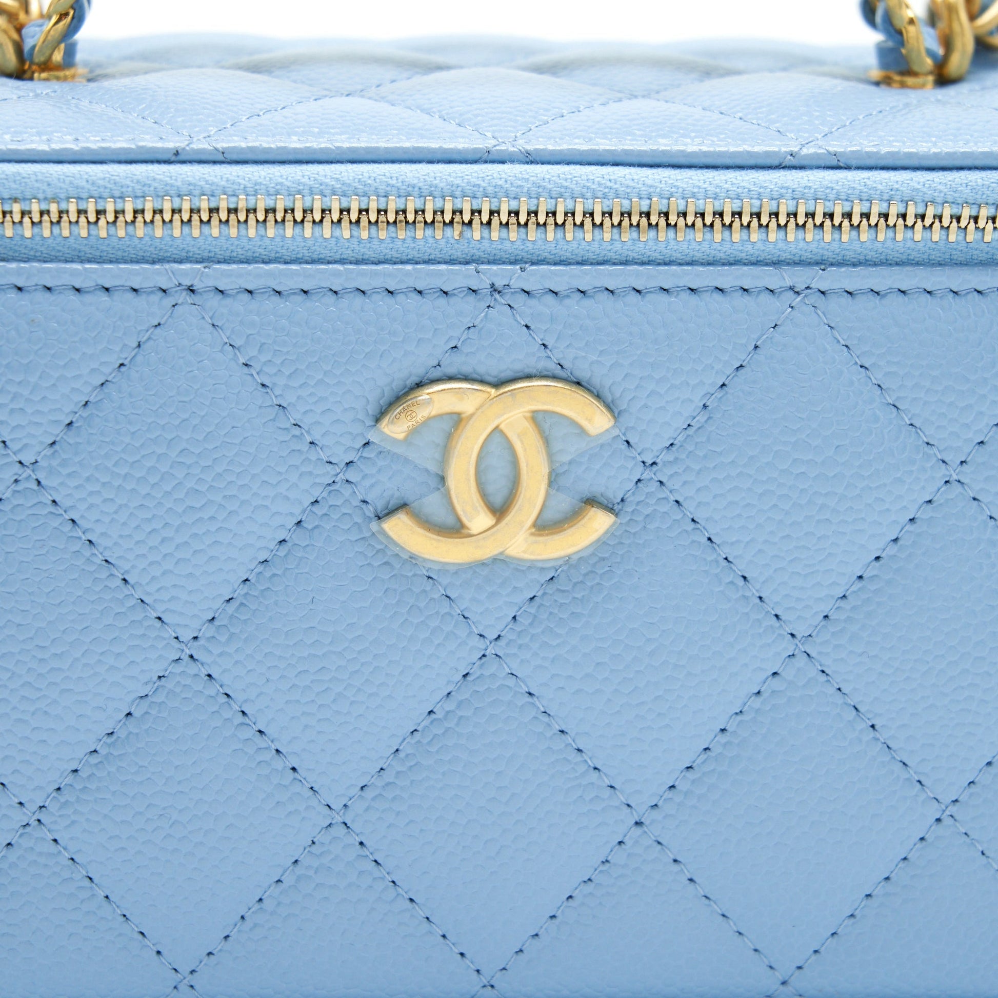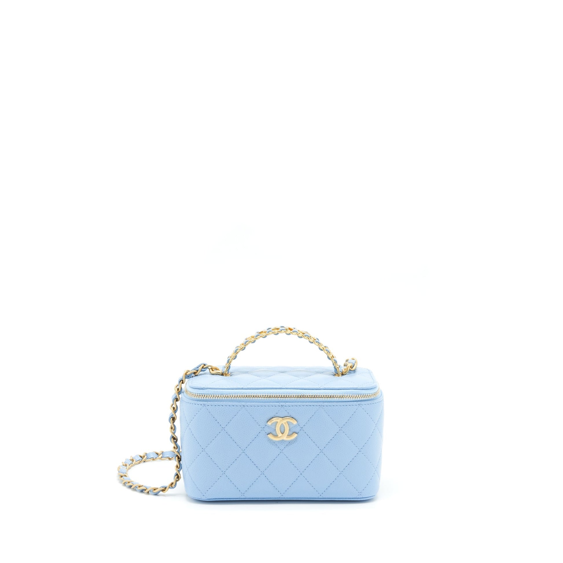 Chanel 22S Letter Logo Top Handle Long Vanity With Chain Caviar Light Blue GHW