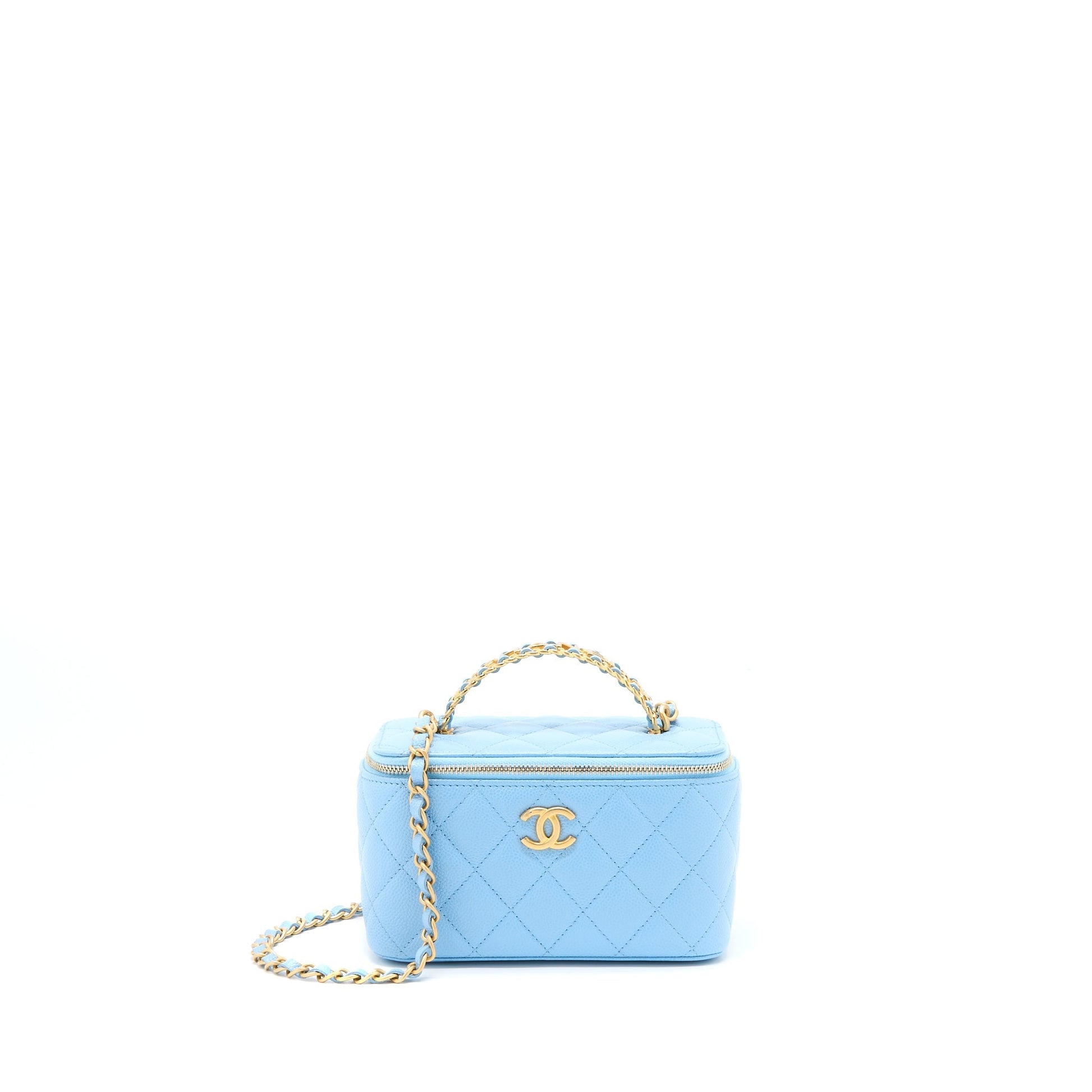 Chanel 22s Letter Top Handle Long Vanity Caviar Blue GHW