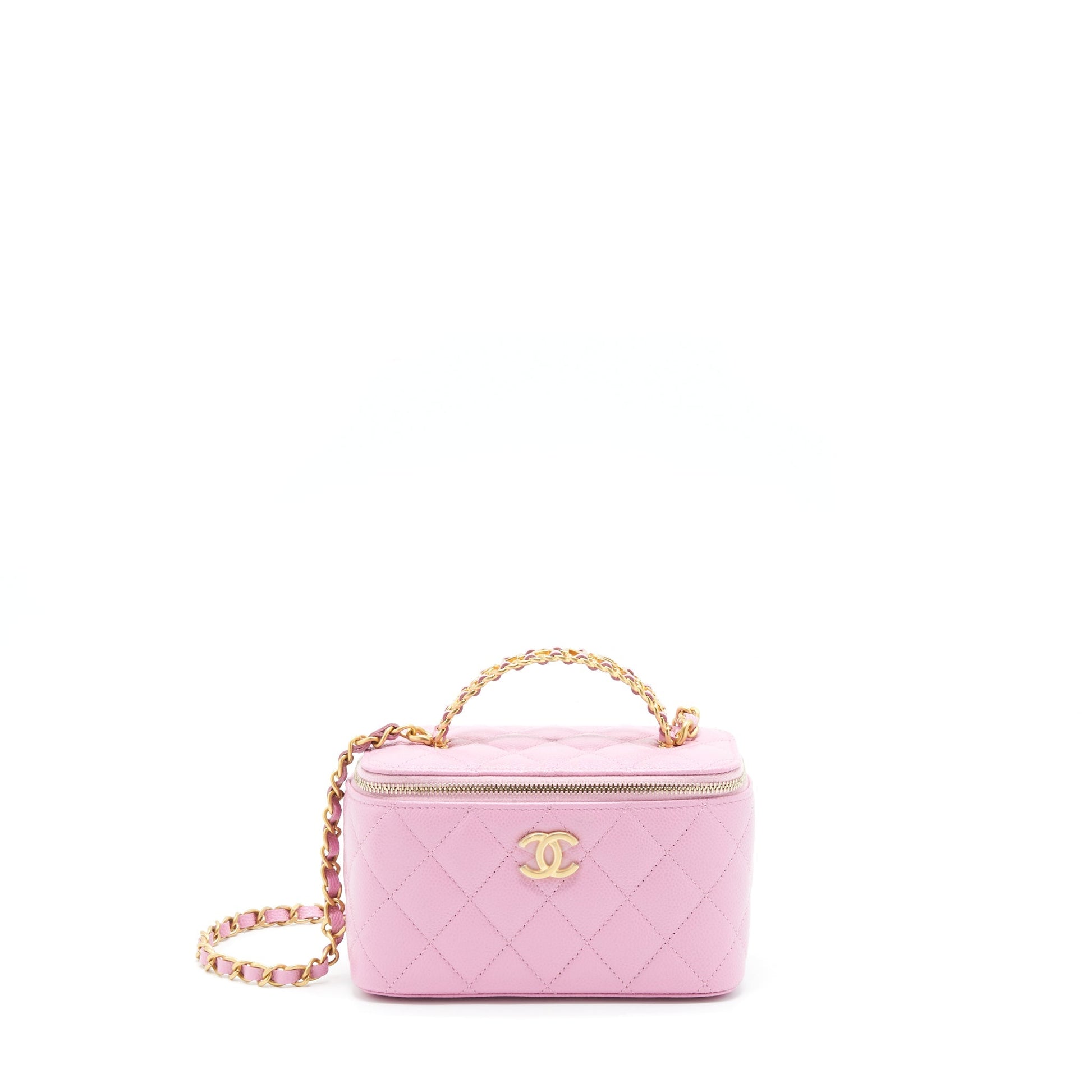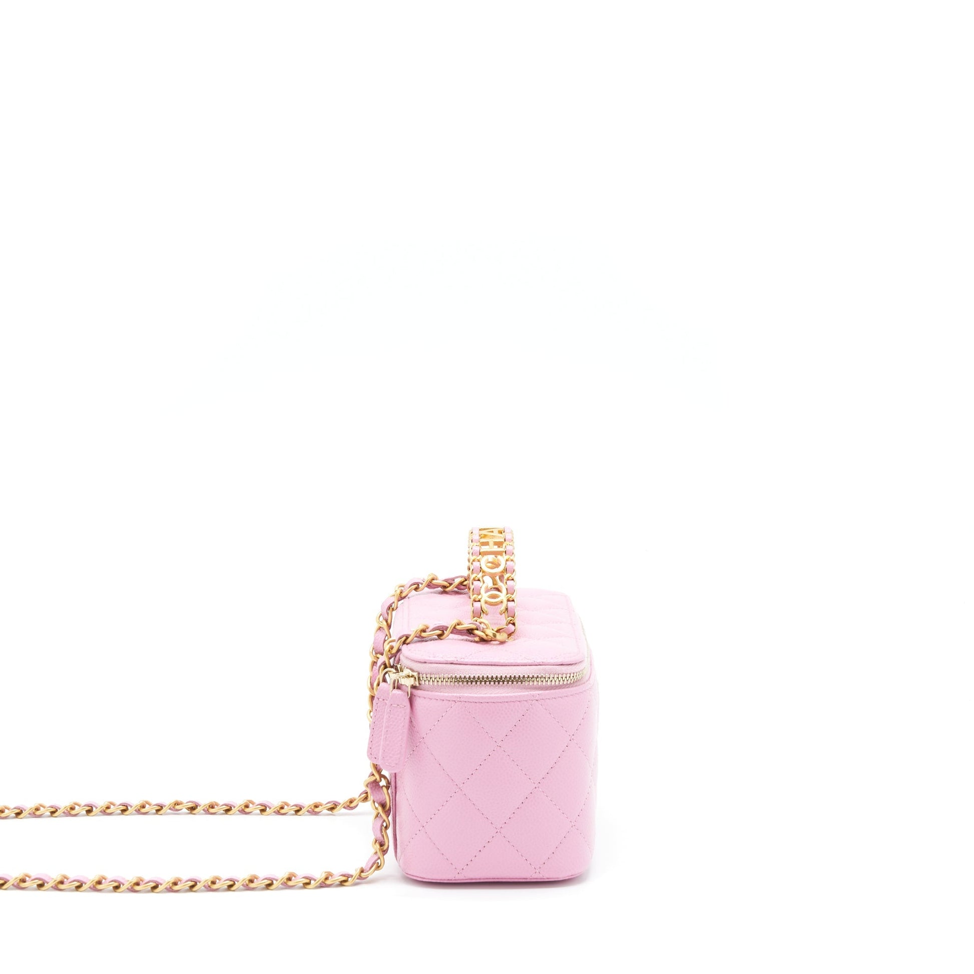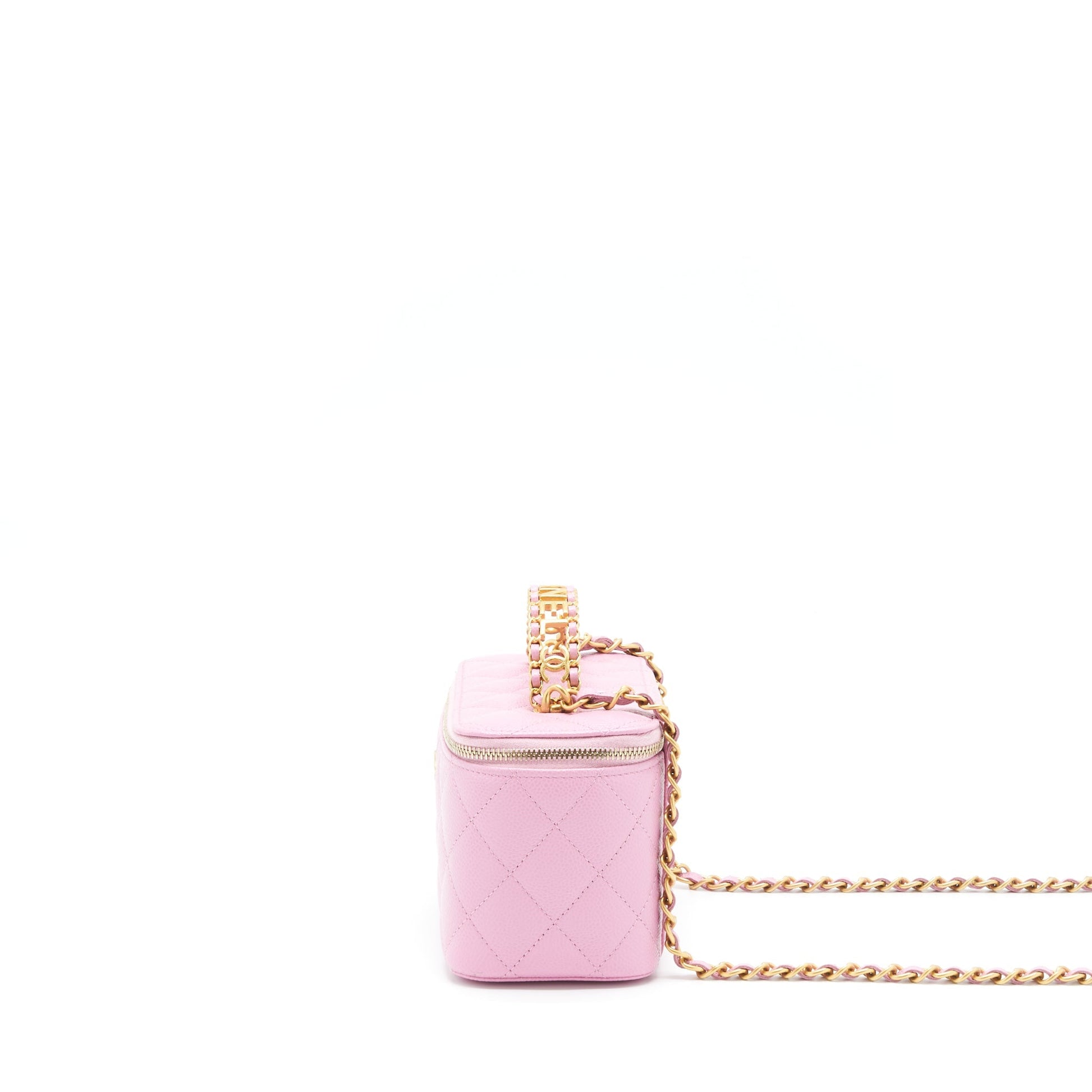 Chanel 22S Letter Top Handle Long Vanity With Chain Caviar NH622 Pink GHW
