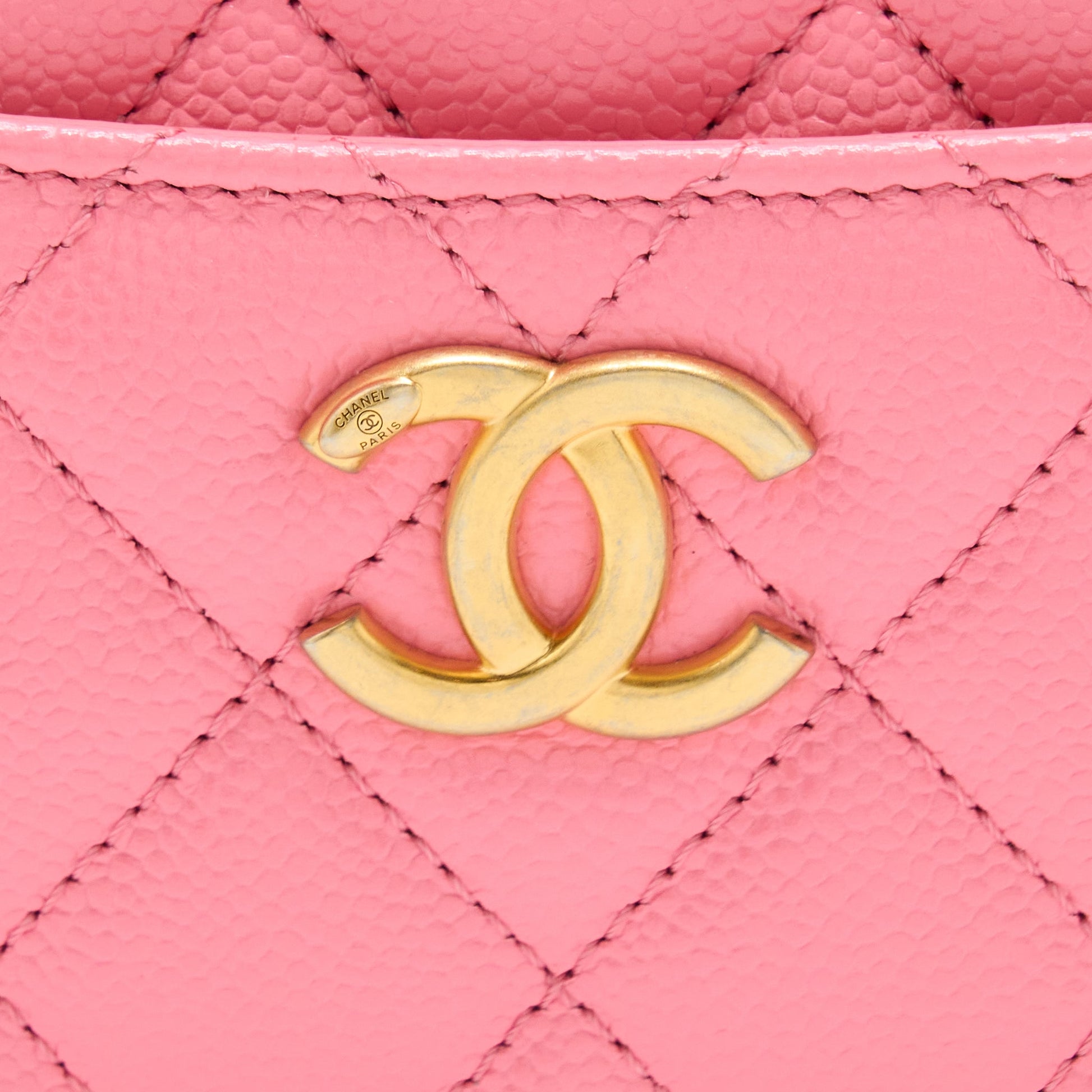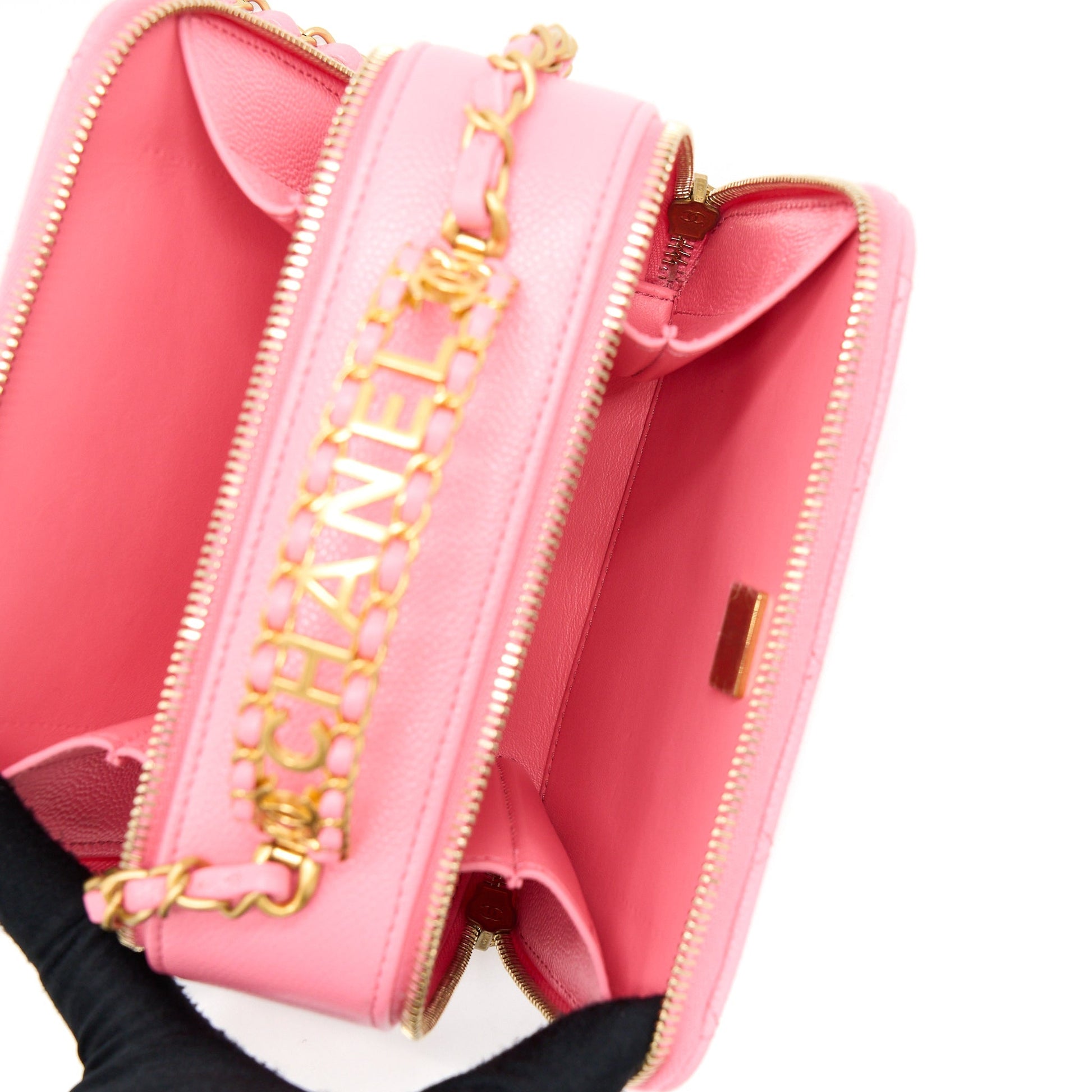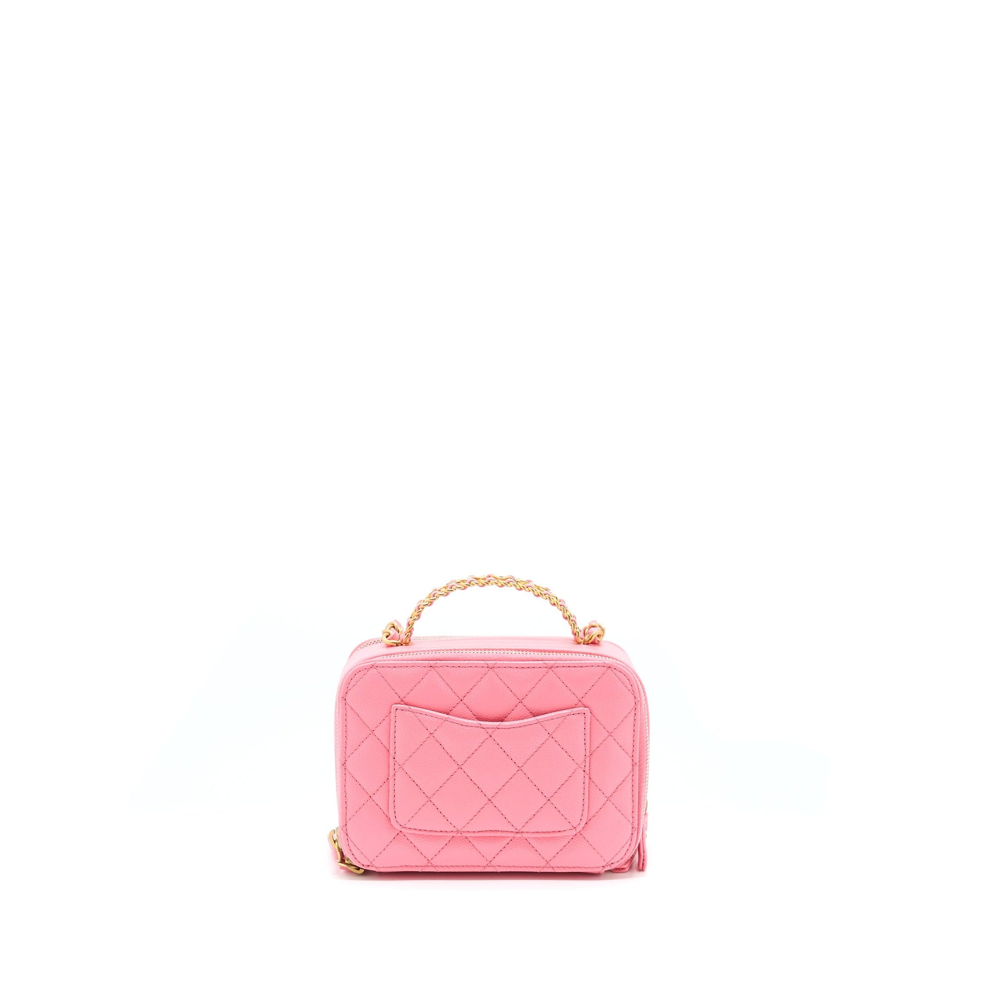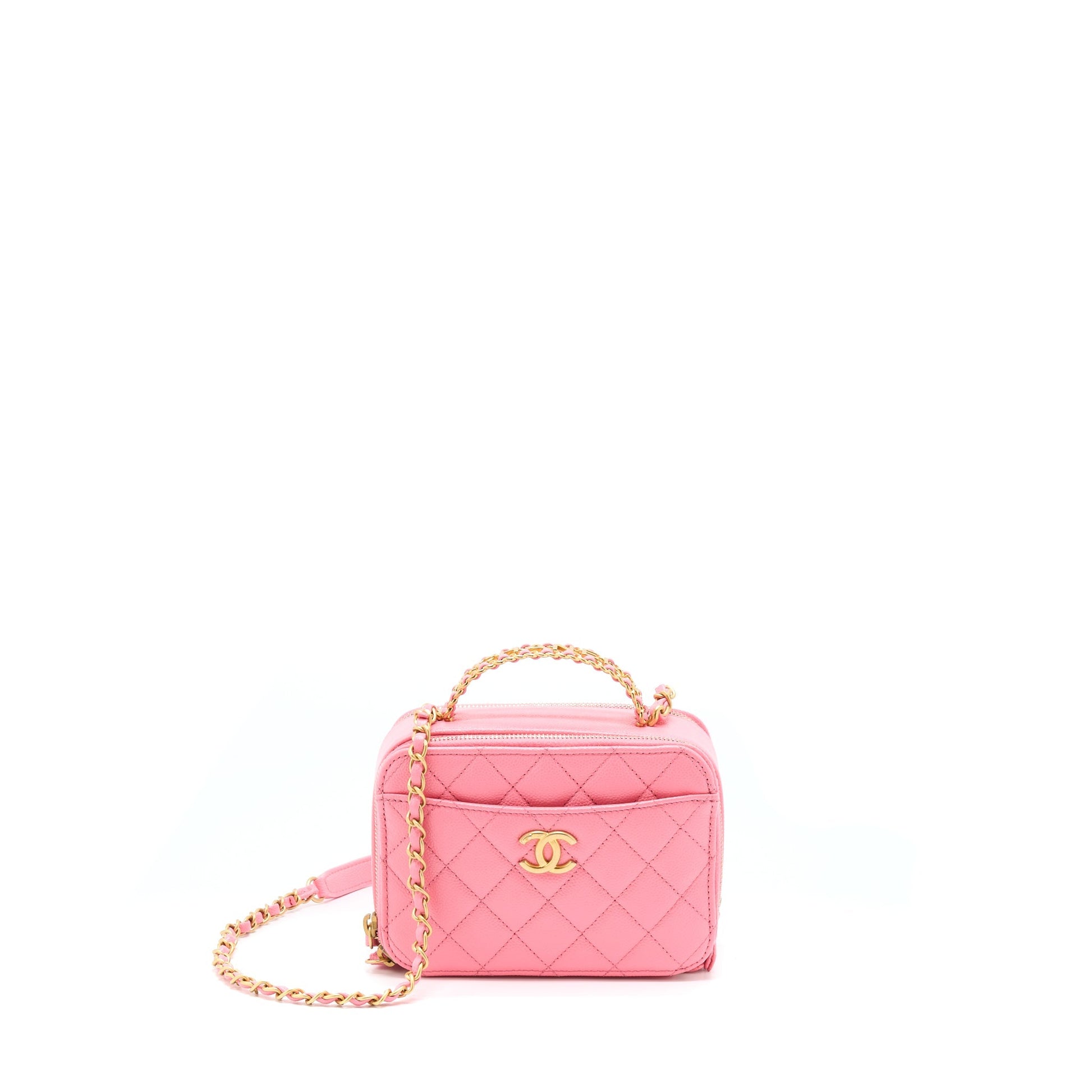 Chanel 22S Letter Top Handle Small Vanity Case Caviar Pink Brushed GHW(Microchip)