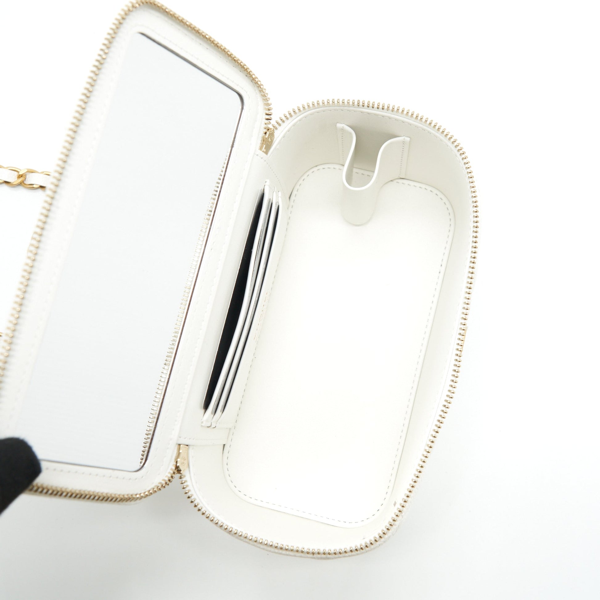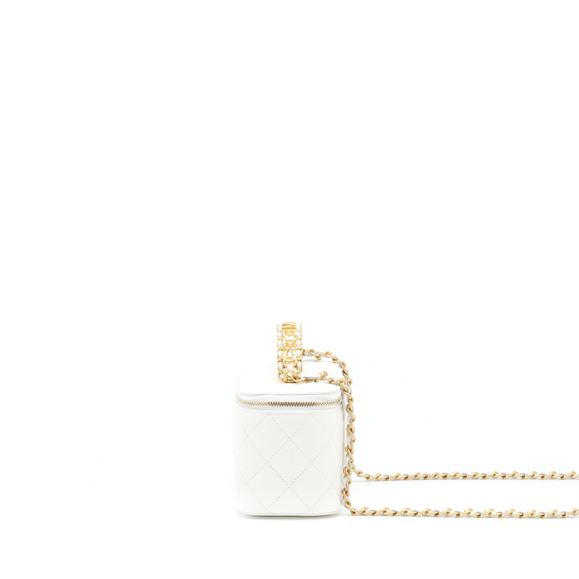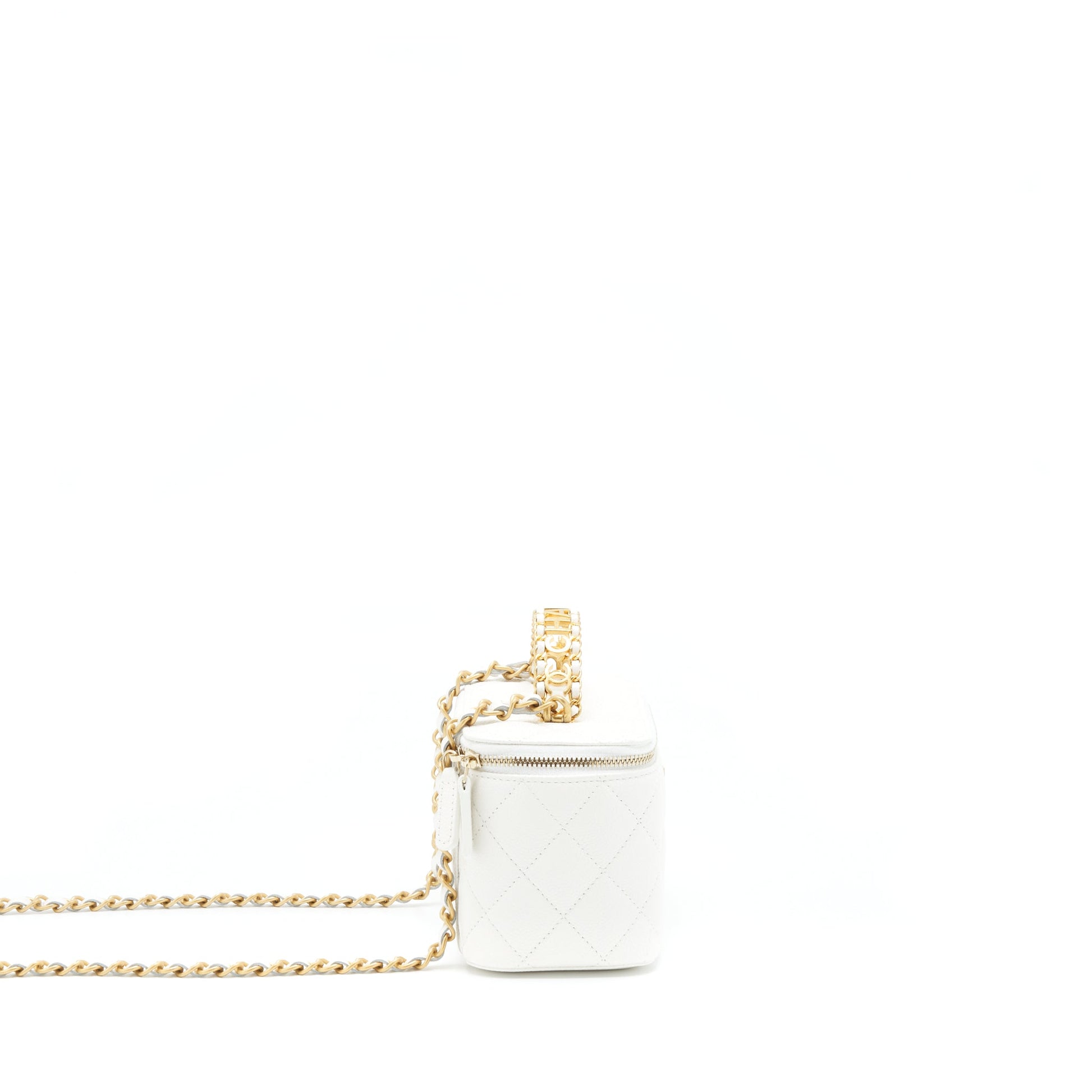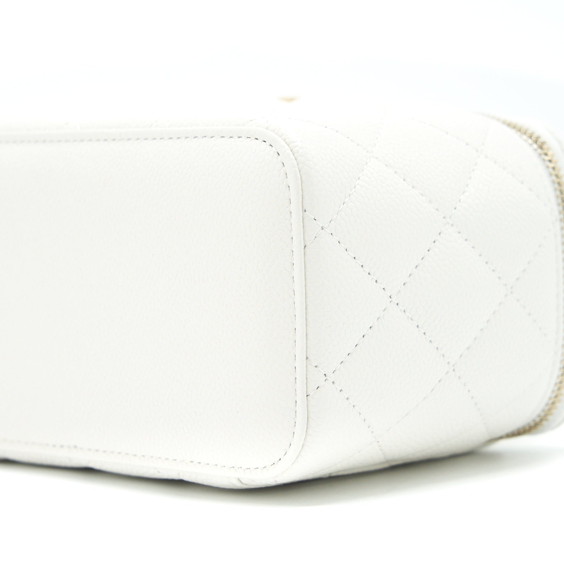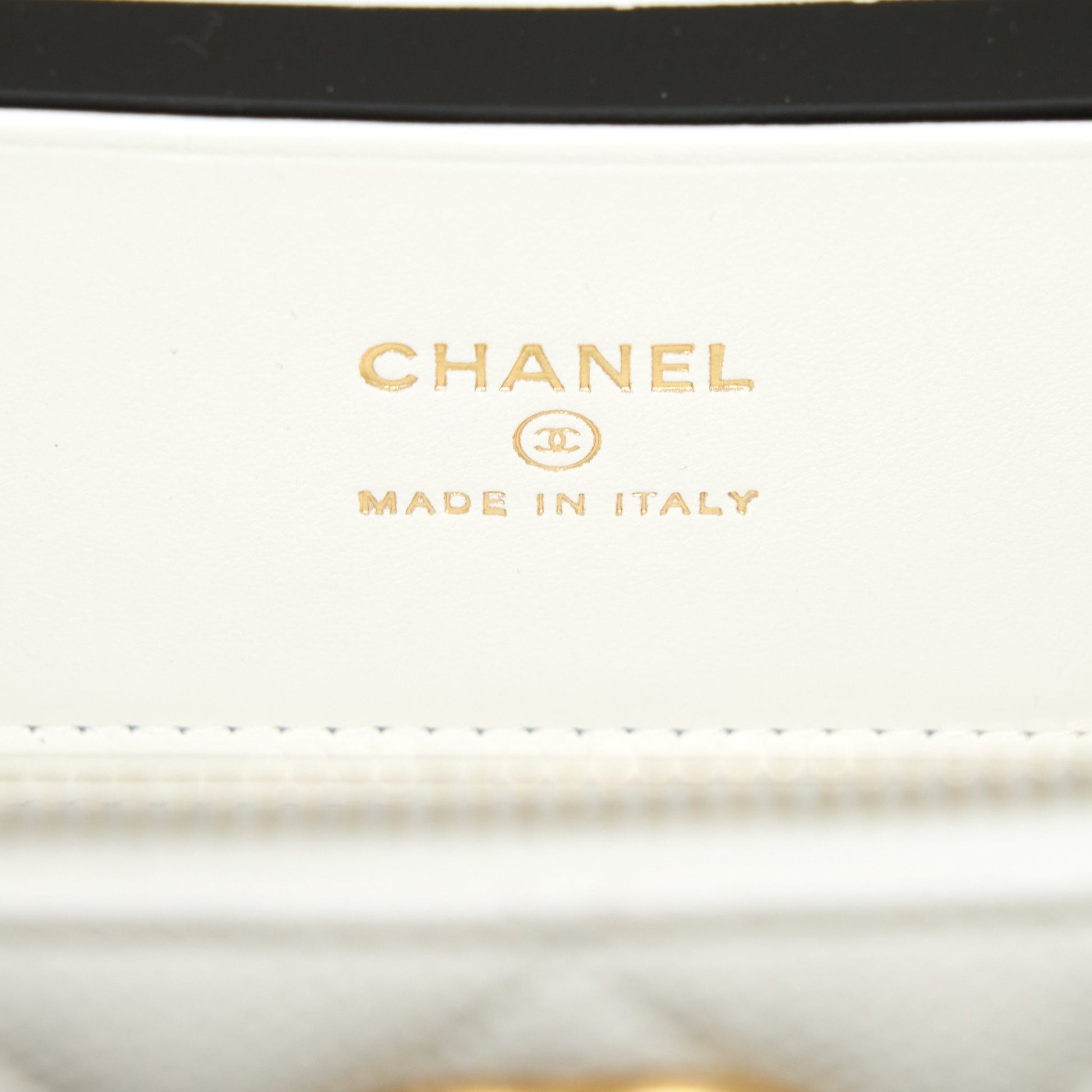 Chanel 22S Logo Top Handle Long Vanity Caviar White GHW