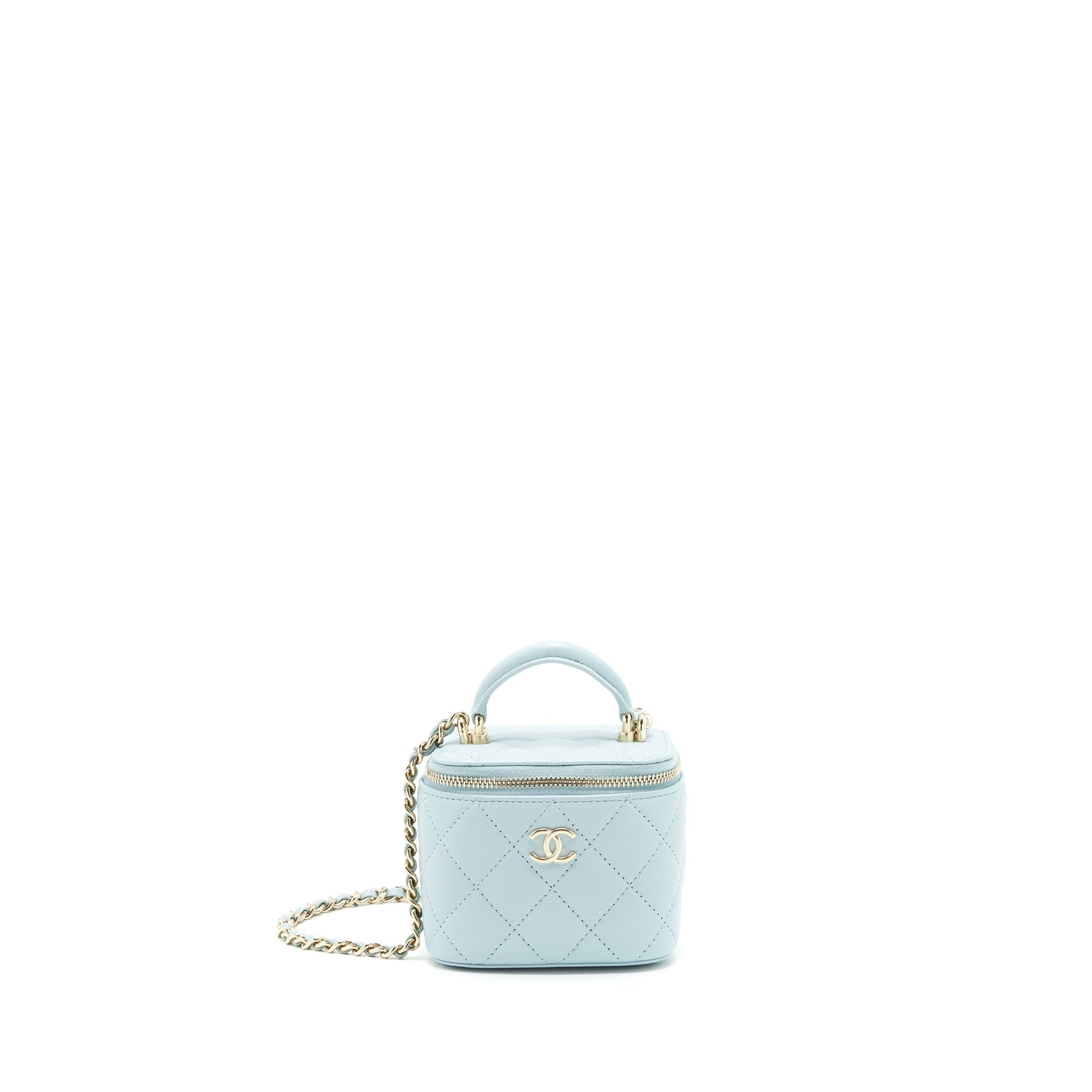 Chanel 22S Mini Top Handle Vanity Case Lambskin Light Blue LGHW