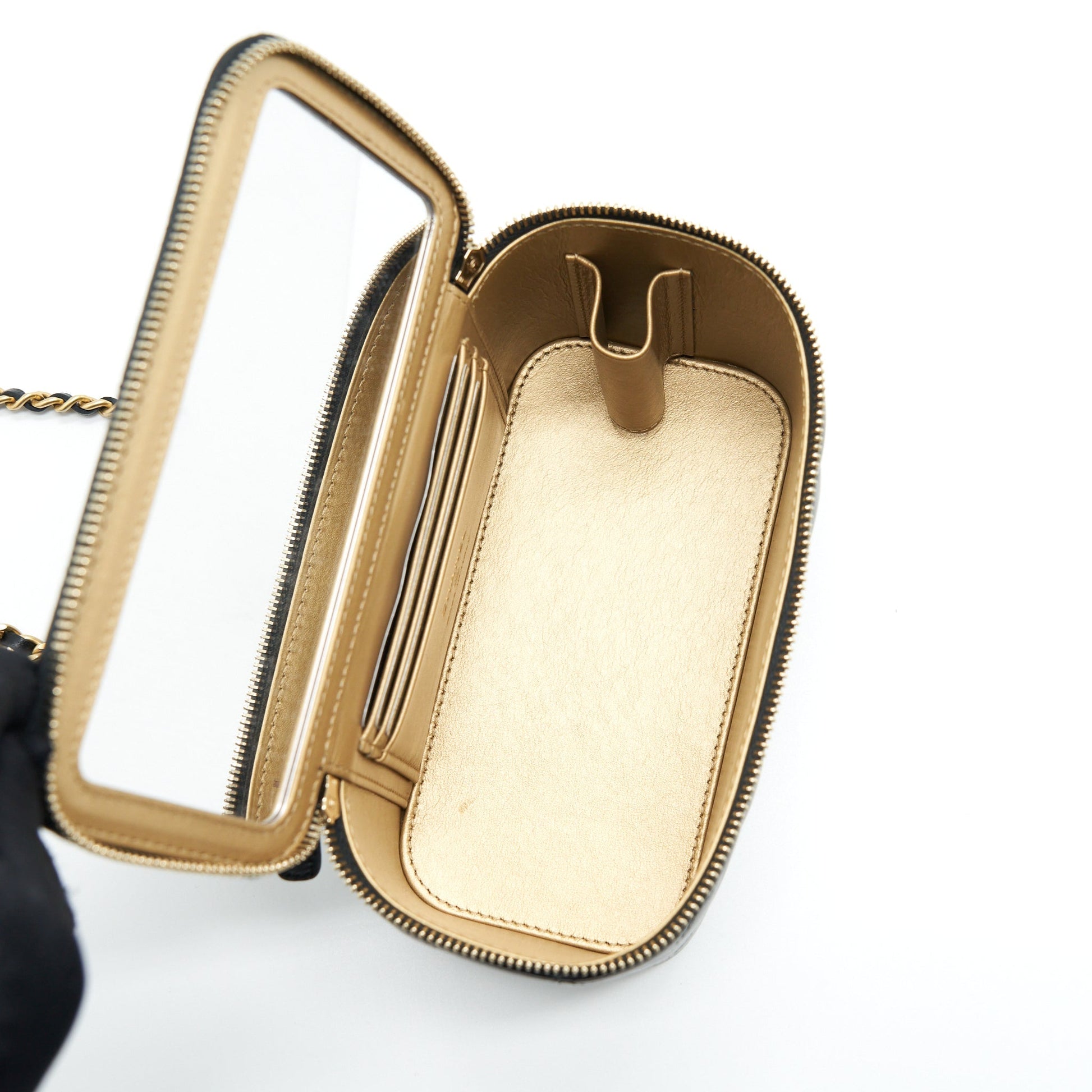 Chanel 22S Pearl Crush Long Vanity With Chain Lambskin Black GHW