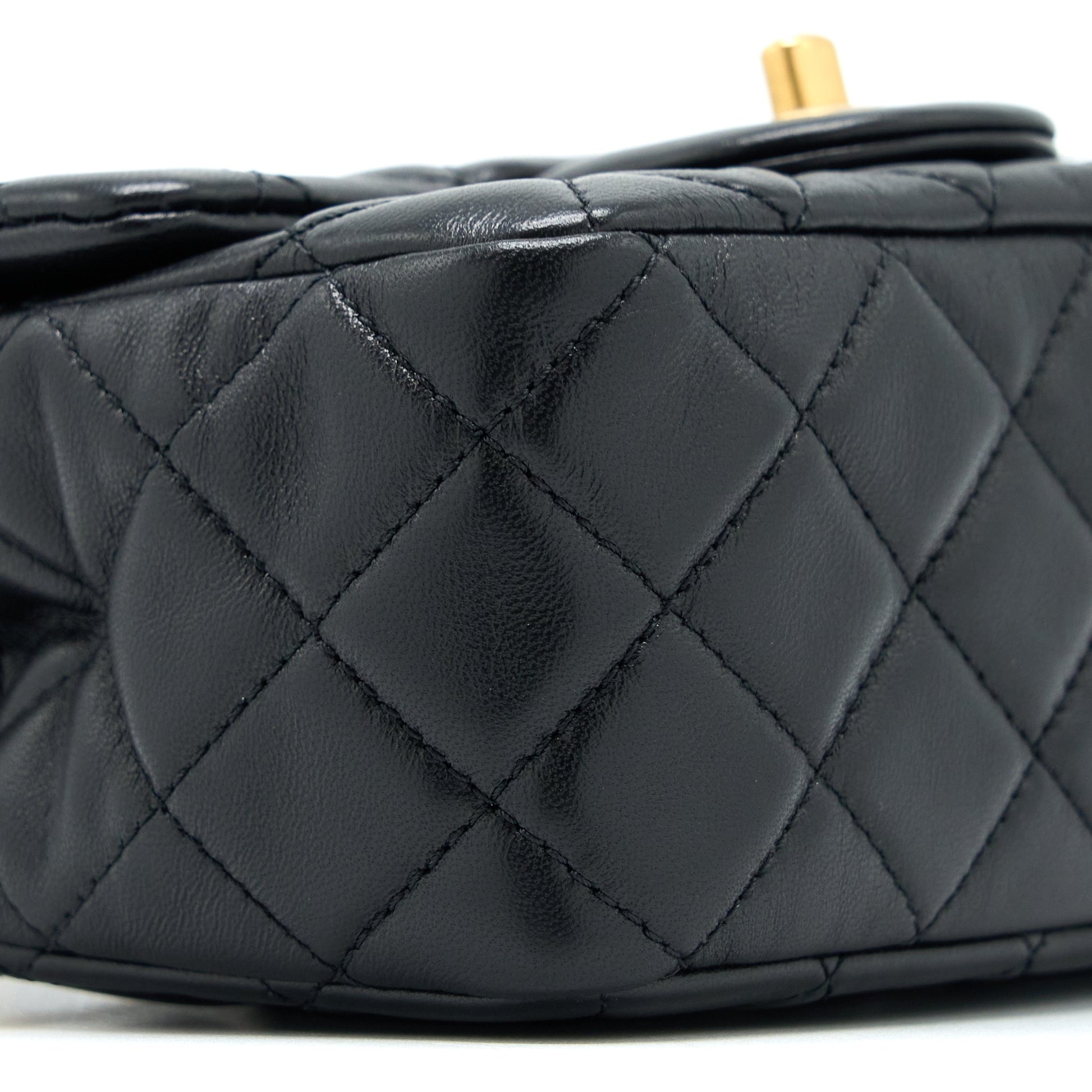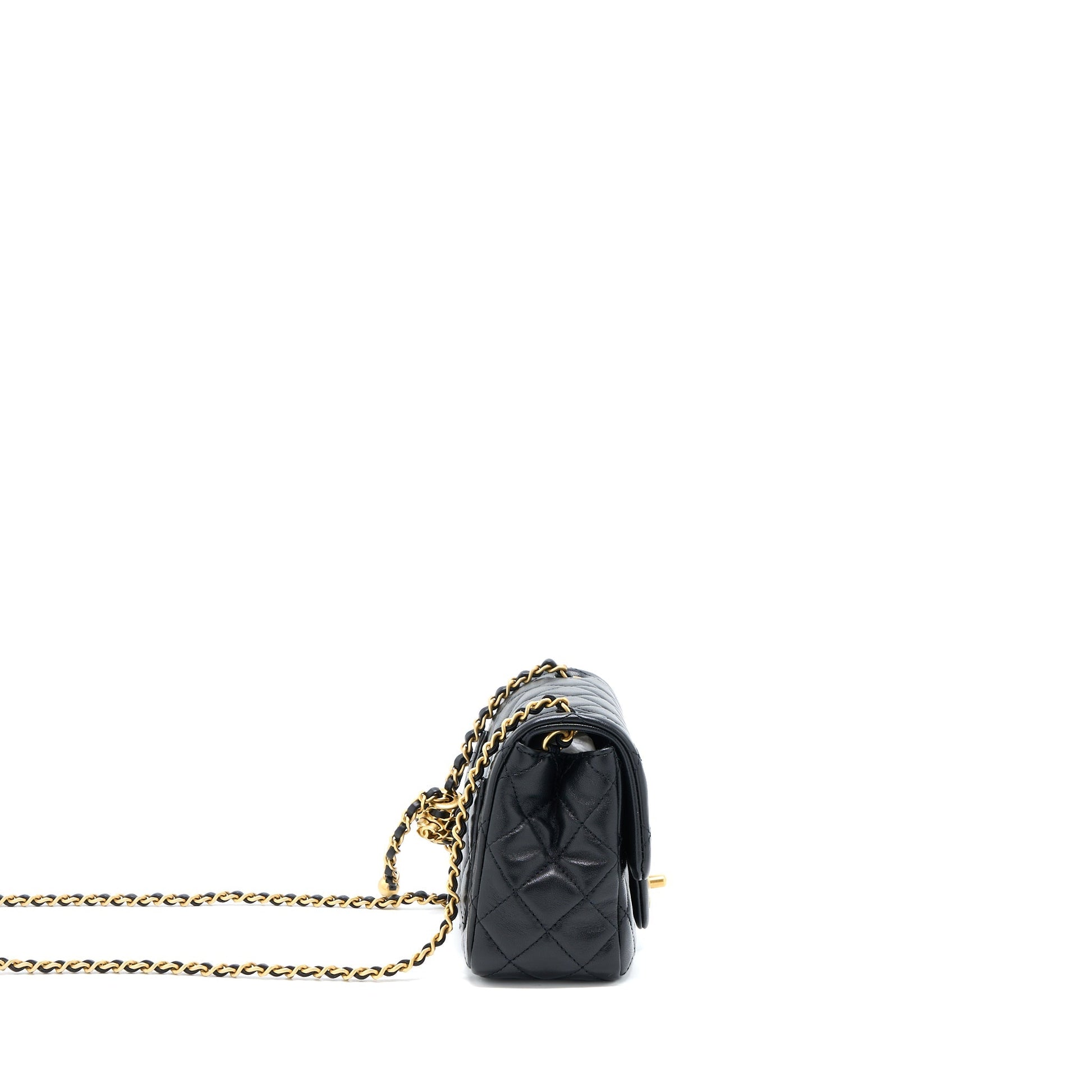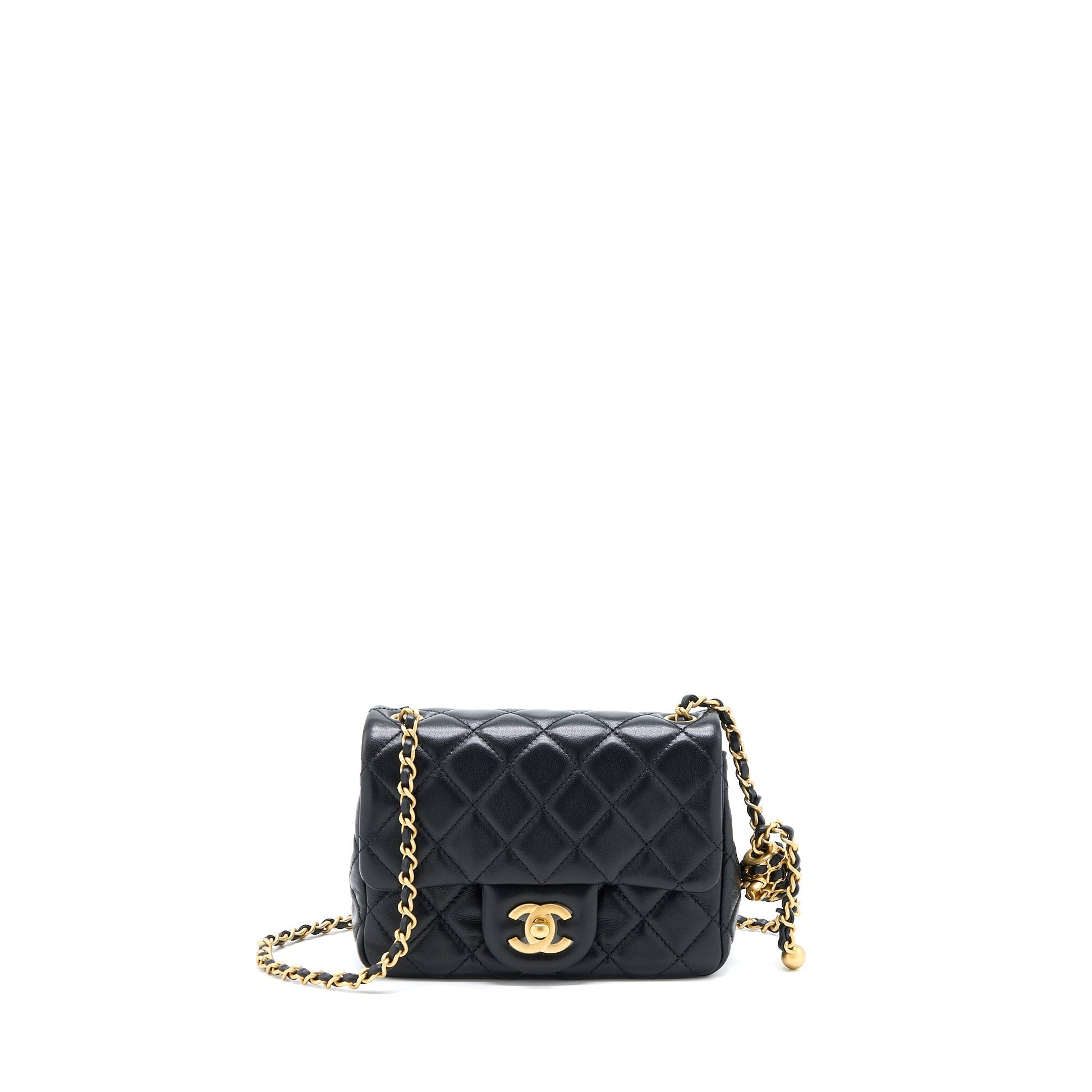Chanel 22S Pearl Crush Mini Square Flap Bag Lambskin Black GHW(Microchip)