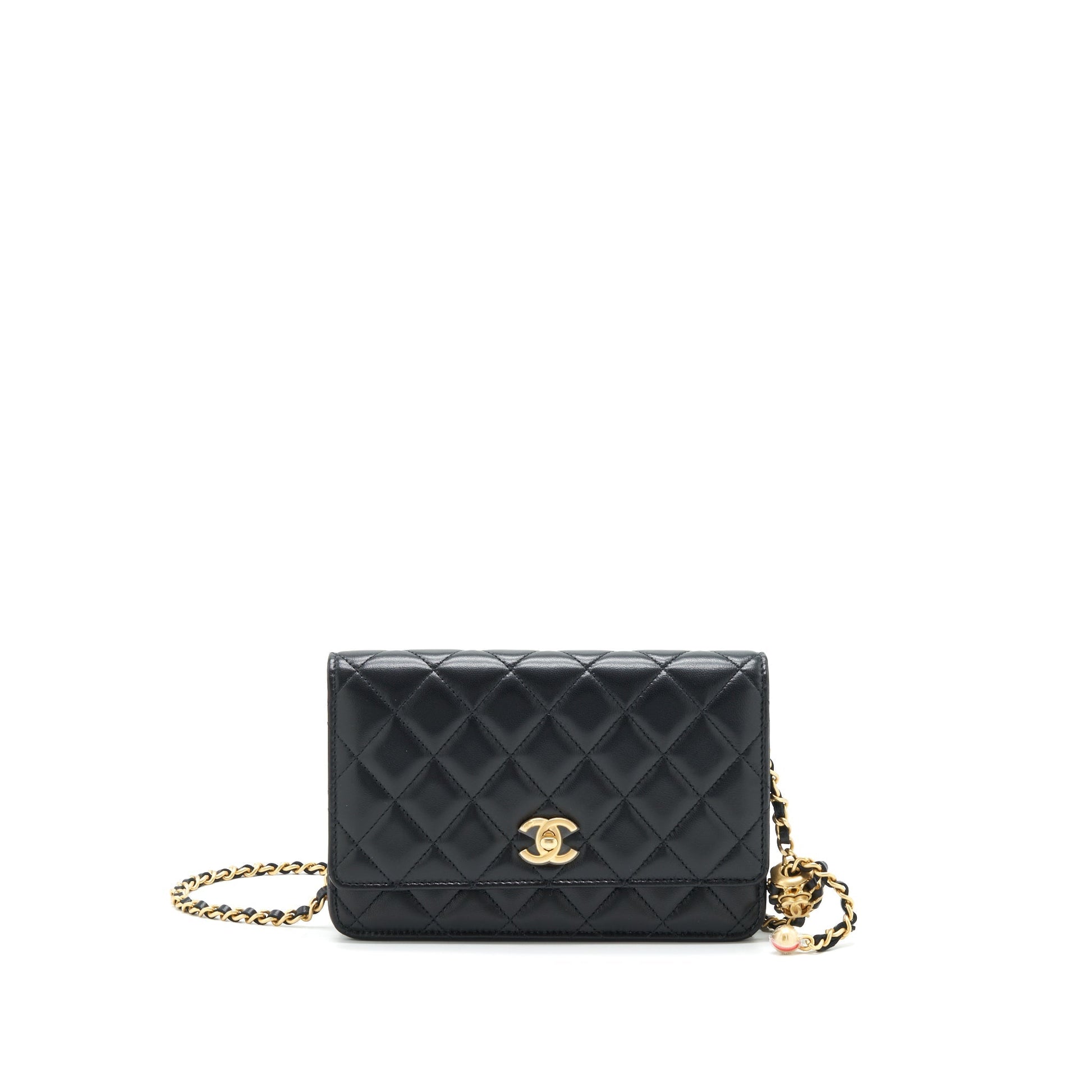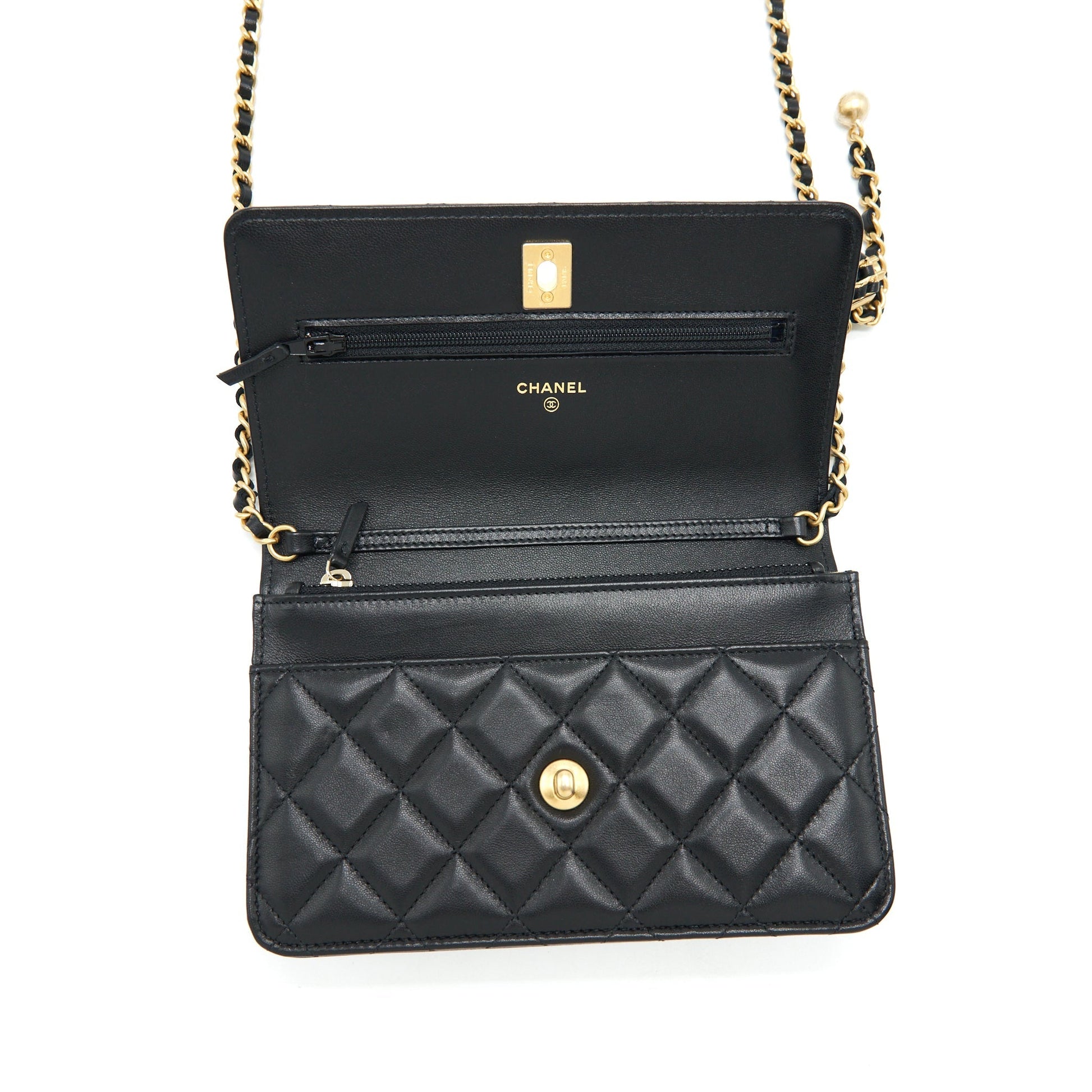 Chanel 22S Pearl Crush Wallet On Chain Lambskin Black GHW (Microchip)