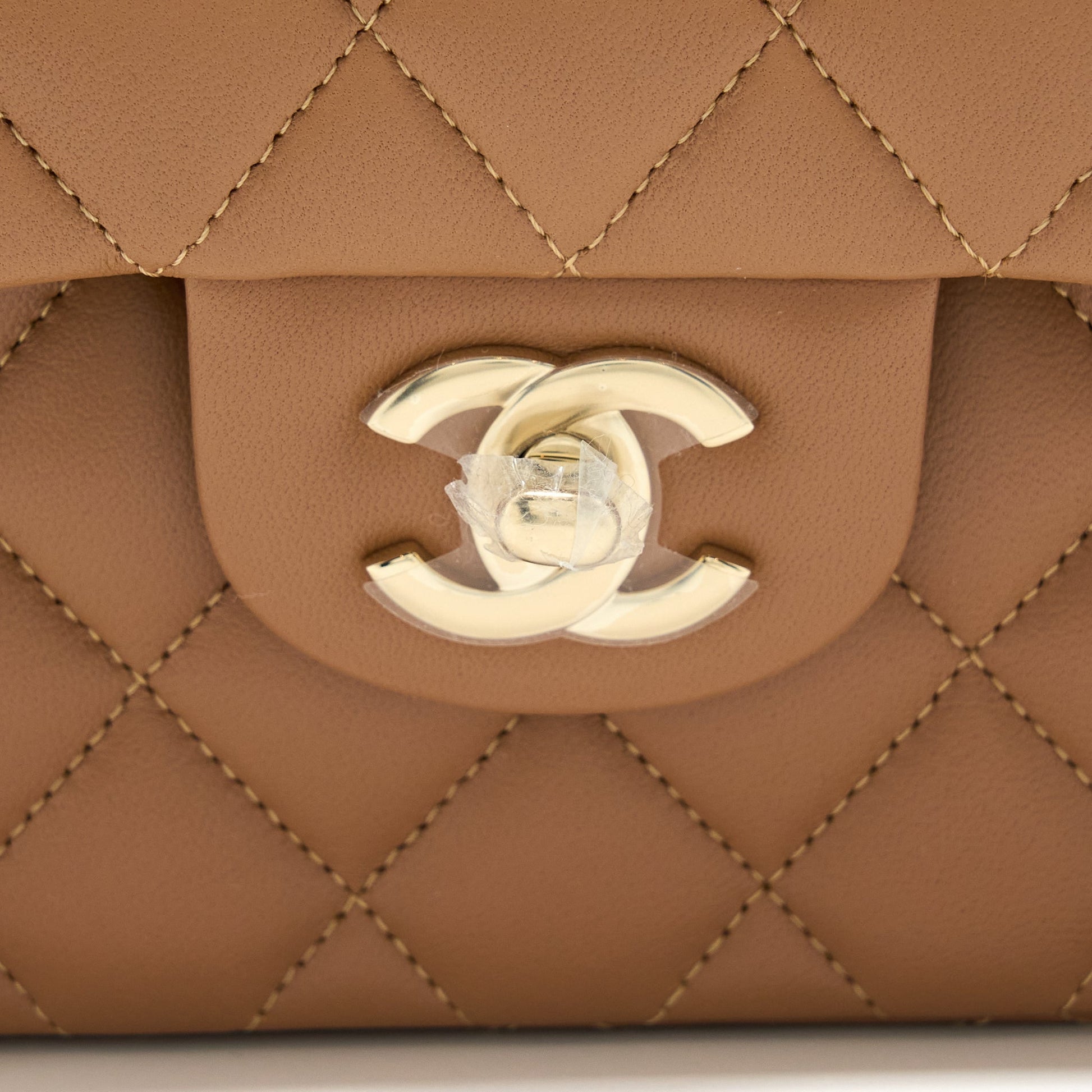 Chanel 22S Small Classic Flap Bag Lambskin Caramel LGHW(Microchip)