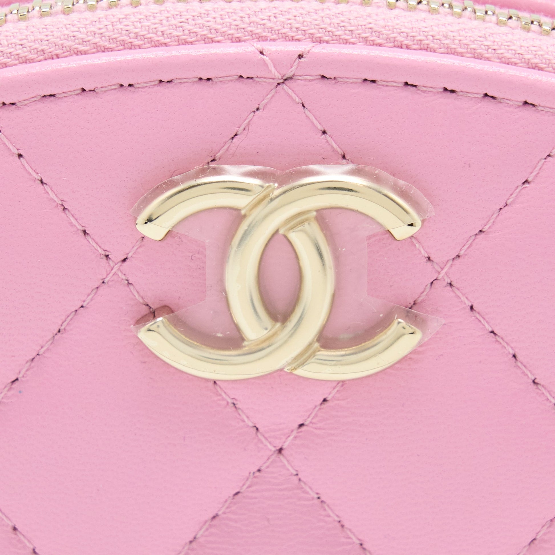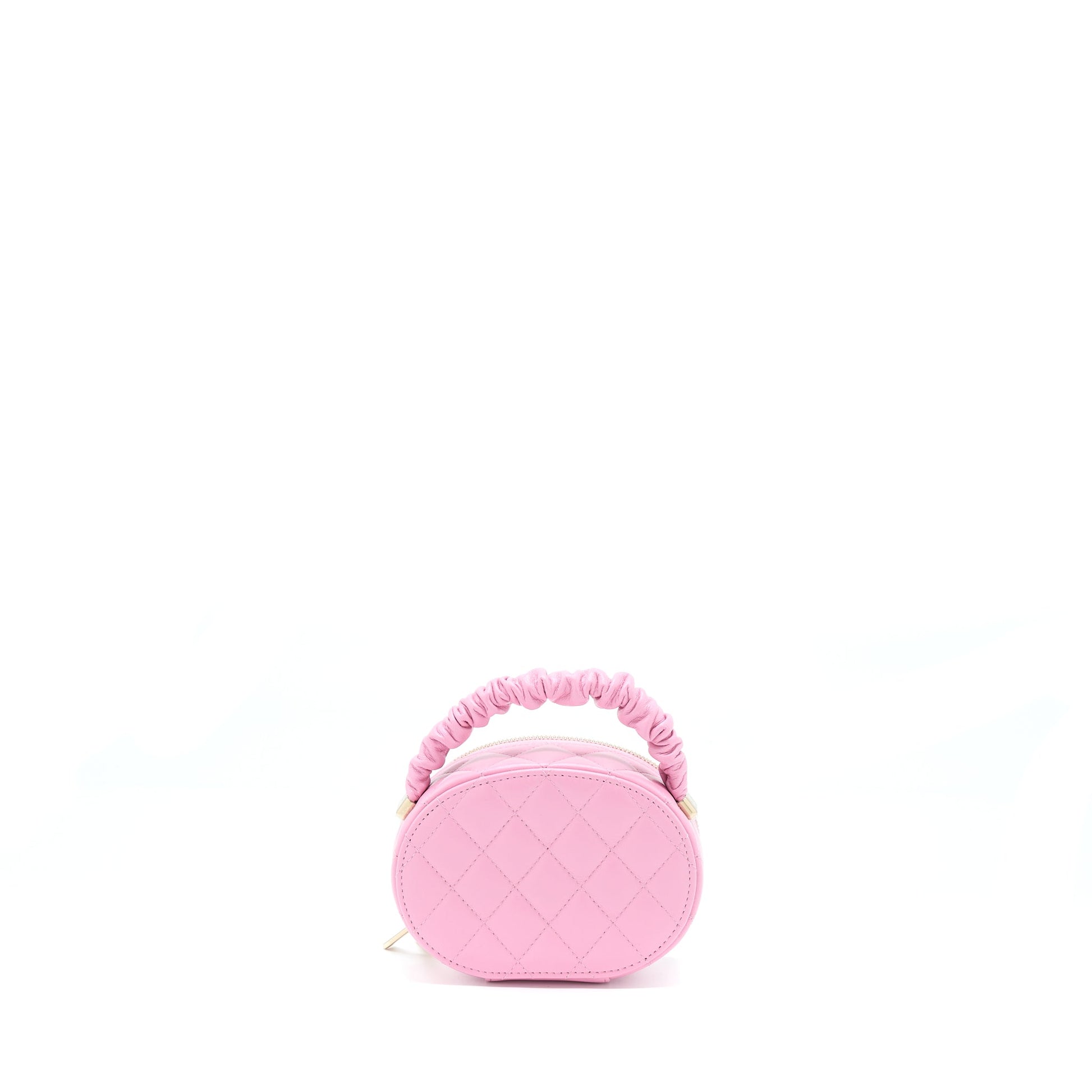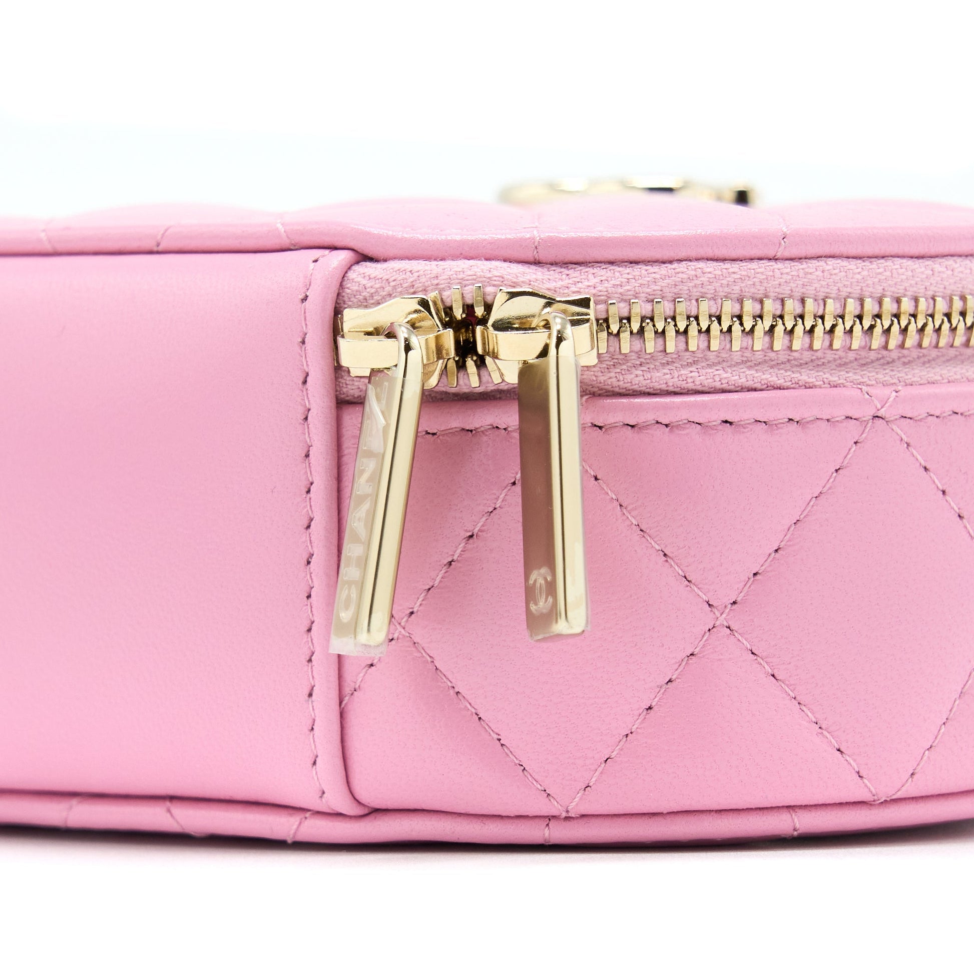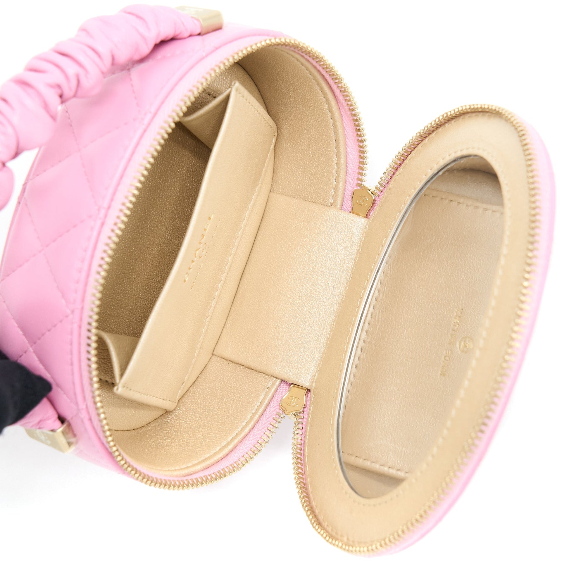 Chanel 22S Top Handle Mini Round Vanity Clutch Lambskin Pink LGHW