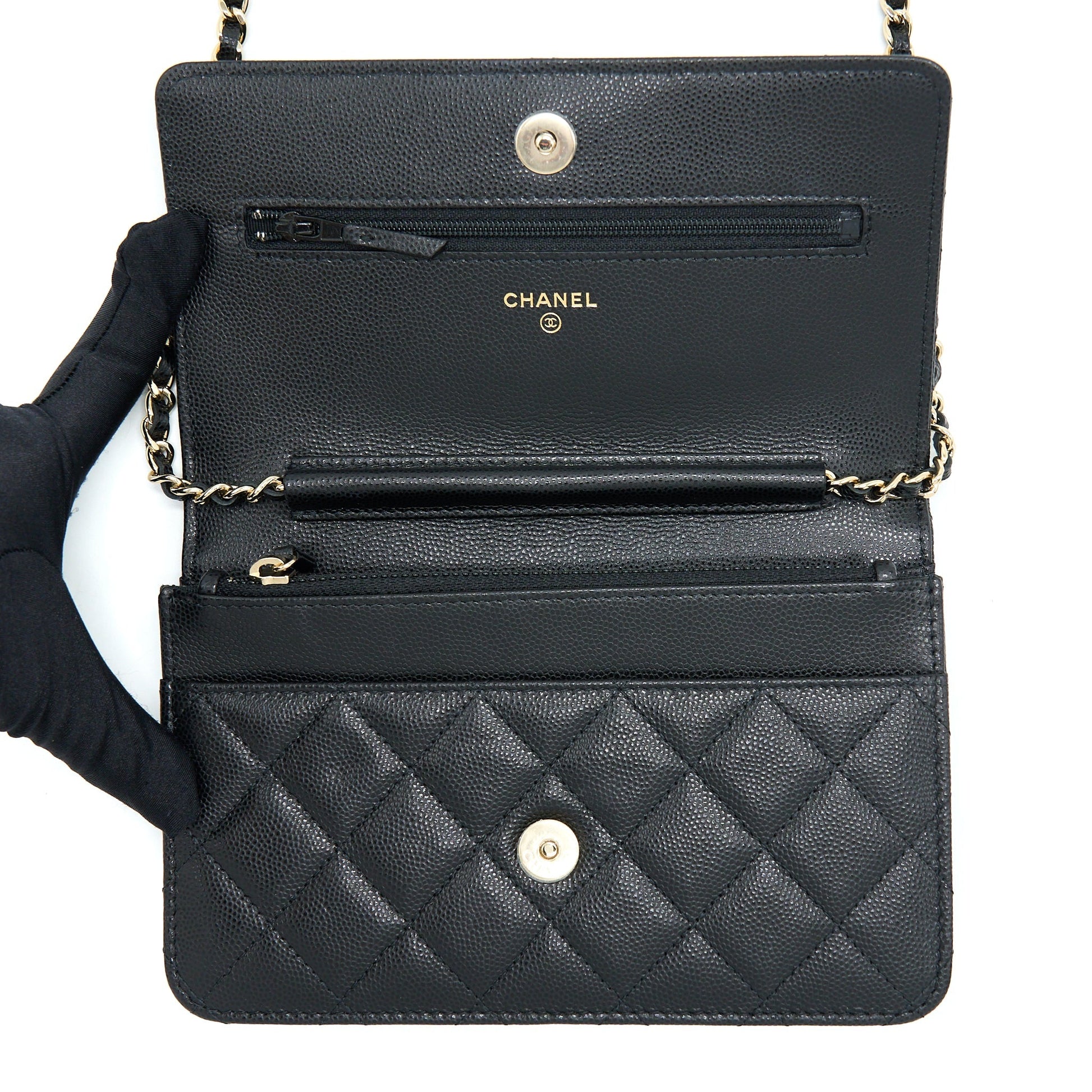 Chanel 22S Wallet On Chains With Detail CC Logo Caviar Black LGHW