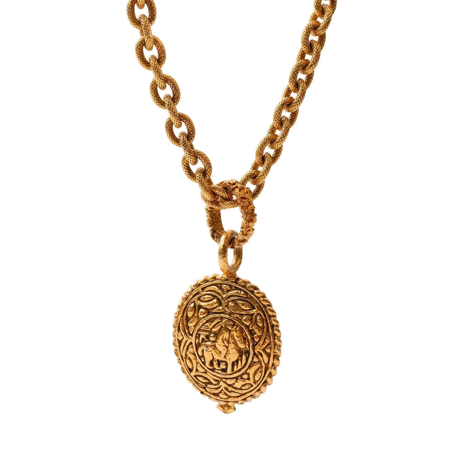 Chanel 24kt Gold Vintage Horse Medallion Necklace