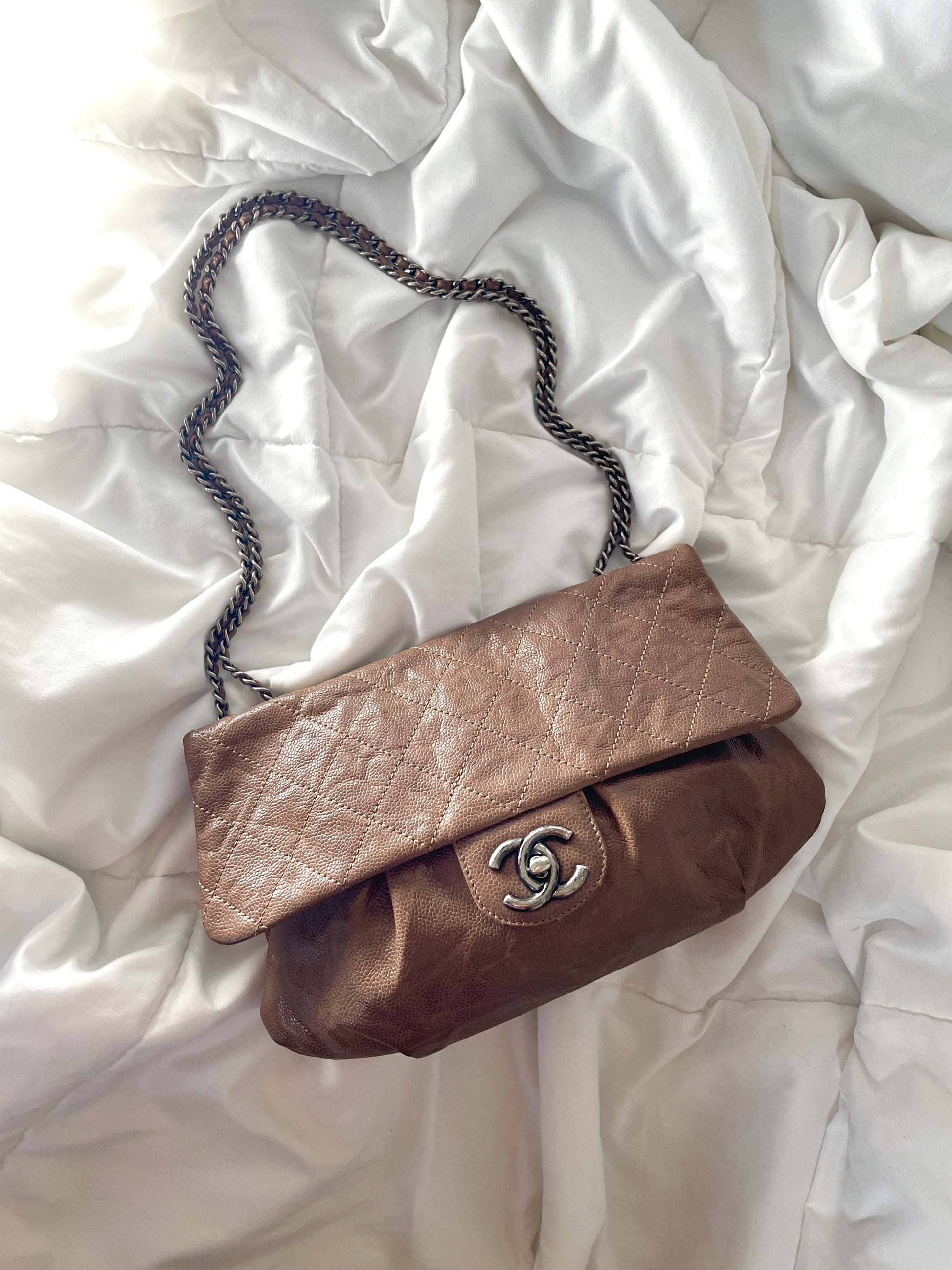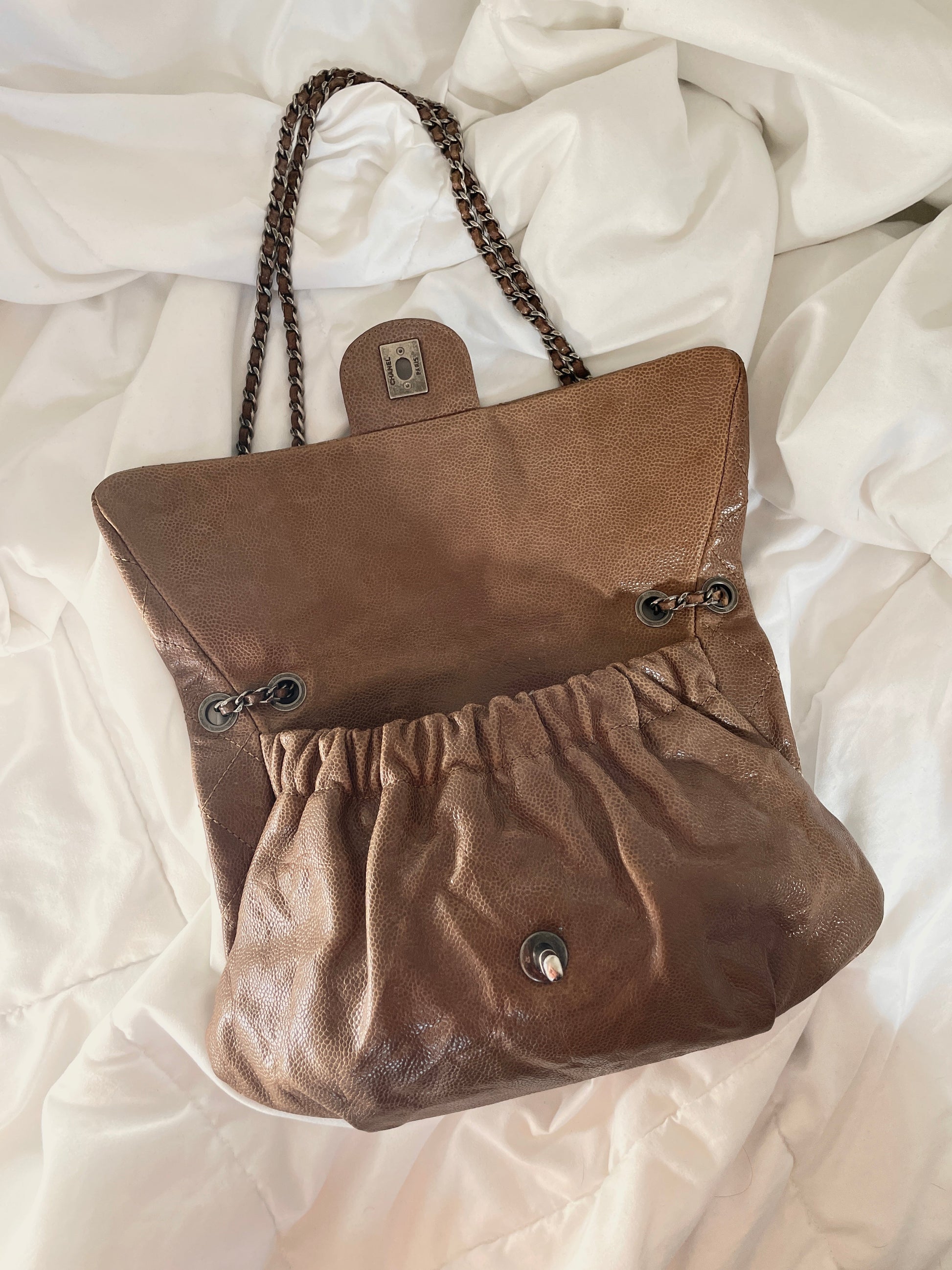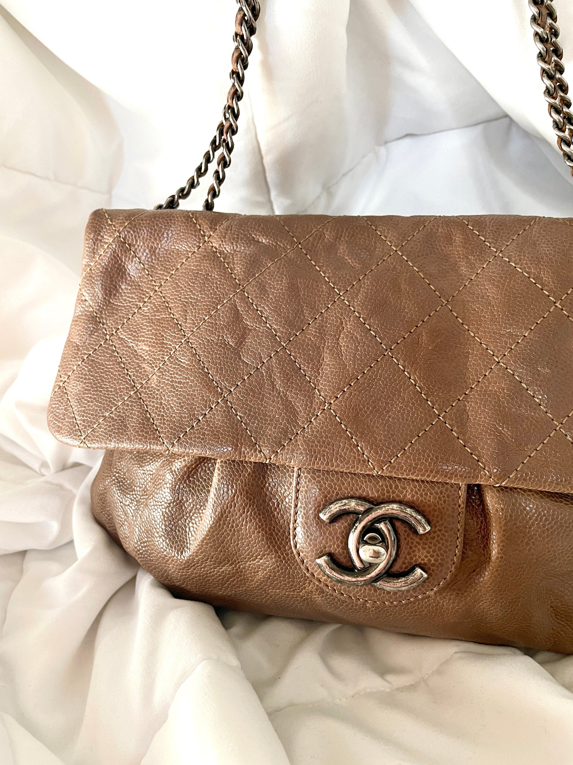 . Bringing to the shop a stunning, Chanel caviar bag in a gorgeous??taupe color and gunmetal turnlock hardware. Versatile piece can be as a crossbody or a shoulder bag.??