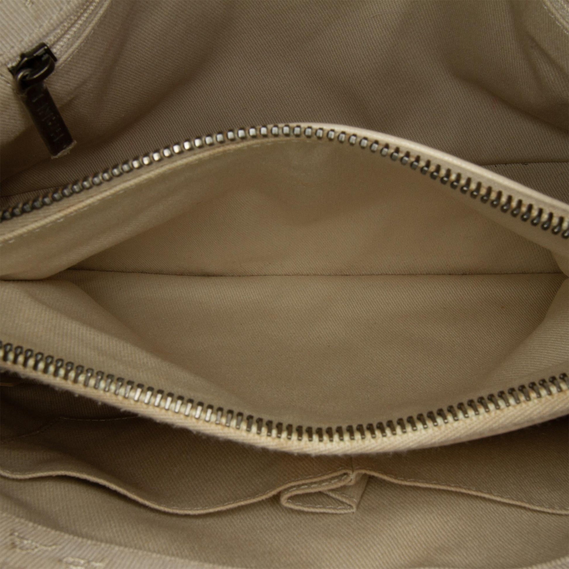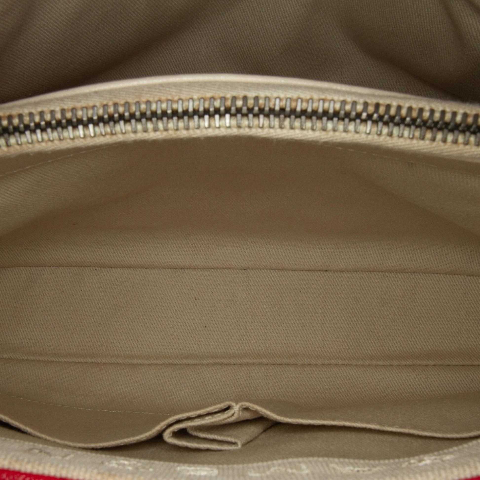 Condition Notes: Exterior Front Discolored. Exterior Back Discolored. Exterior Bottom Discolored, Out Of Shape. Exterior Handle Discolored. Interior Lining Discolored. Interior Pocket Discolored. Embellishment Scratched. Practical Attachment Scratched.