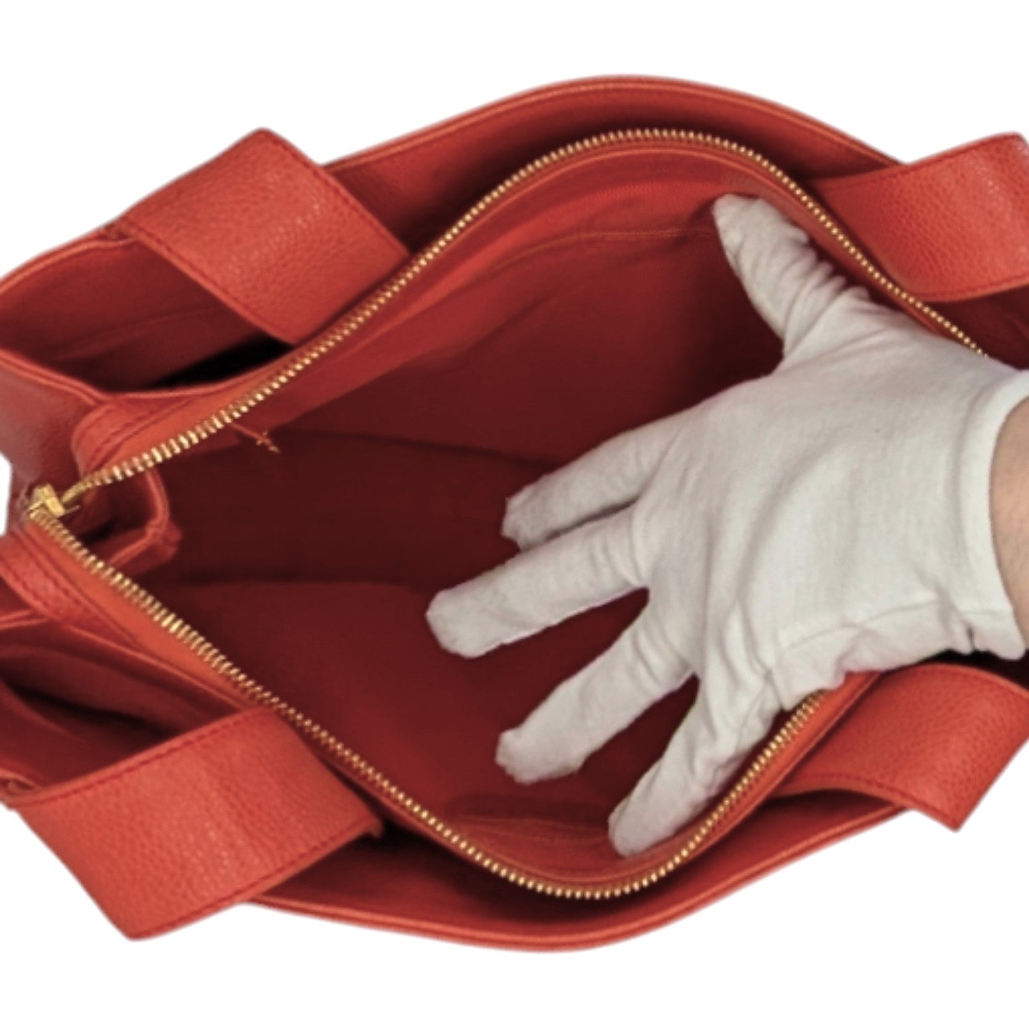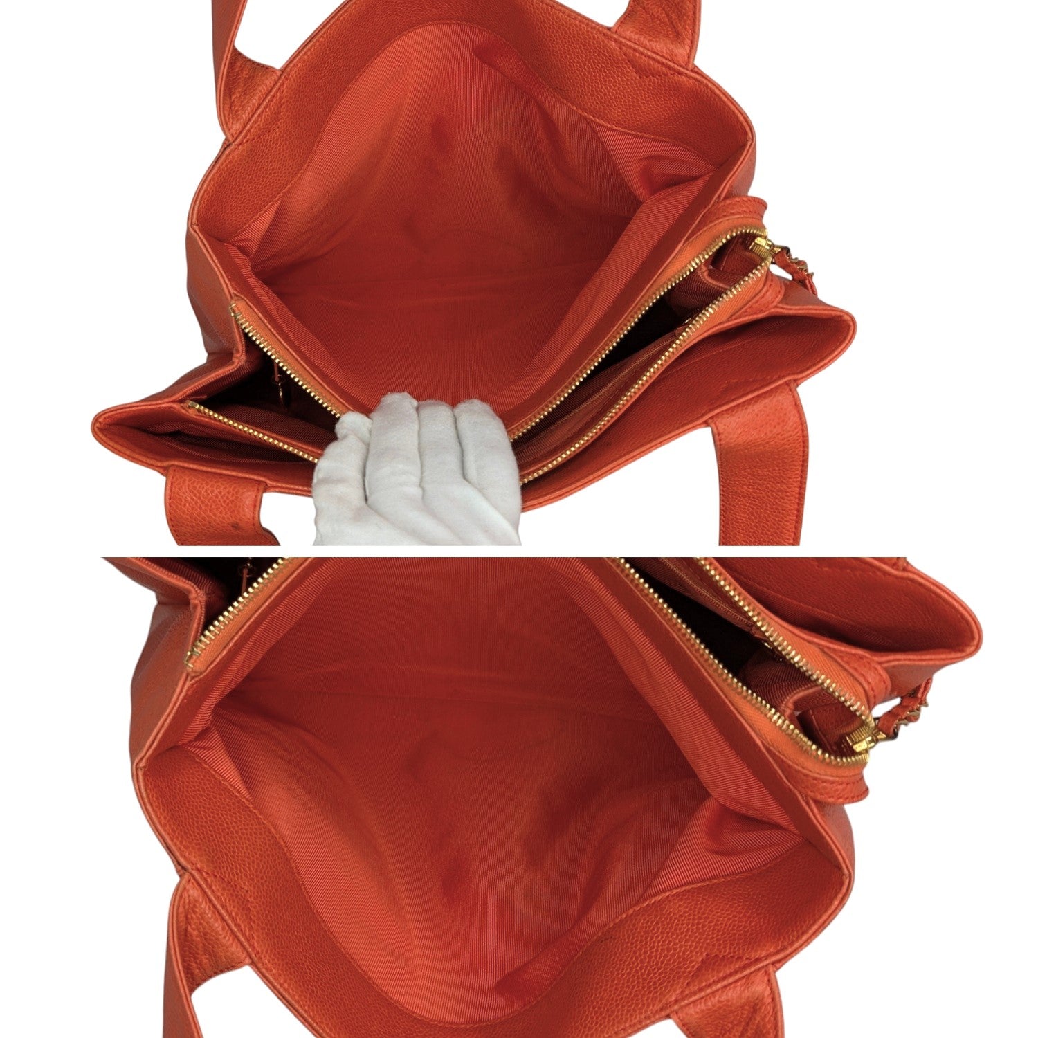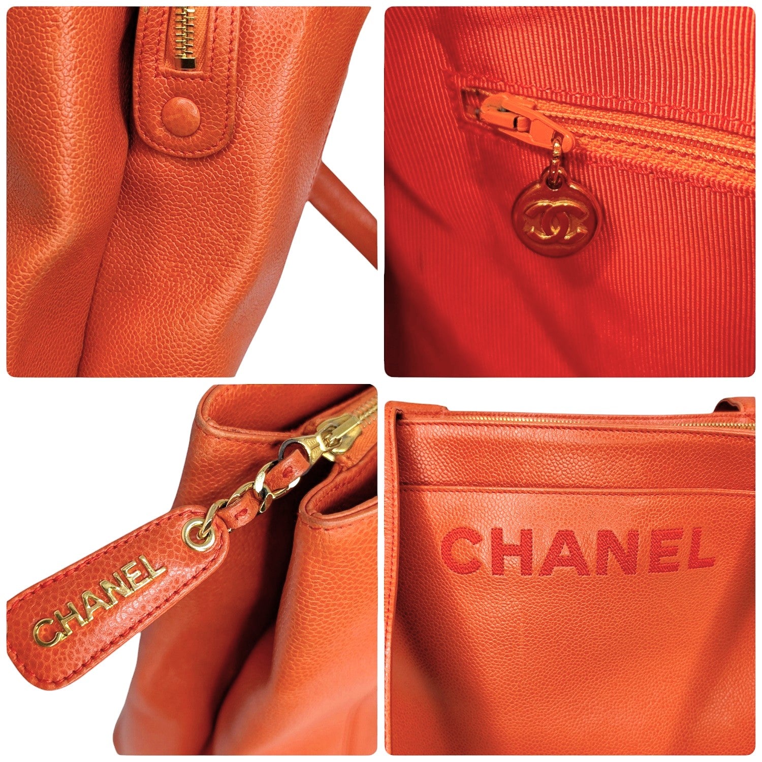 Chanel 90s Orange Caviar Embroidered Logo Shopper Tote