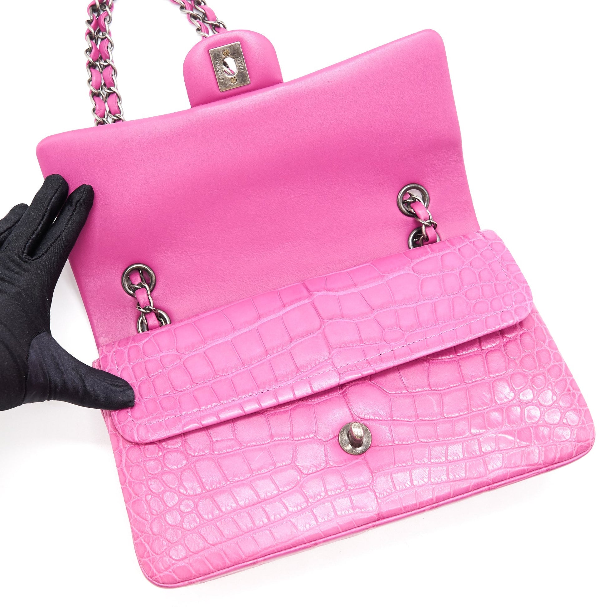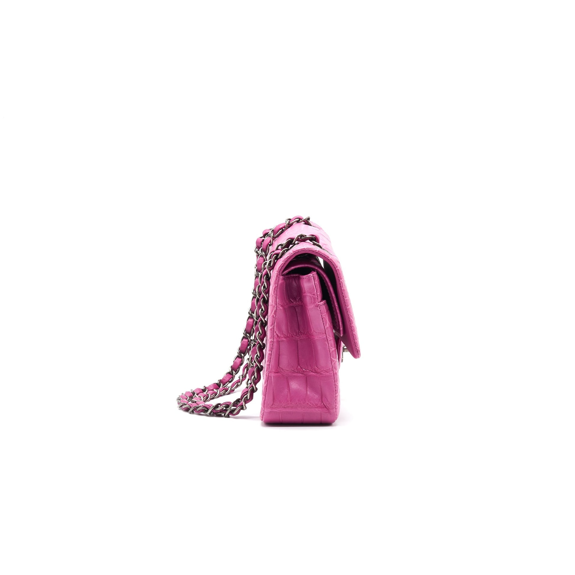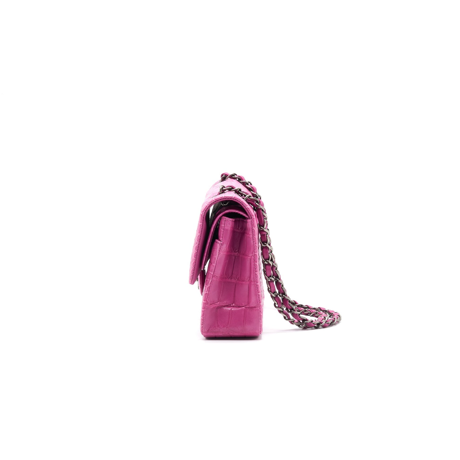 Chanel Alligator Medium Classic Double Flap Bag Pink SHW