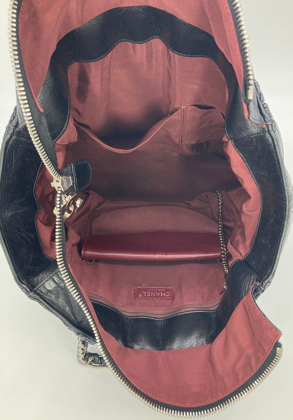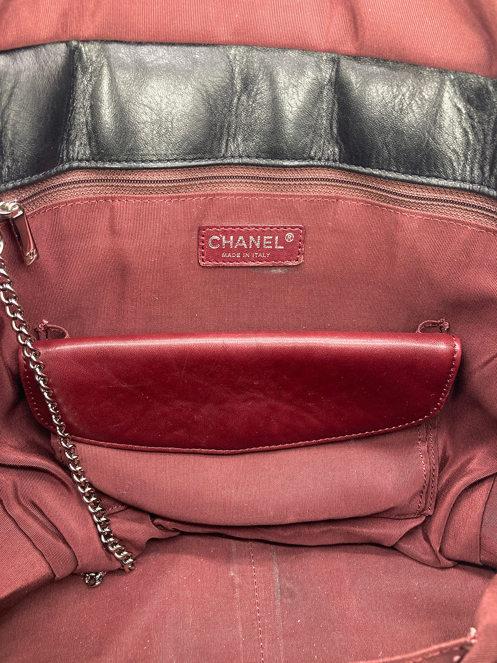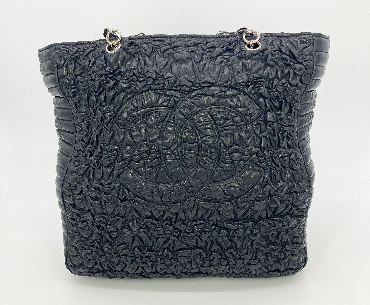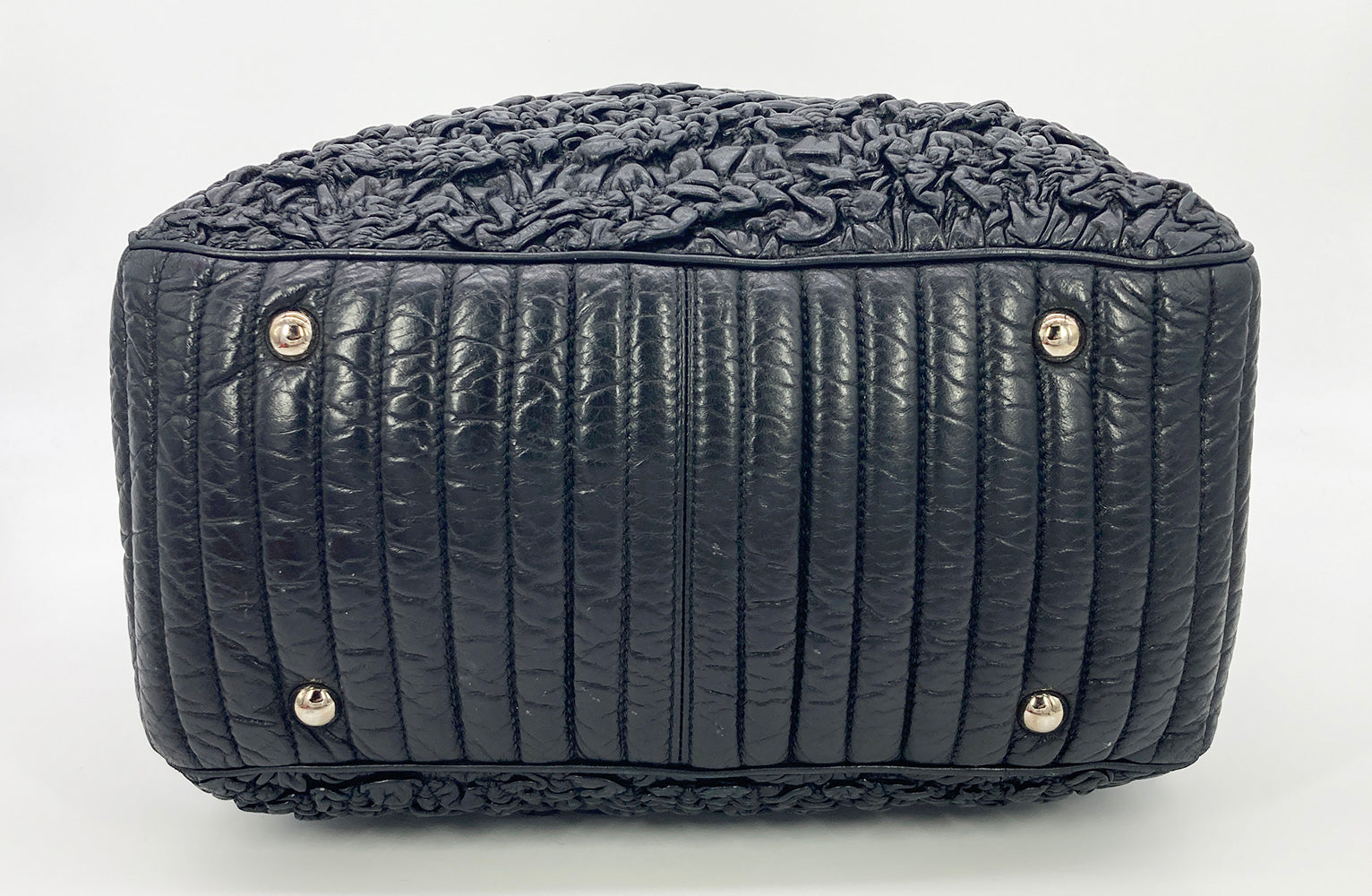 Chanel Astrakhan Black Leather Ruched Shopping Tote