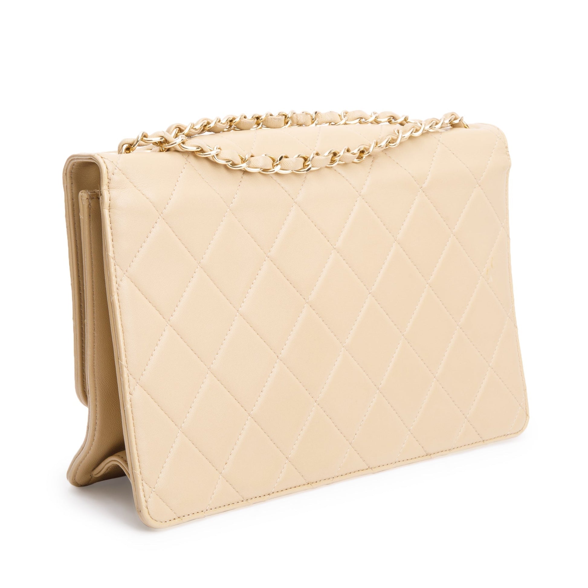 Chanel Beige Lambskin Leather Large Golden Class Flap Bag