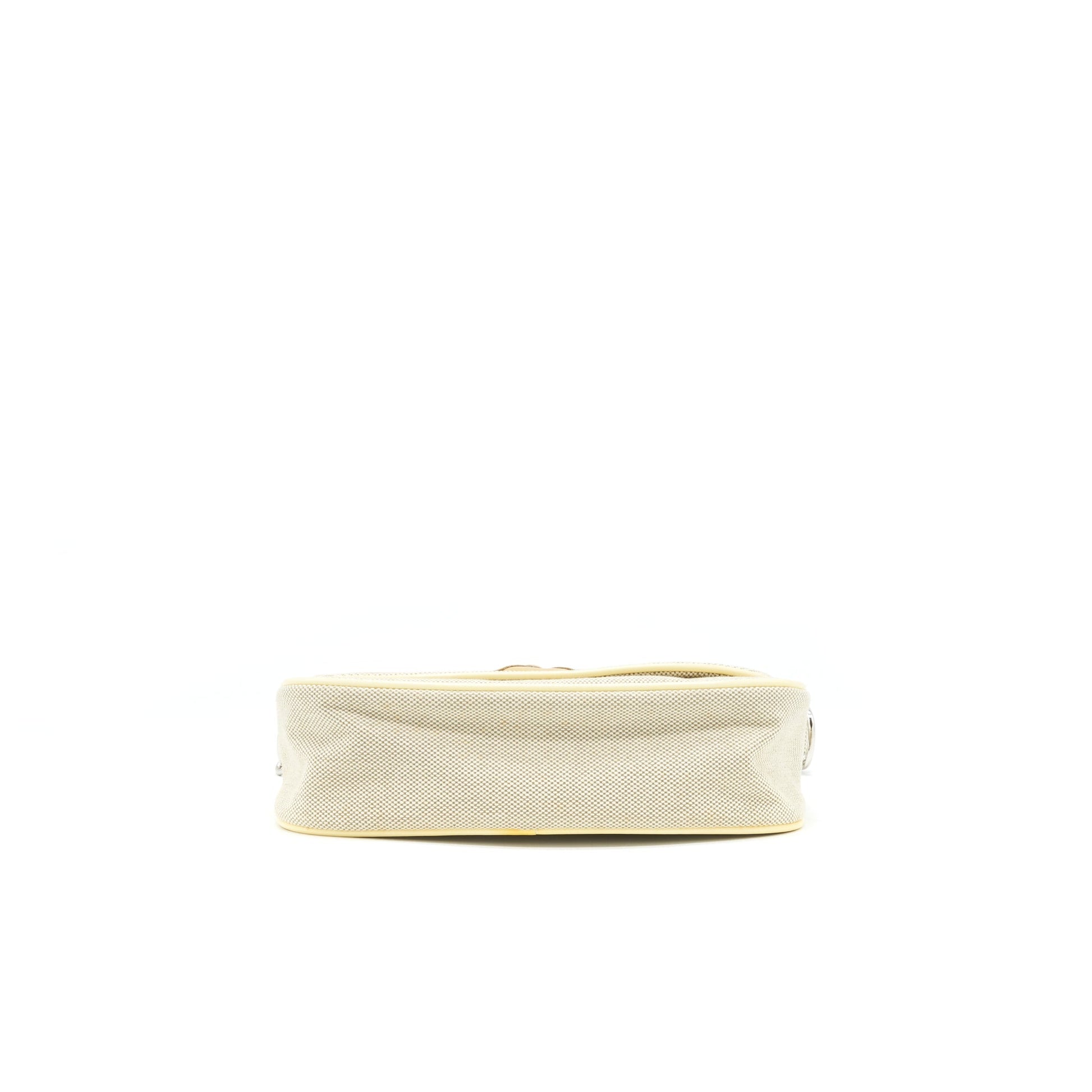 Chanel Beige Quilted Canvas No.5 Camellia Flap creamy Shoulder Bag