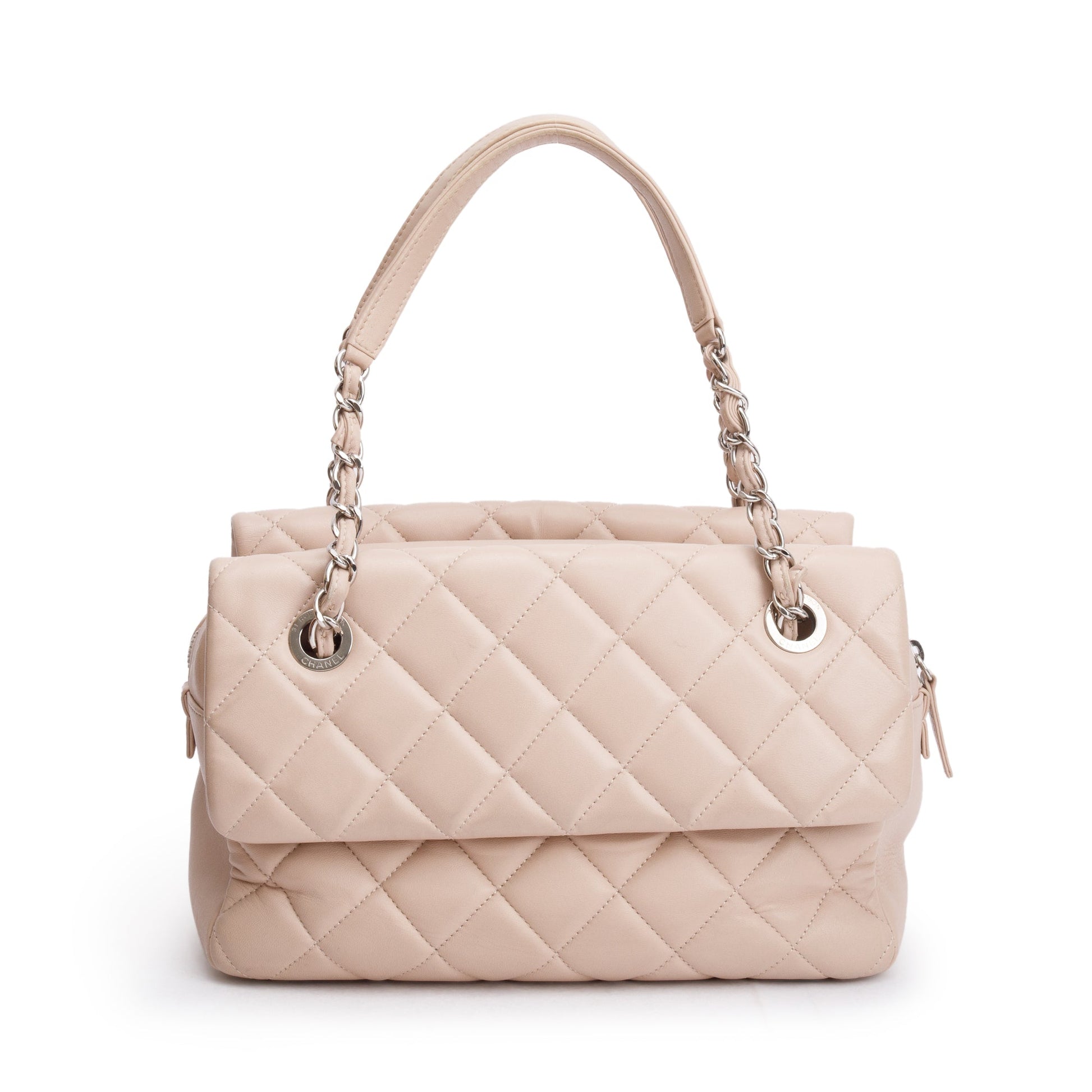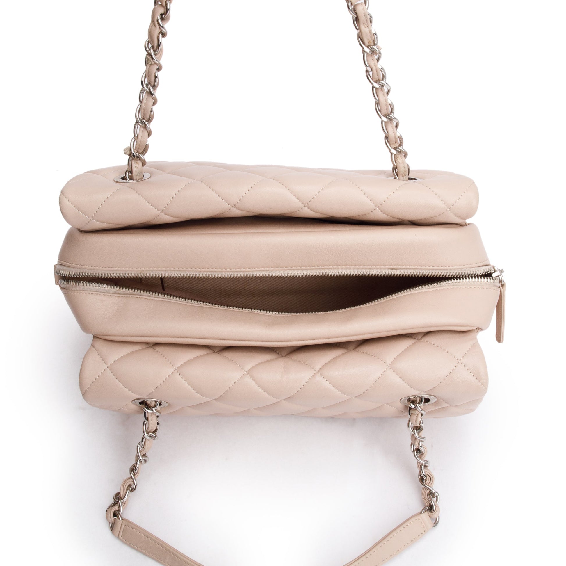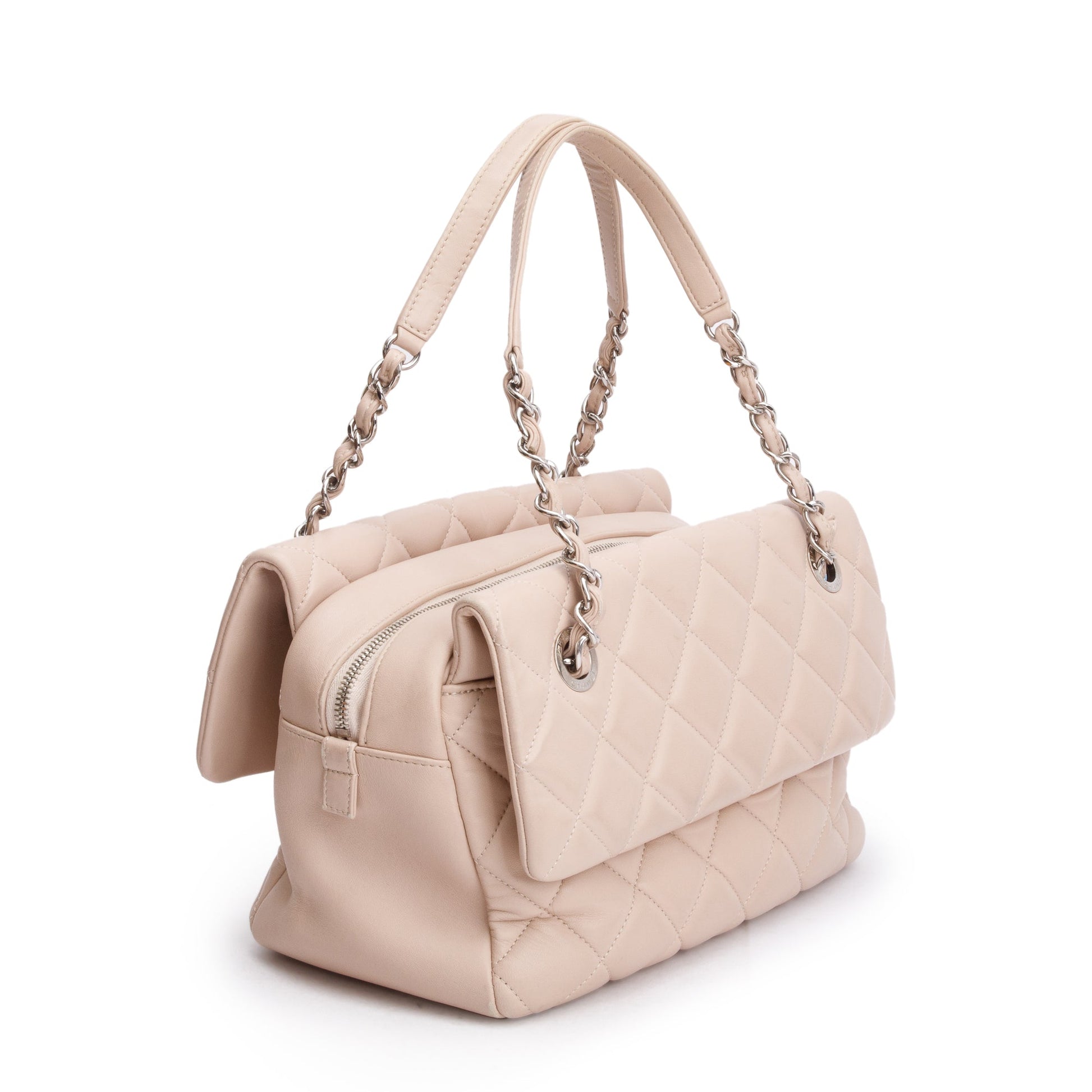 Chanel Beige Quilted Lambskin Leather Double Sided Flap Zip Shoulder Bag