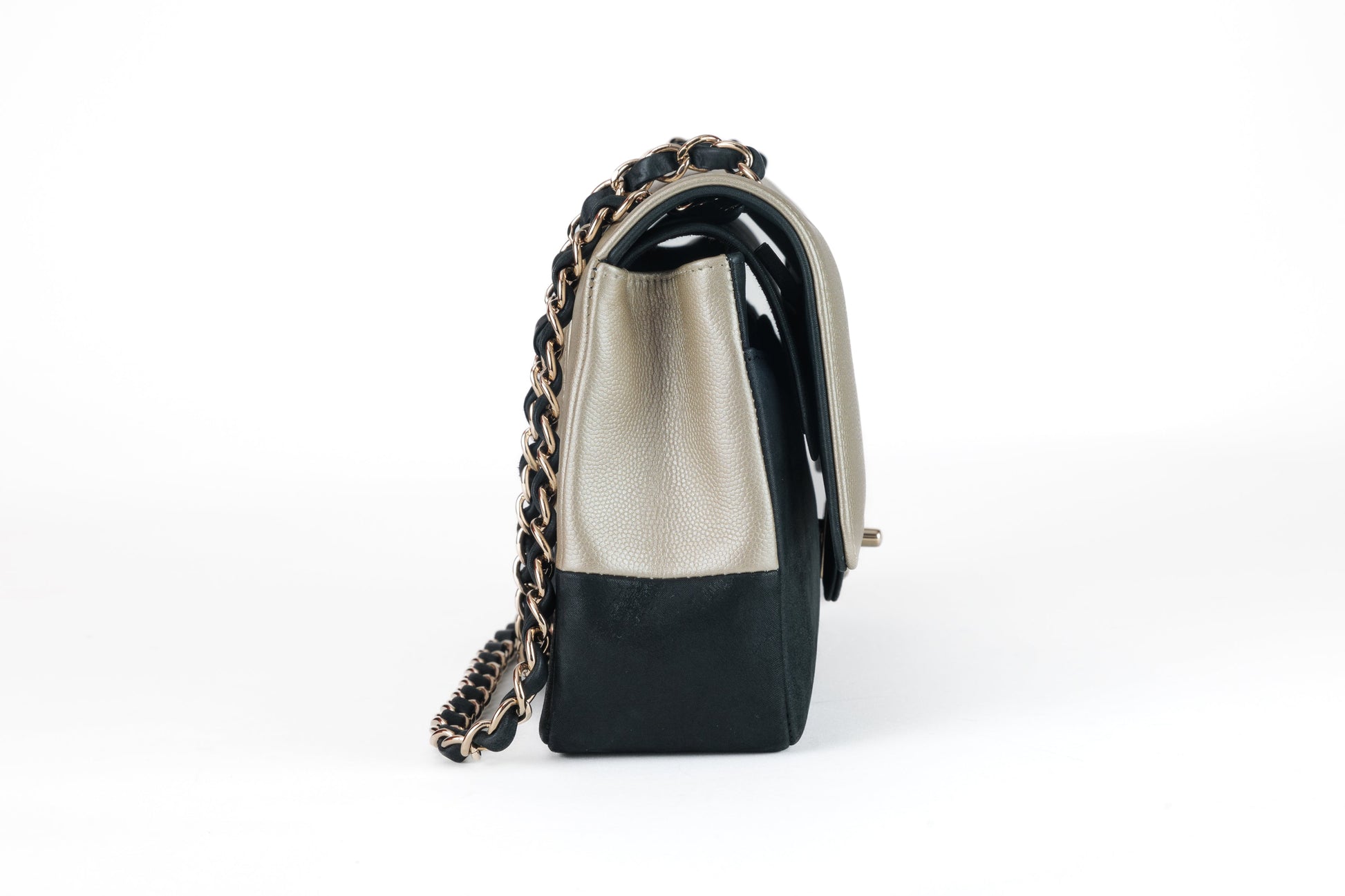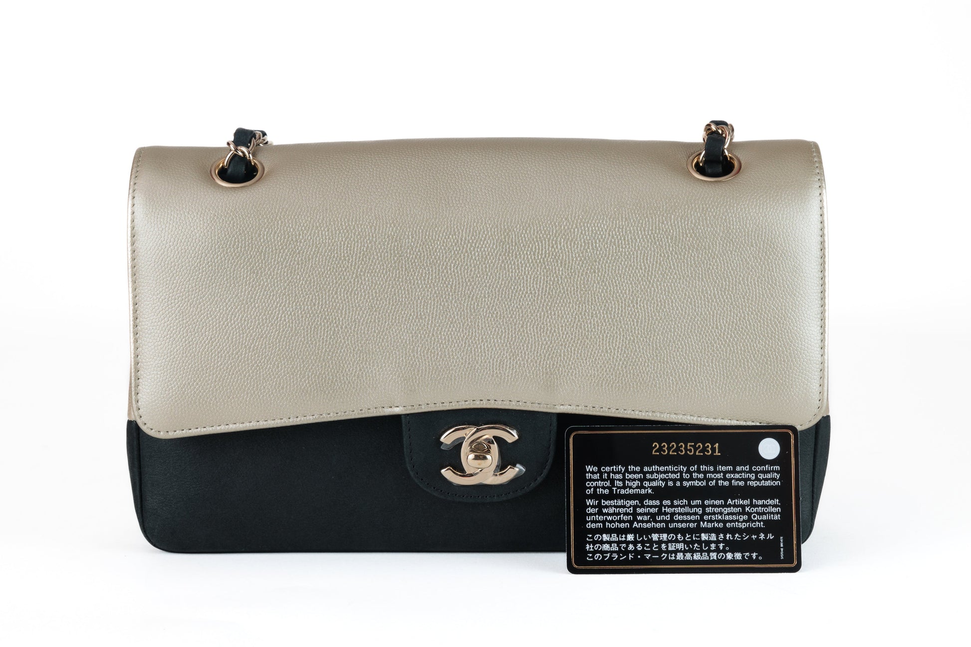 Chanel Black and Gold Bi Color Caviar Medium Classic with Gold Hardware