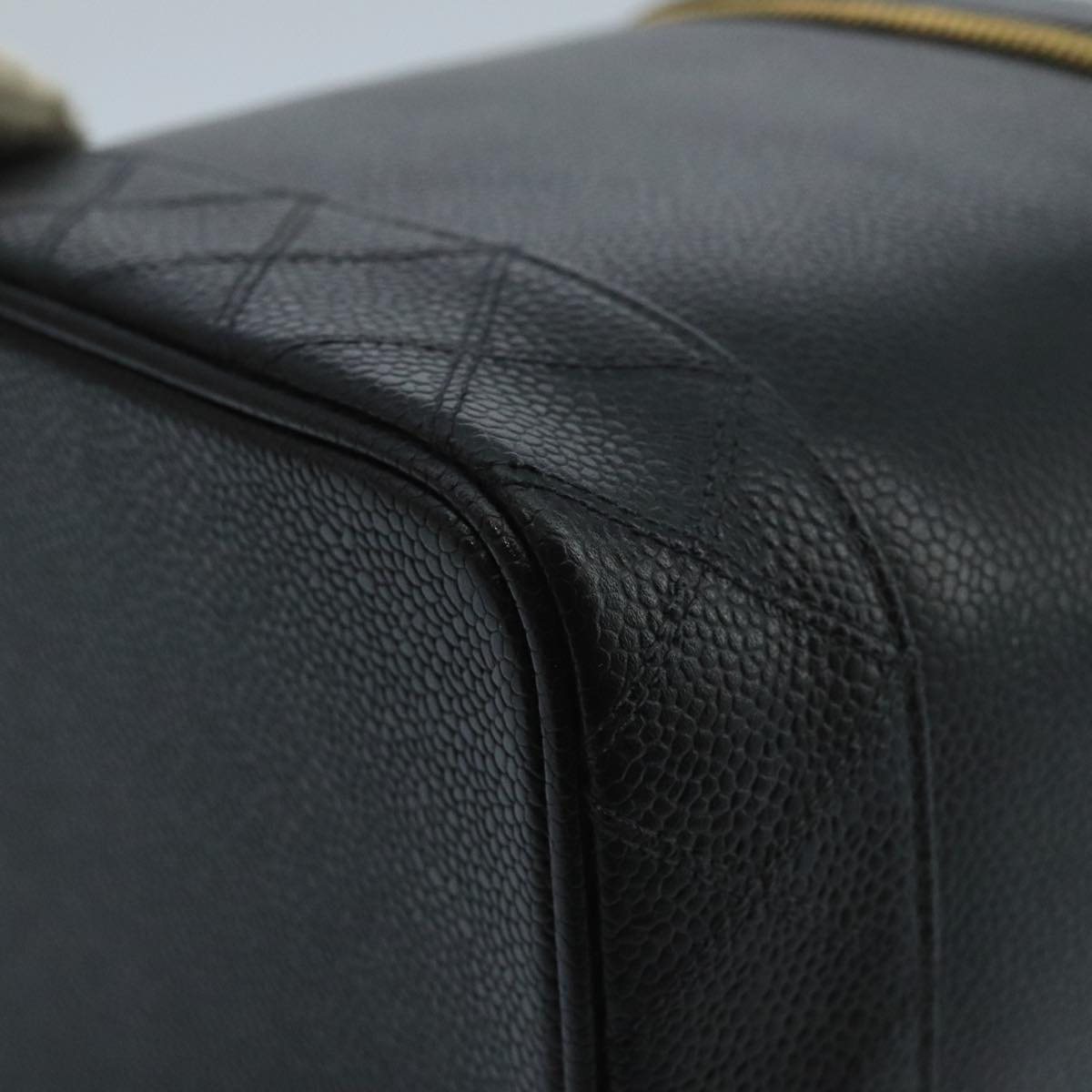 CHANEL Bicolore Vanity Cosmetic Pouch Caviar Skin Black Gold CC fm4192