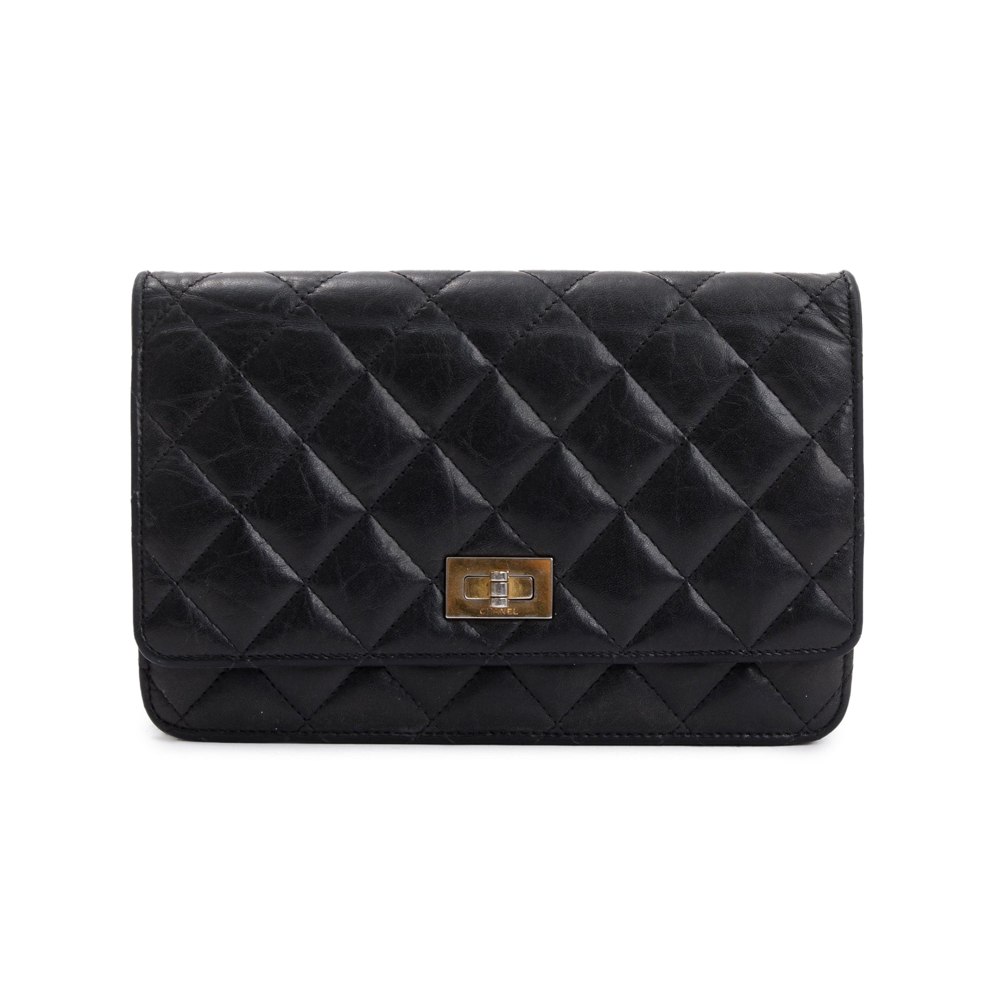 Chanel Black Aged Calfskin Leather Reissue Wallet on Chain w/ Box, Receipt & Authenticity Card