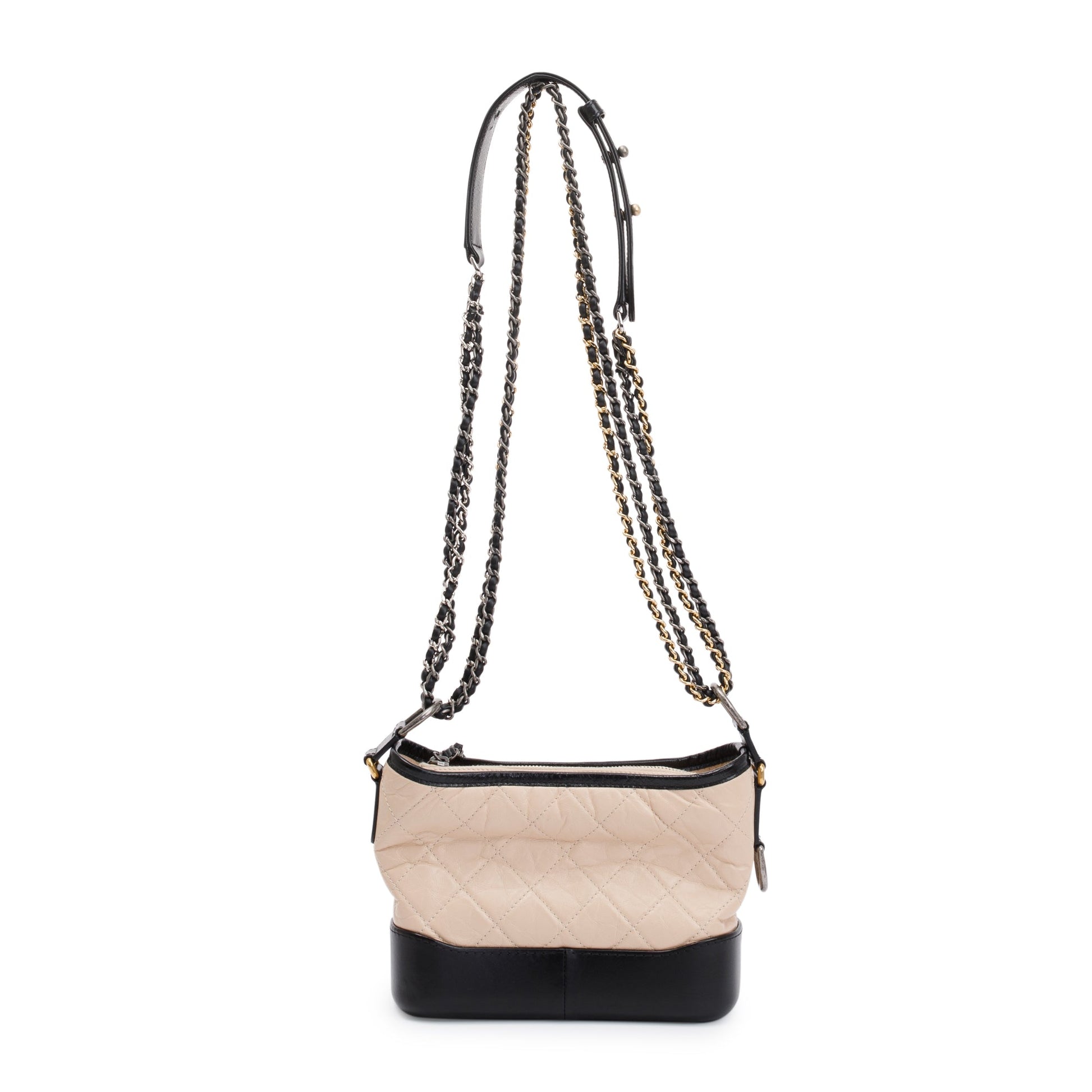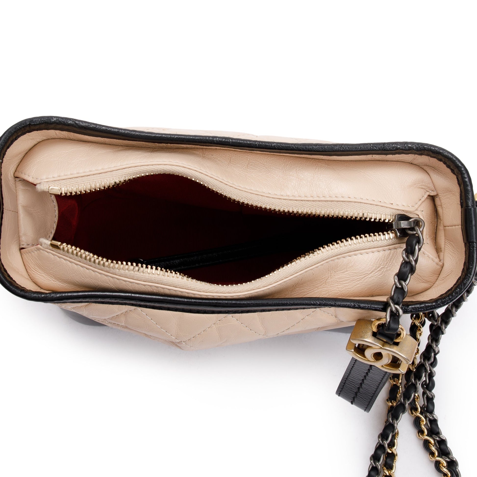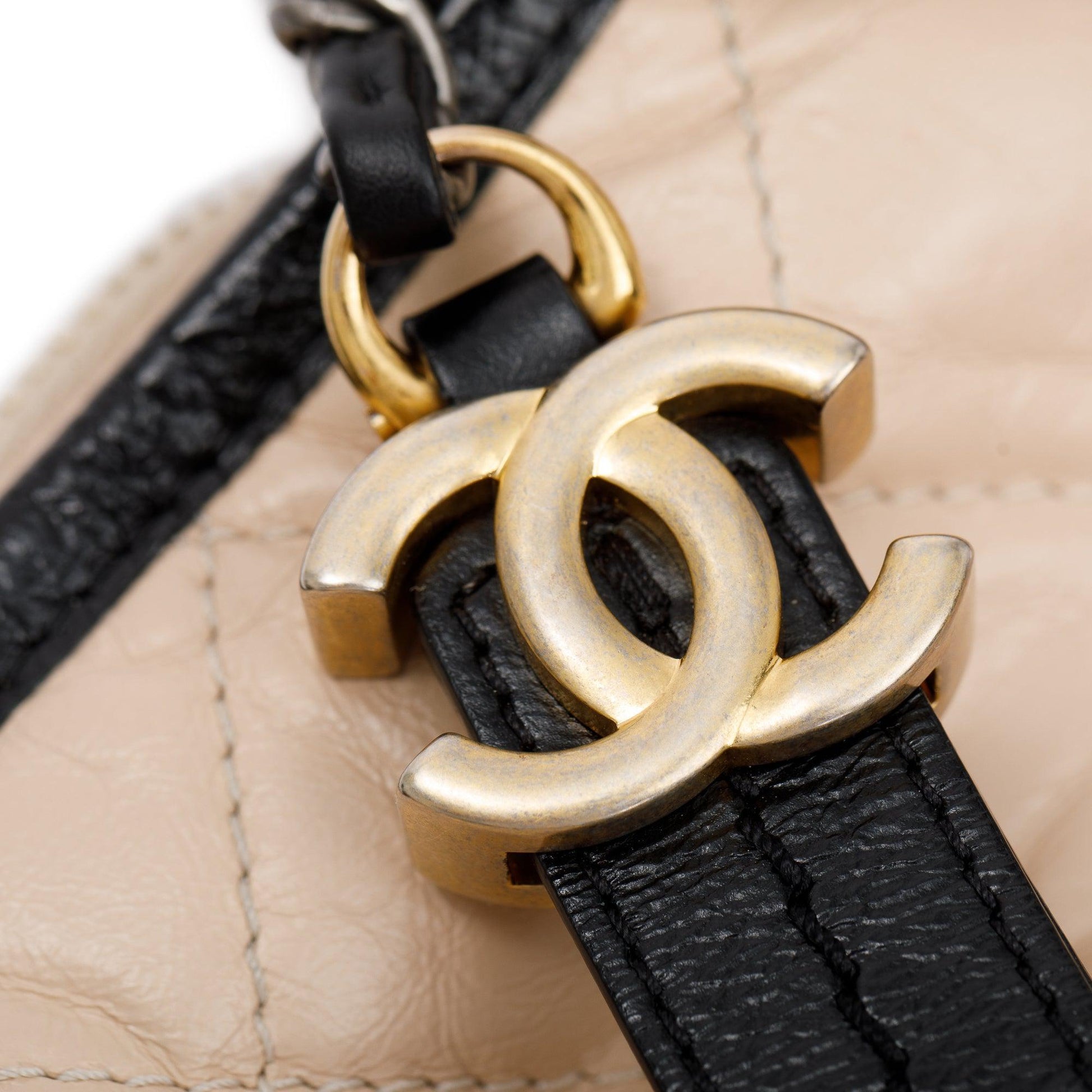 Chanel Black & Beige Aged Calfskin Leather Small Gabrielle Hobo