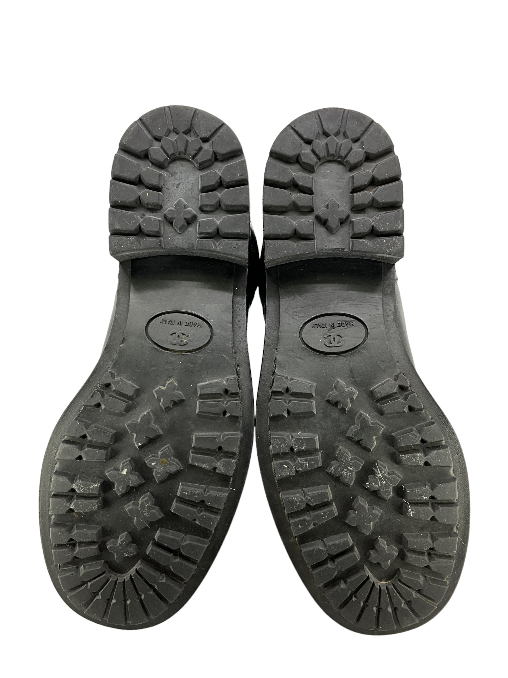 CHANEL Black Calfskin Quilted CC Boots Size 8.5