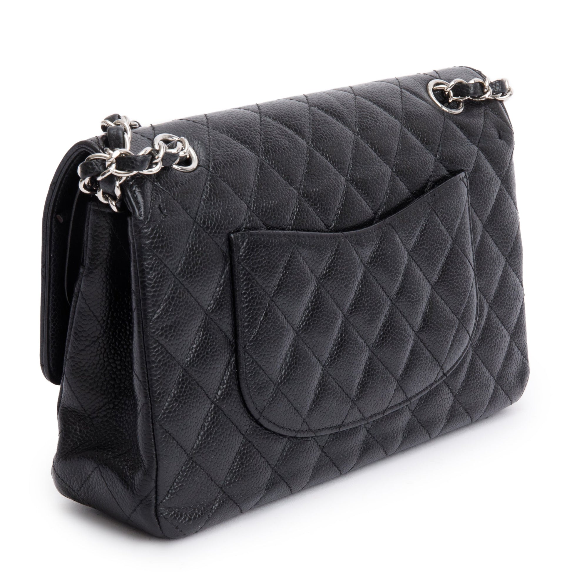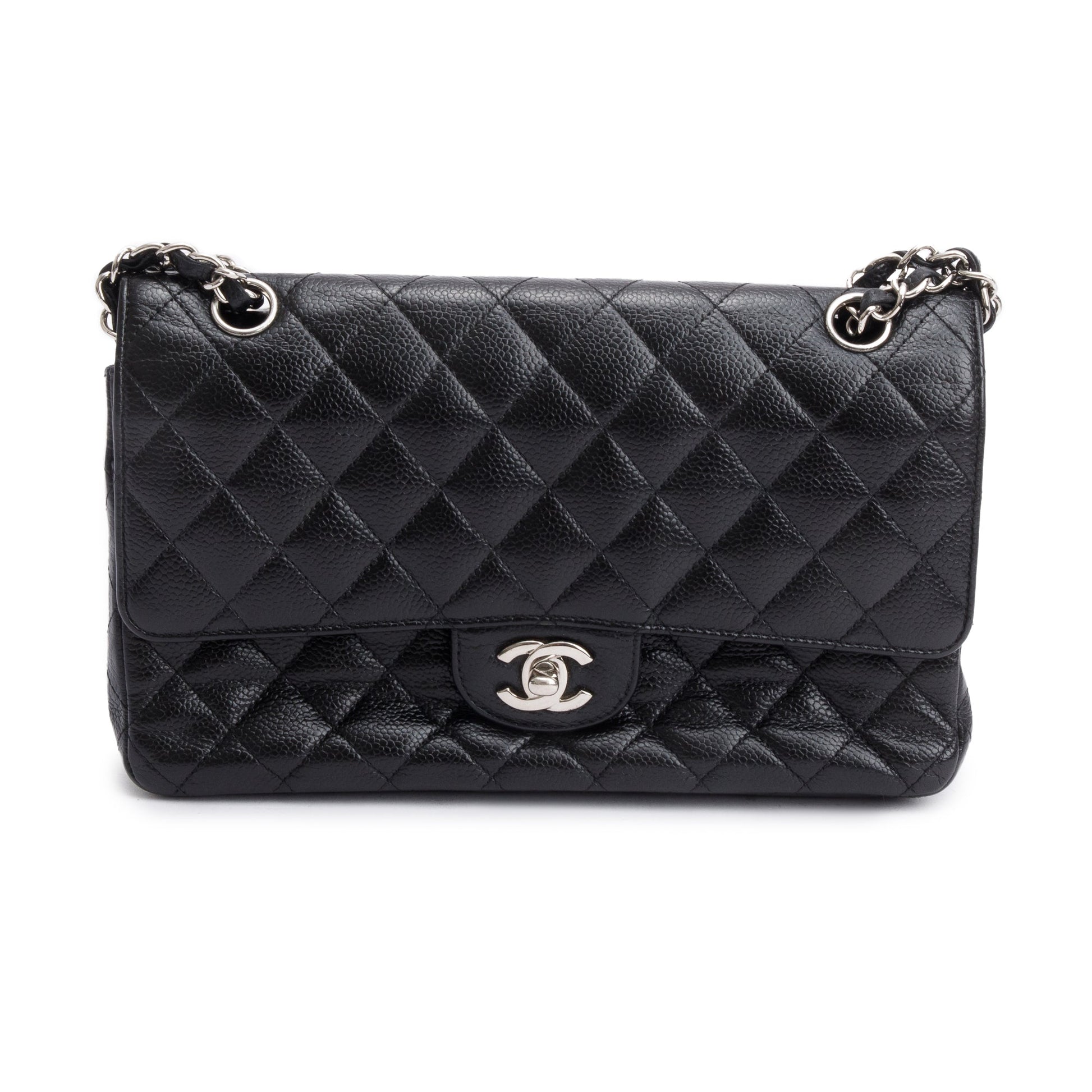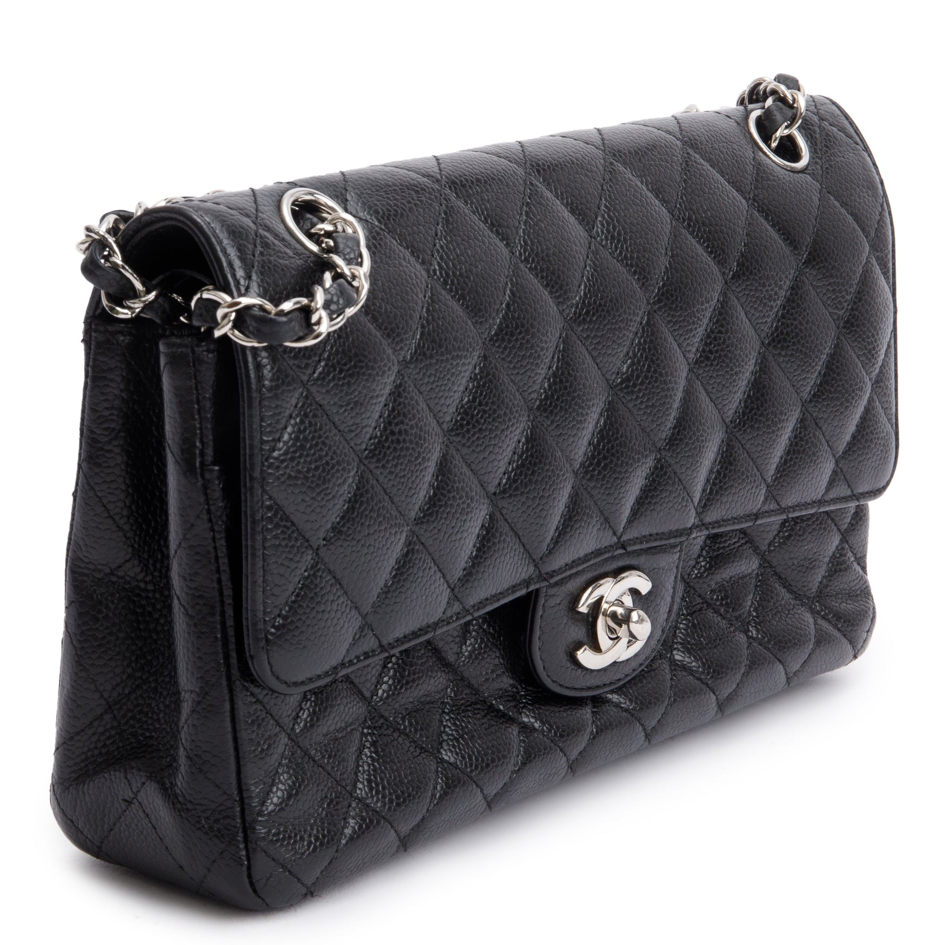 Chanel Black Quilted Caviar Leather Classic Medium Double Flap Bag w/ Box