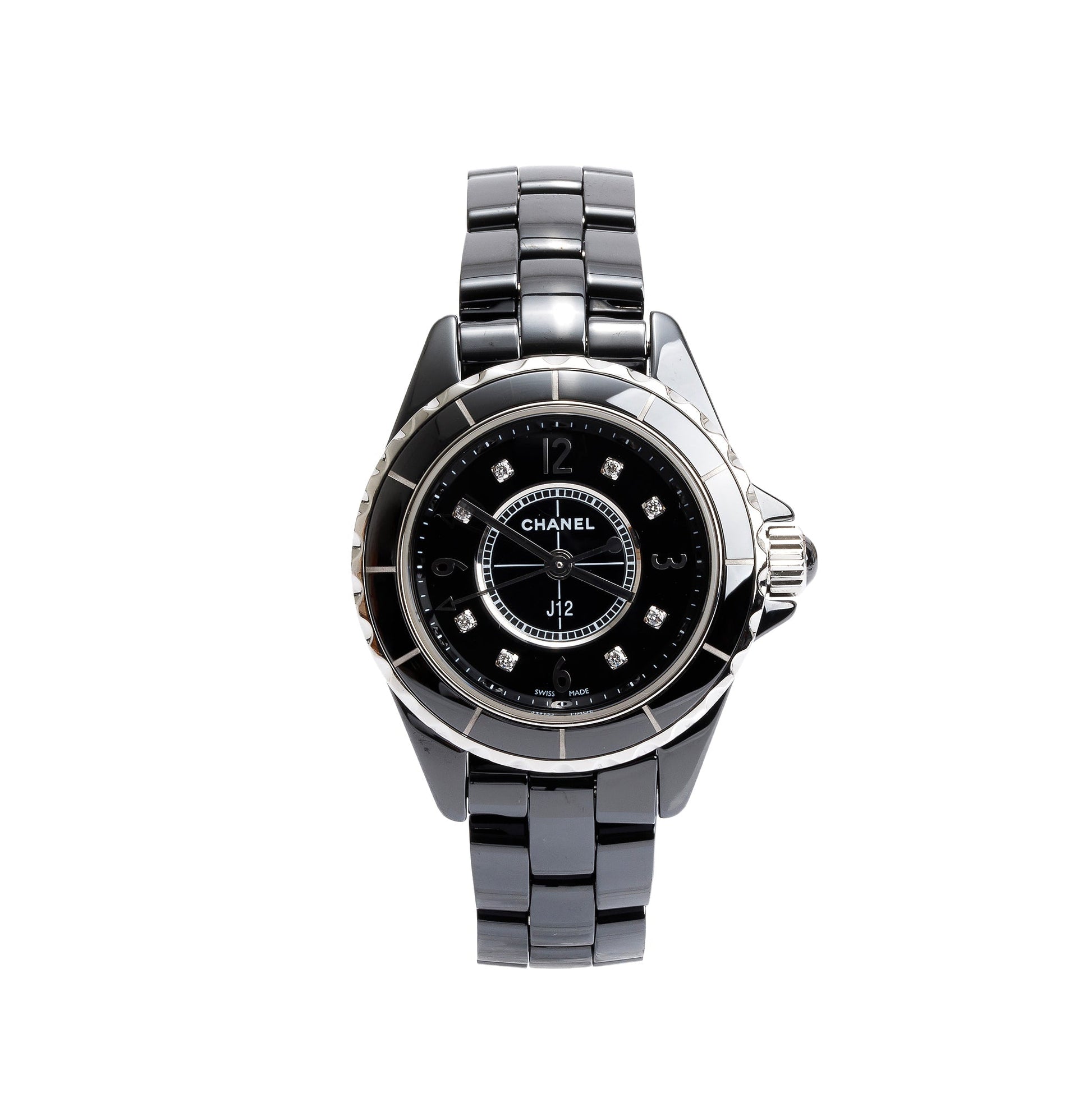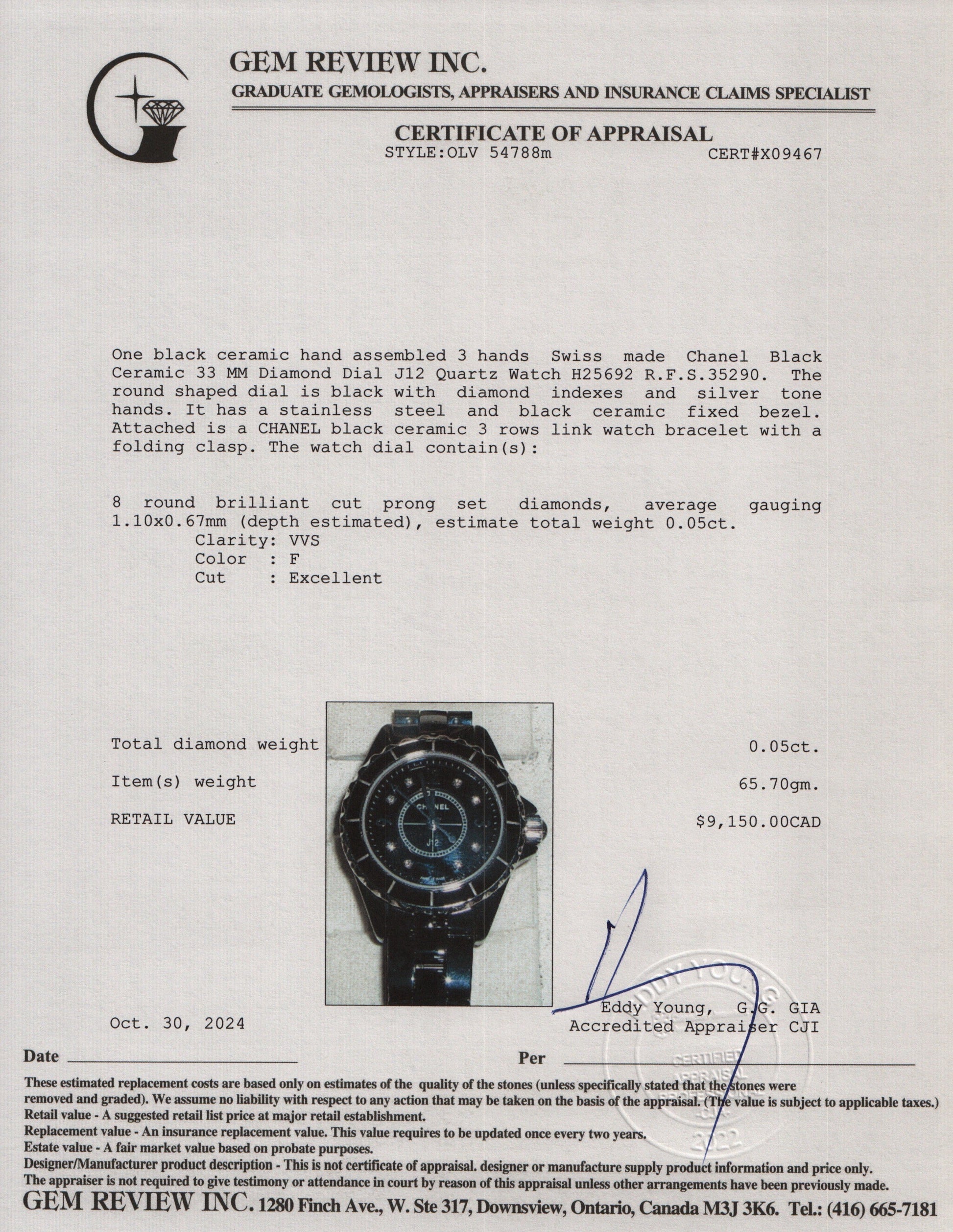 Chanel Black Ceramic 33 MM Diamond Dial J12 Quartz Watch H2569