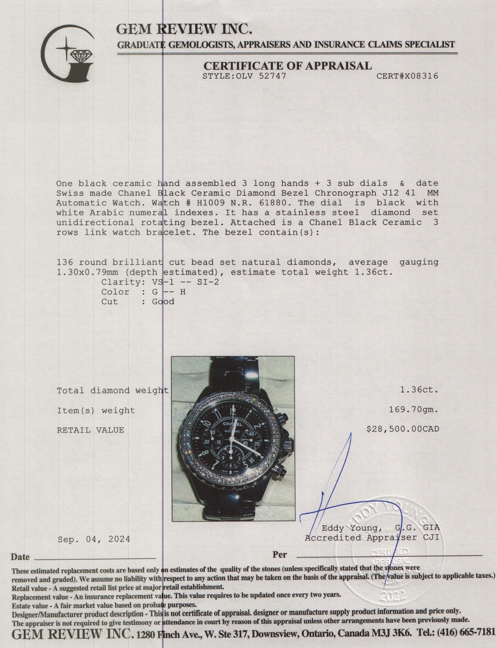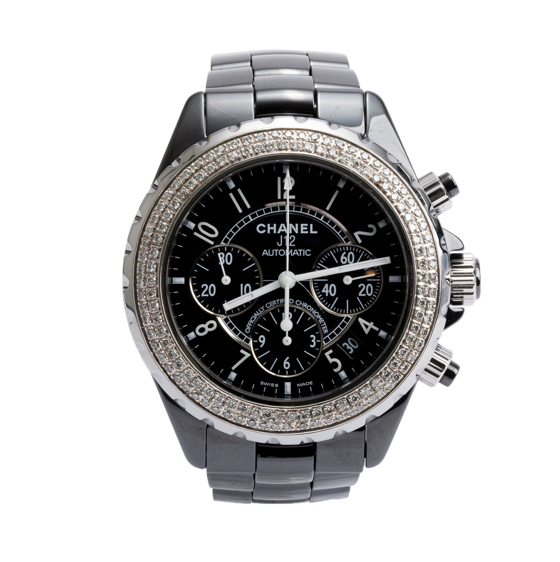 Chanel Black Ceramic Diamond Bezel Chronograph J12 41 MM Automatic Watch