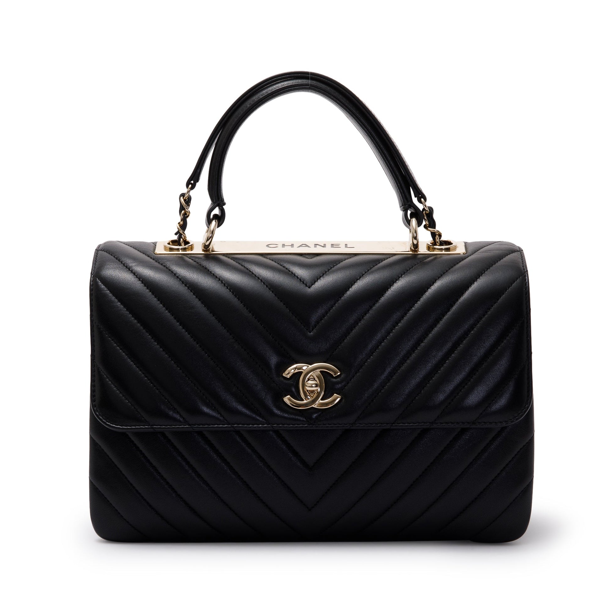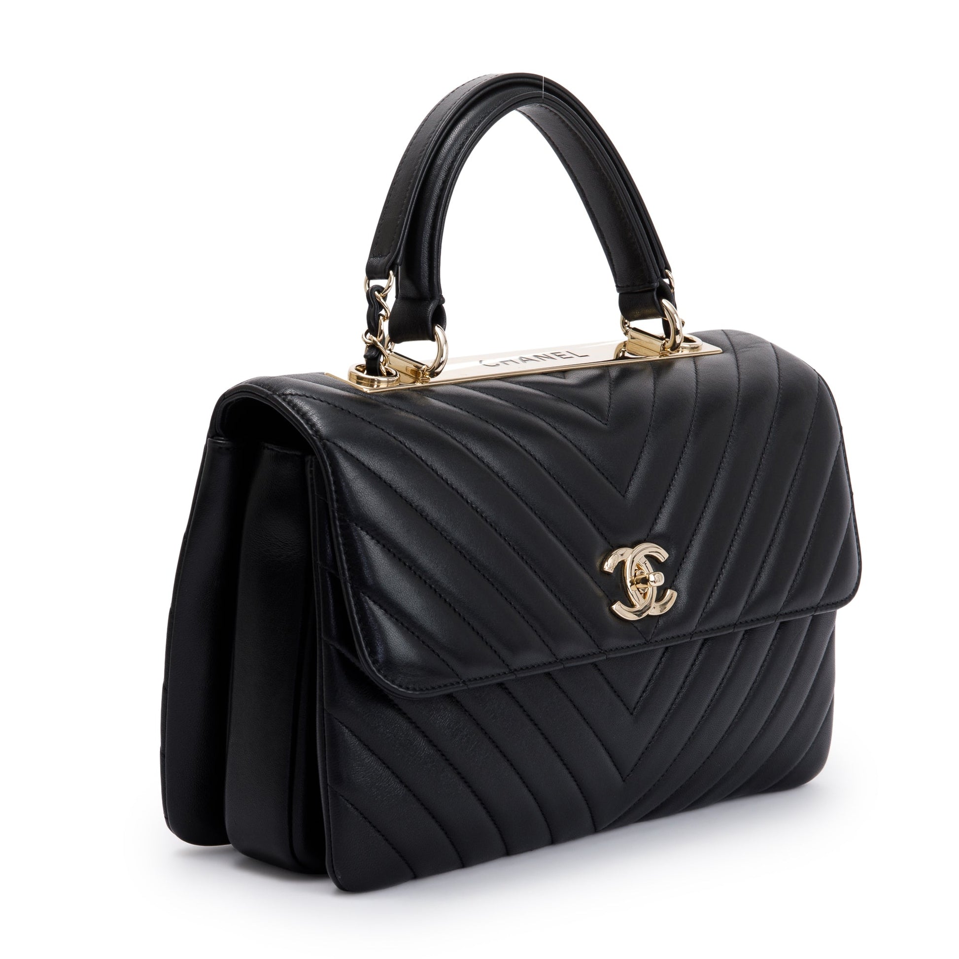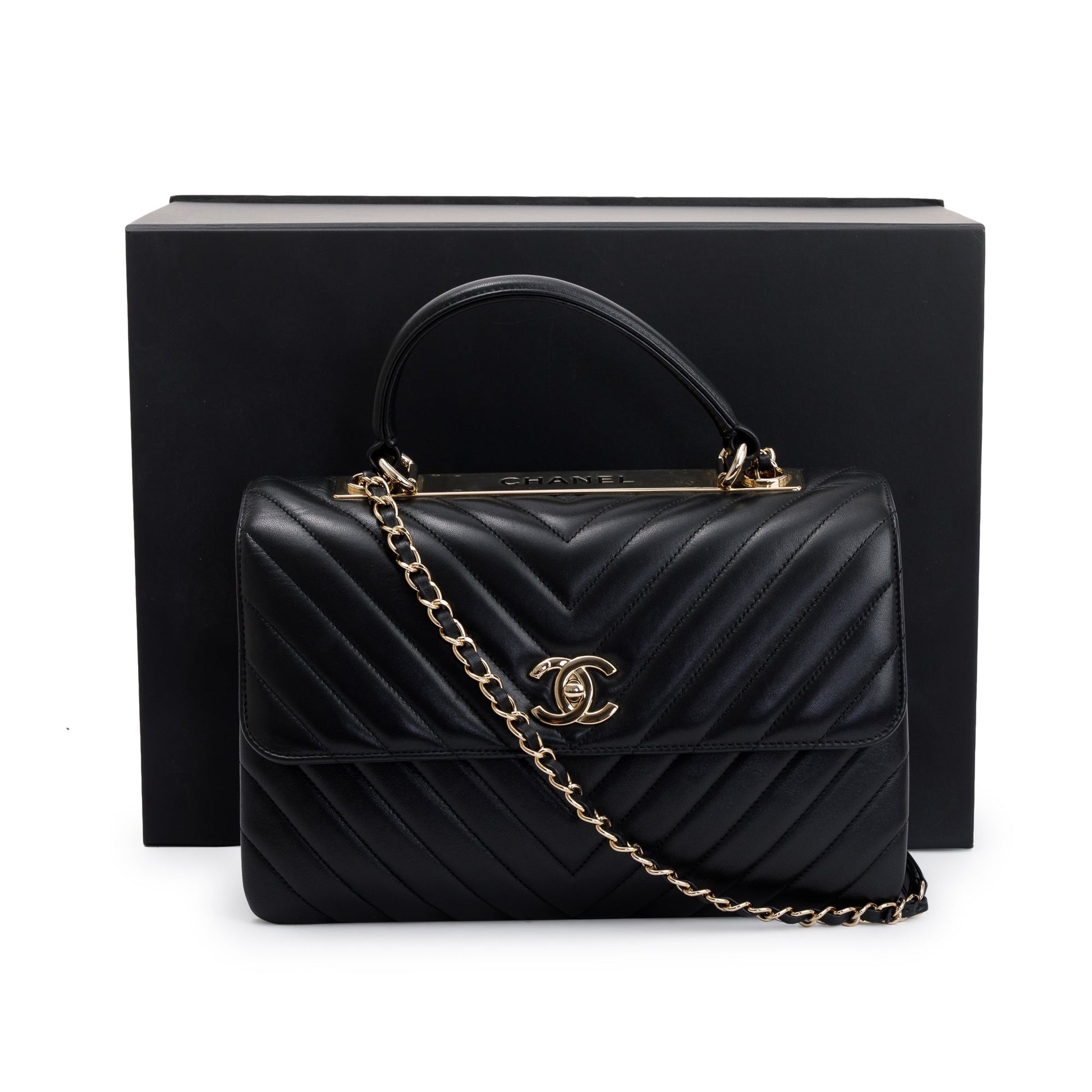 Chanel Black Chevron Lambskin Trendy CC Medium Top Handle Flap Bag w/ Box & Authenticity Card