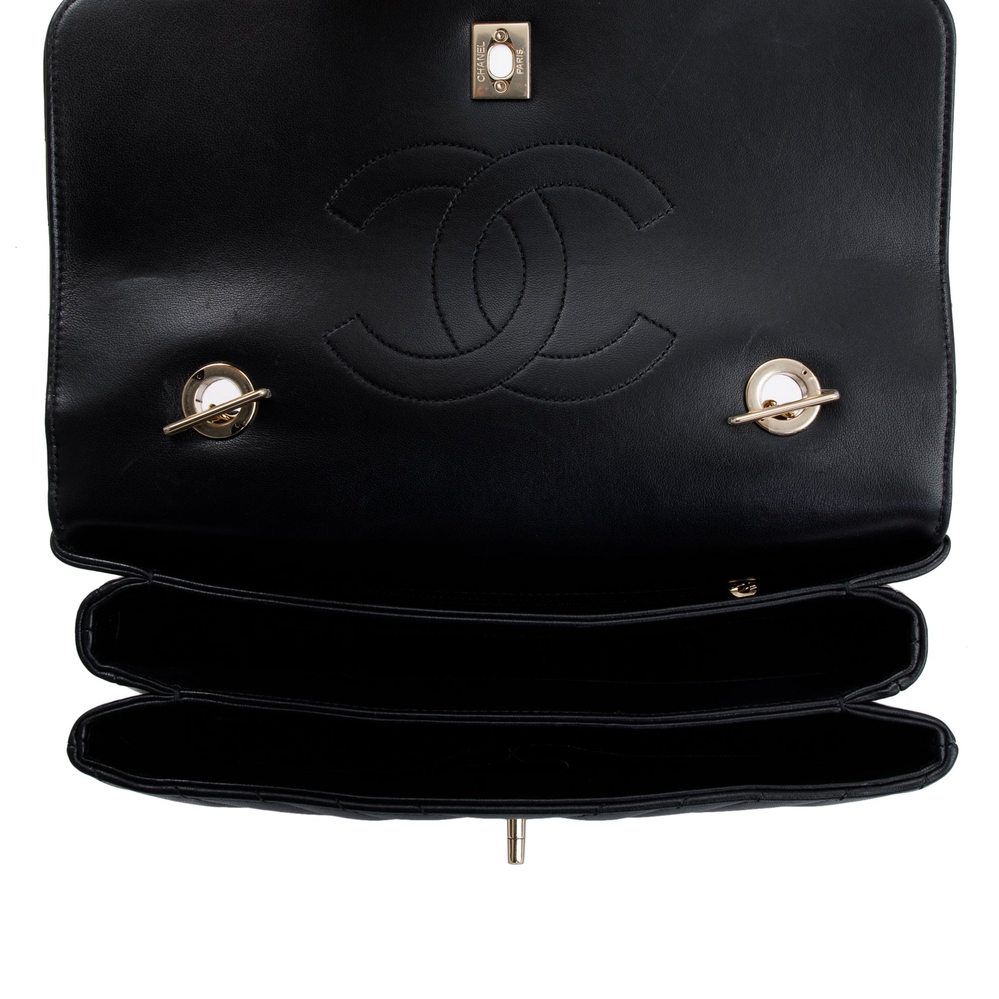 Condition: Very New; minor scratches at hardware;lightscratches at exterior and interior leather; slight scratches at flap underside; clean interior