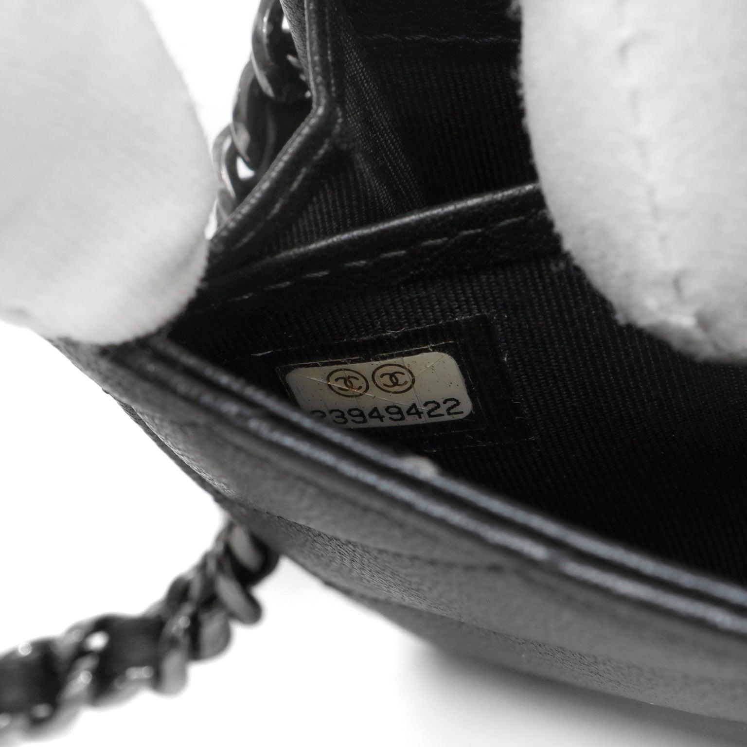 This Chanel So Black Chevron Leather Wallet on a Chain is in excellent condition. Highly sought after, the WOC easily organizes coin and currency with style.