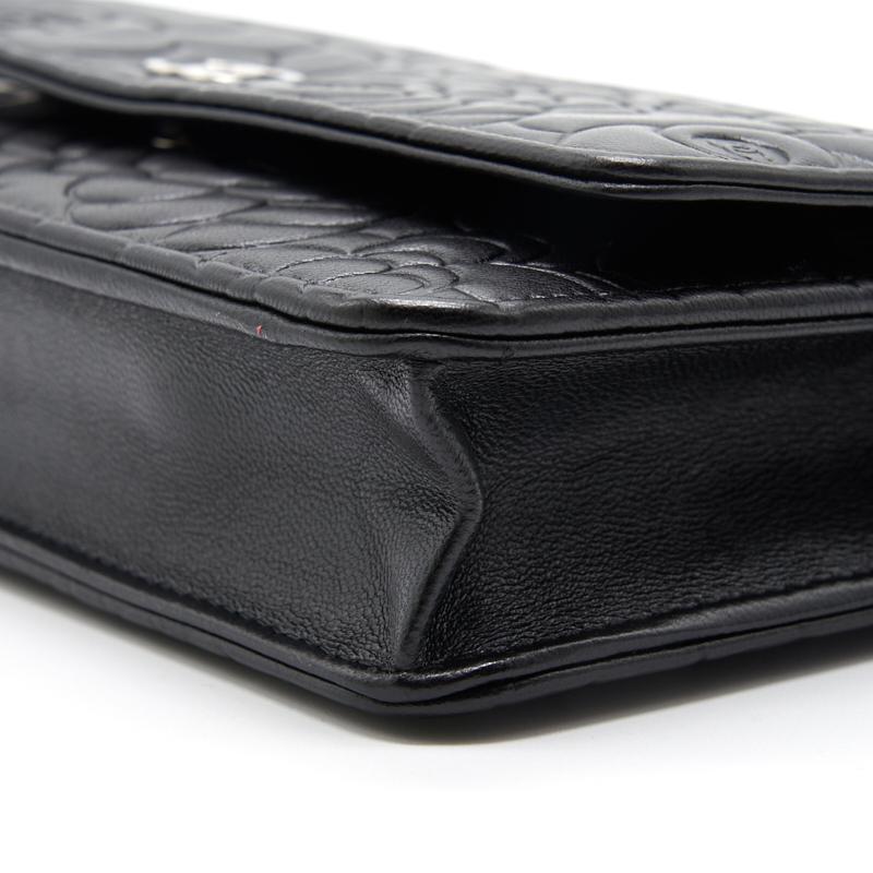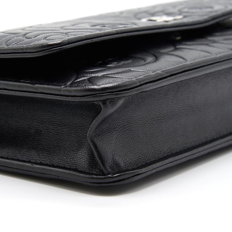 Chanel Black Embossed Camellia  Lambskin Leather Small Shoulder Bag