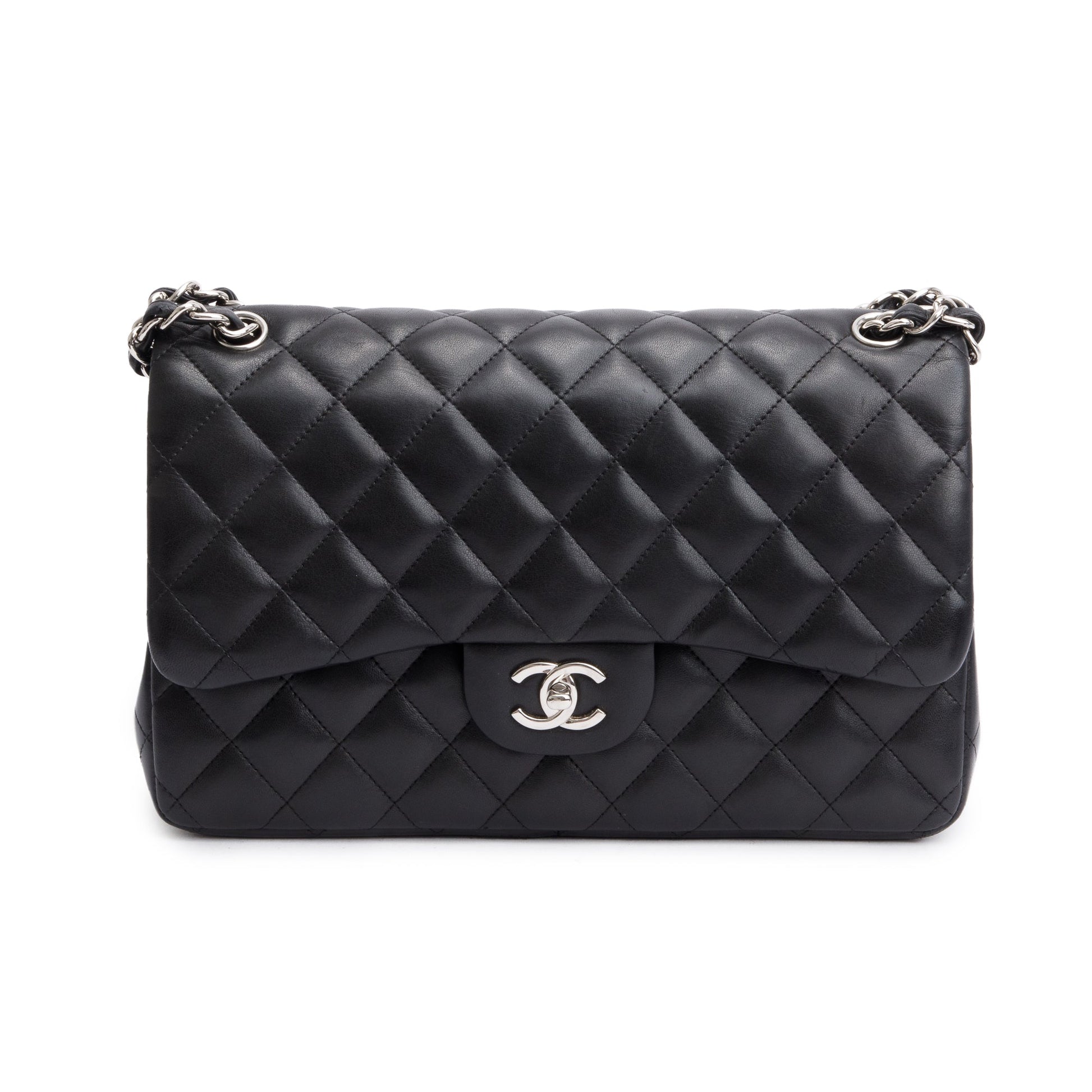 Chanel Black Quilted Lambskin Leather Classic Jumbo Double Flap Bag