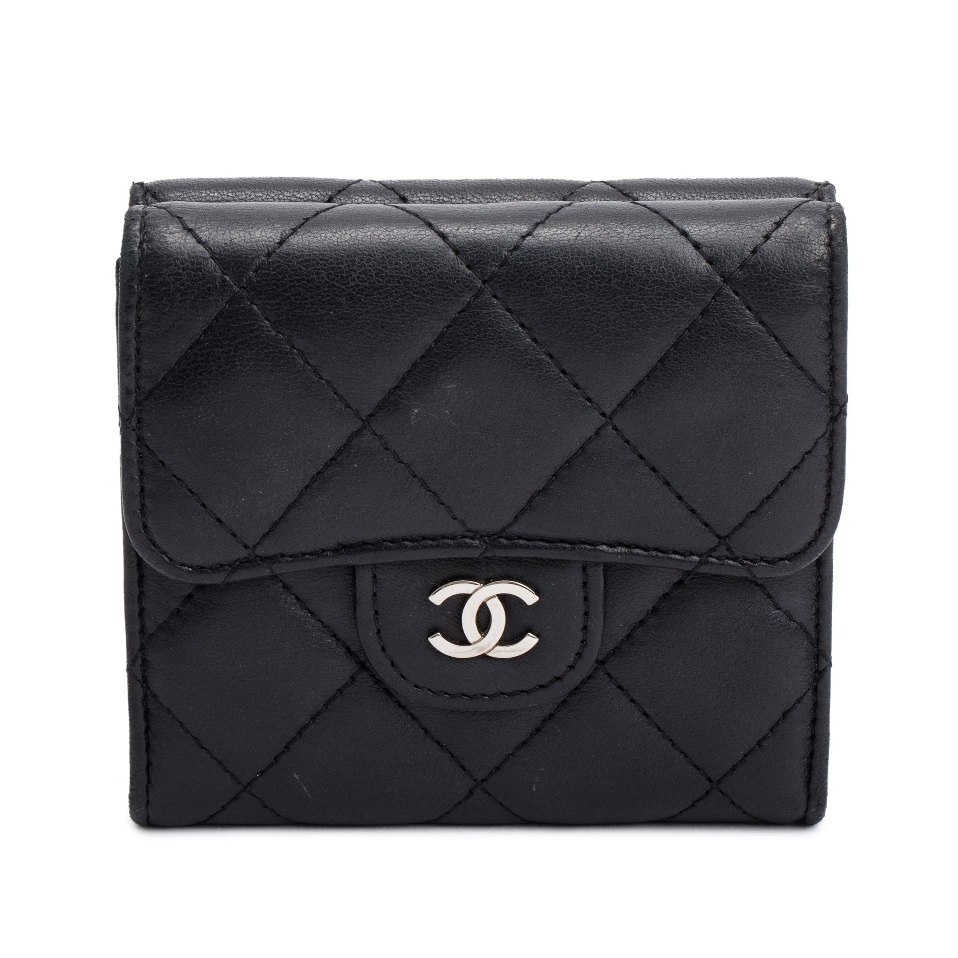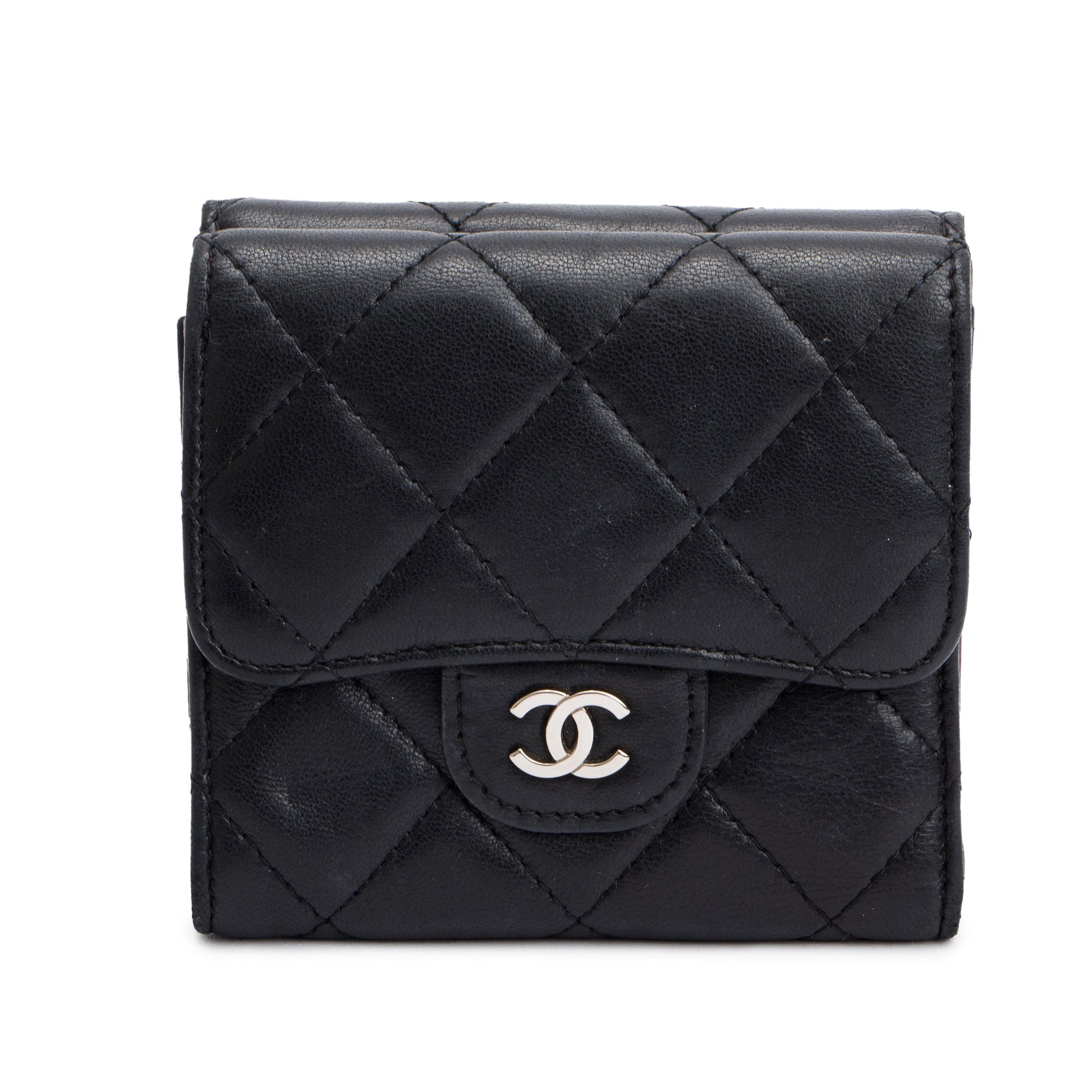 Chanel Black Lambskin Leather Double Sided Compact Wallet