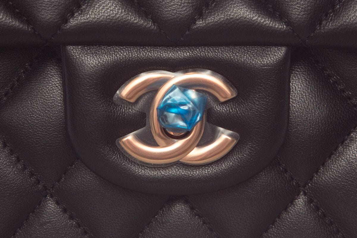 Chanel Black Lambskin Small Classic Flap RGHW Handbag