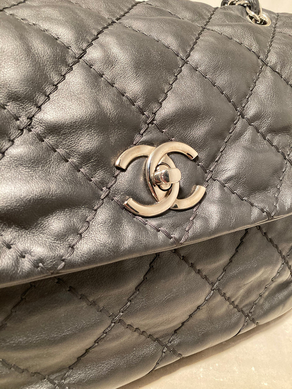 Chanel Black Leather Ultimate Stitch Classic Flap Shoulder Bag