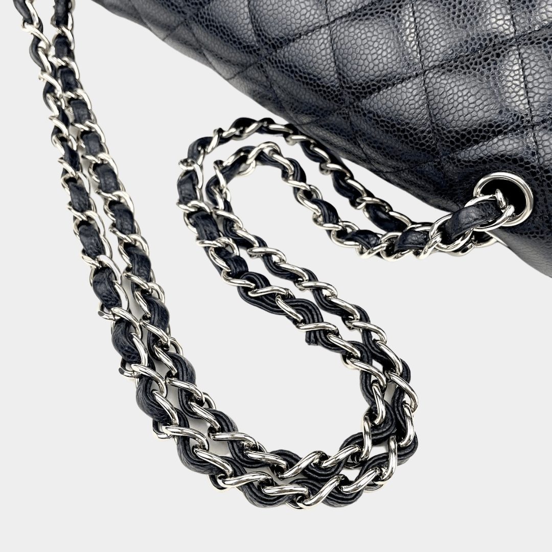 CHANEL 2014 Black Maxi Caviar  Quilted Double Flap