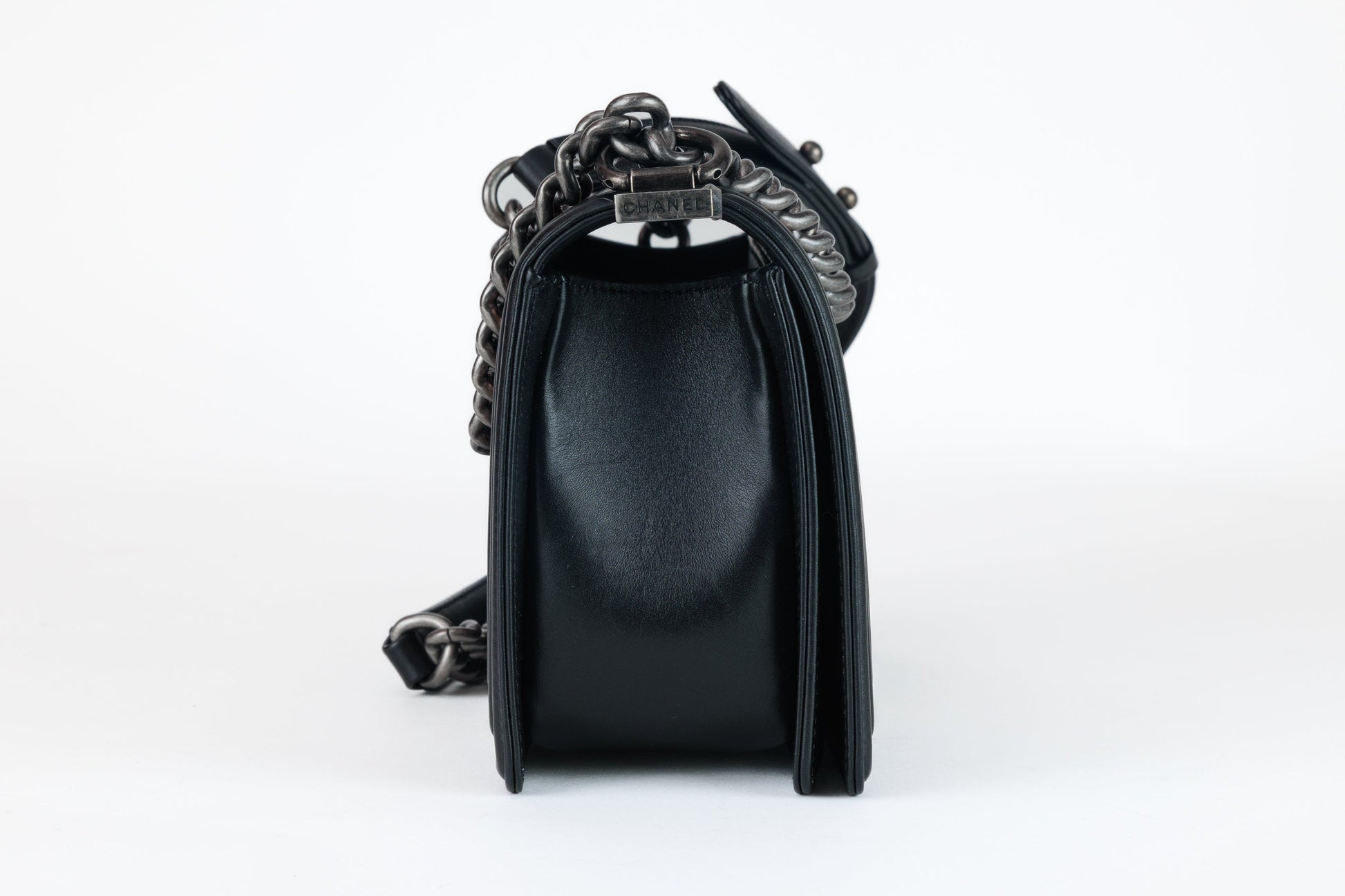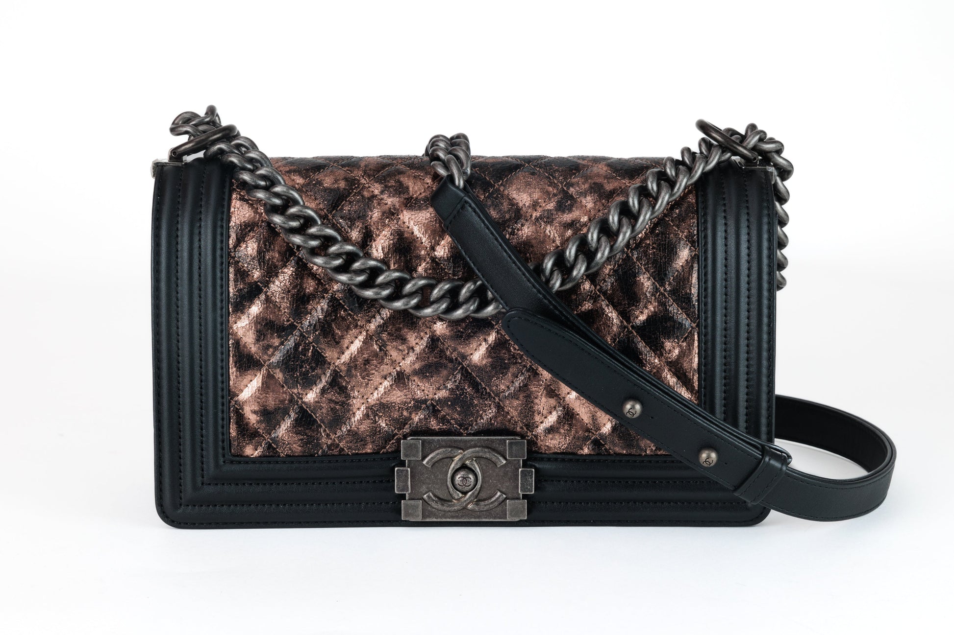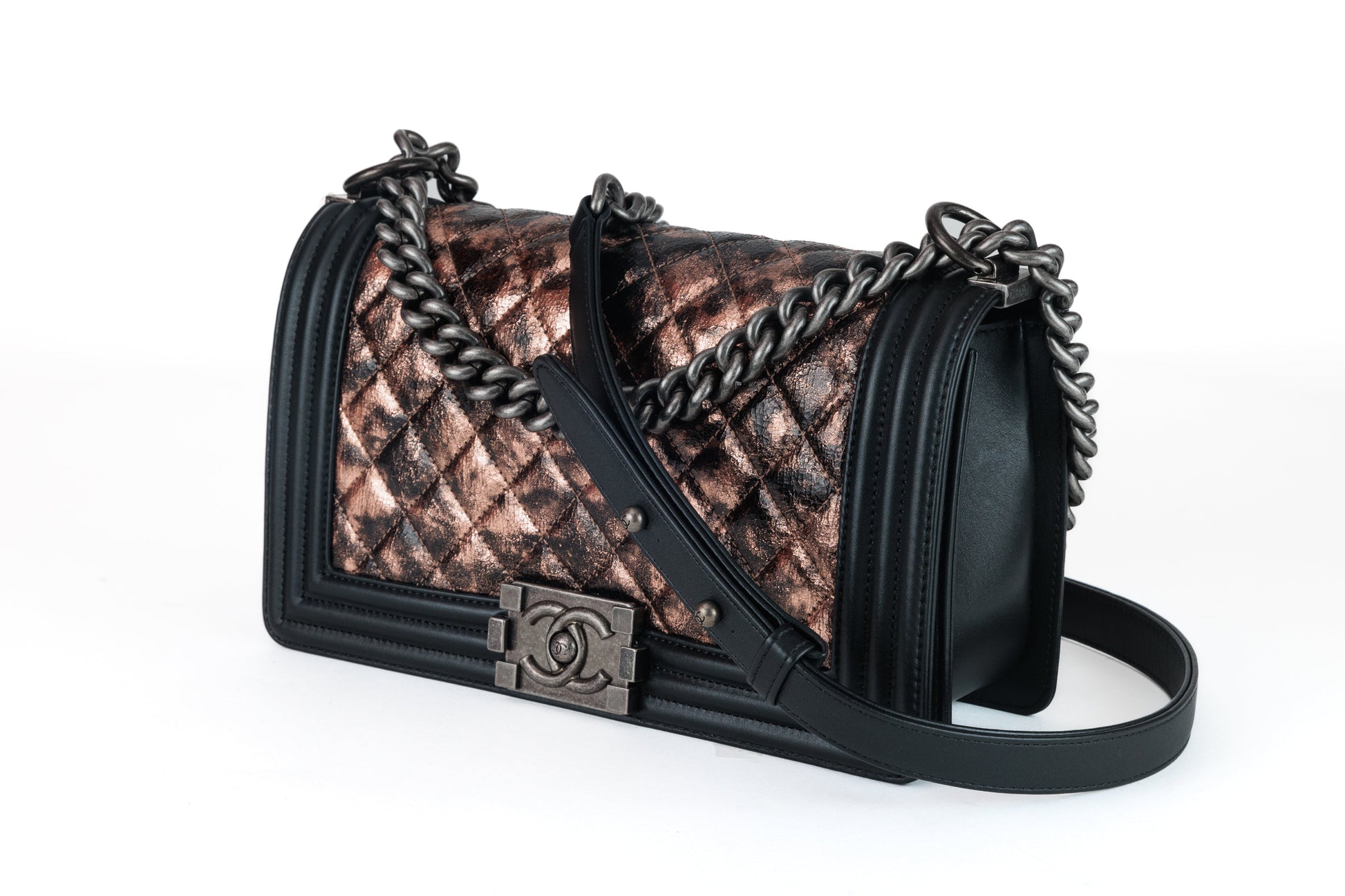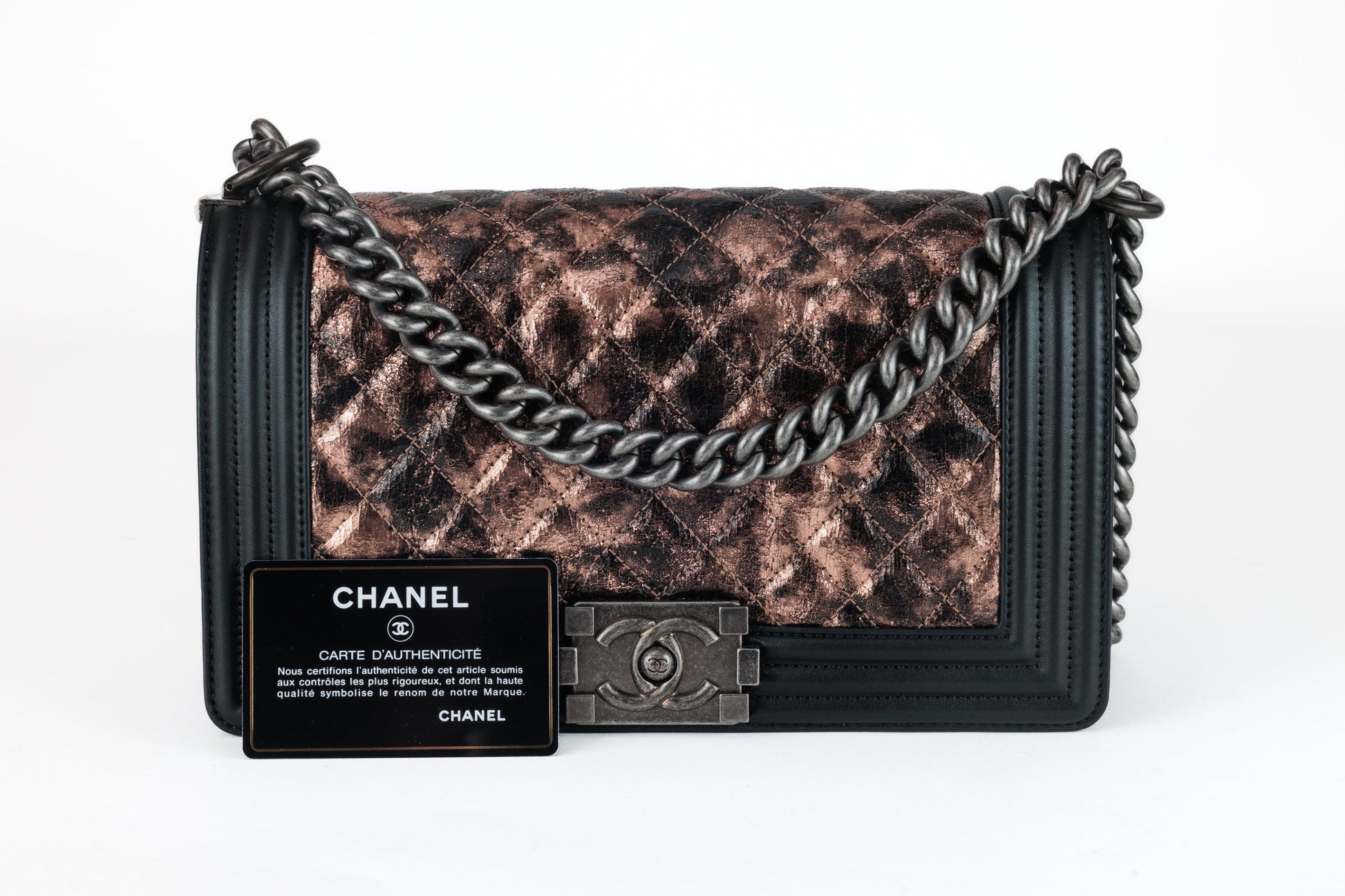 Chanel Black Metallic Copper Canvas Medium Boy Bag with Ruthenium Hardware